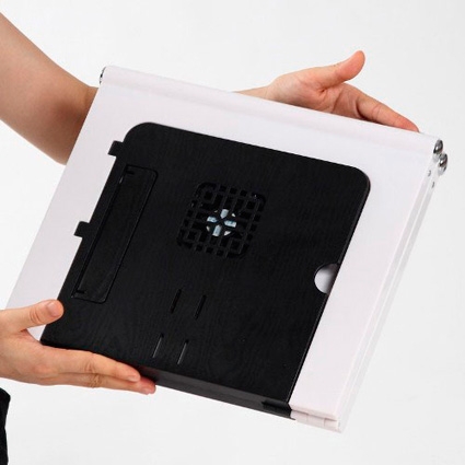 Оригинальность этого изобретения впечатляет многофункциональностью, его можно использовать как подставку для книги, подставку для ноутбука, преподнести завтрак в постель, а во время путешествий и командировок он вообще необходим, как рабочий столик. Сегодня хотелось бы рассказать об одном из ярких представителей этой группы товаров, портативном столике для ноутбука SATELLITE-20. ![]() Дизайн этого столика довольно прост, нет ничего лишнего и помпезного. Столешница, размером 560x320 мм, выполнена из легкого металла, на ней разместились пластиковая подставка для ноутбука, оснащенная откидными зажимами для фиксации компьютера, и область для работы мышкой. Следует отметить, что этот участок сравнительно небольшой, так что «разгуляться» особо негде, зато он имеет специальное покрытие, что позволяет во время работы мышки не использовать коврик. Высота столика регулируется с помощью выдвигающихся ножек, максимально его можно поднять до 30 см. Этого вполне достаточно для обеспечения удобного положения столешницы. Благодаря комбинации металла и пластика в конструкции, столик довольно прочен, он может выдерживать максимальную нагрузку до 20 кг, и рассчитан для ноутбуков с диагональю не более 17". ![]() Одним из неоспоримых преимуществ современных портативных столиков является способность регулировать угол наклона платформы, которая удерживает ноутбук. Это позволяет выставить его в удобном положении для того, чтобы не наклоняться над экраном, что, безусловно, оценят наши глаза и шея. В случае с SATELLITE-20 угол наклона изменяется от 0 до 30 градусов. Всего доступно 3 позиции – с наклоном в 5 градусов, 20 градусов и 30 градусов. При этом максимальная высота подъема платформы составляет 14 см. Не подкачала и техническая часть столика, так область, на которой располагается ноутбук, имеет два встроенных вентилятора, размером 65 мм каждый, которые отвечают за охлаждение. Питание кулеров обеспечивается через USB порт. ![]() Еще хотелось бы добавить, что столик для ноутбука SATELLITE-20 прост в эксплуатации, он быстро собирается и разбирается. В сложенном виде очень компактен, его размеры составляют 280x320x50 мм, вес – 2.05 кг. Он легко разбирается и транспортируется, при необходимости его можно брать с собой, чтобы обеспечить комфортную работу в любых условиях. ![]() Дата: 09.02.2012