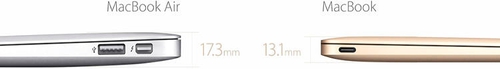 ДизайнИтак, начнем, как водится, с внешнего вида. Данный критерий – очень субъективный, и утверждать, что одна модель красивее другой – бессмысленно. Относительно дизайна 11-дюймового Air инженеры отличаются своим постоянством, ведь он не меняется вот уже много лет. Гаджет выполнен в классическом стиле, в одной расцветке – серебристой. Корпус алюминиевый, а крышку украшает фирменное яблочко, которое светится во время работы. В свою очередь, 12-дюймовый ноутбук куда более современный. Его можно приобрести в трех расцветках: серой, золотистой или серебристой, ну, а пресловутое надкусанное яблоко больше не иллюминирует в темноте. ![]() Интересно обстоят дела с габаритами обоих лэптопов: «воздушная» модель вышла раньше, и производитель страшно гордился ее мобильностью и компактностью: 300х192х3-17 мм при весе 1.08 кг. Однако появление 12-дюймовой новинки затмило это показатели, доказав в очередной раз, что есть еще у Apple пара козырей в рукаве: 280х196х5-13 мм и это при весе всего лишь 920 граммов! Дисплей, звук и веб-камераВ номинации «Лучший экран» среди двух сравниваемых моделей с огромнейшим отрывом побеждает 12-дюймовый MacBook. Во-первых, разрешение его дисплея составляет 2304х1440 пикселей против 1366х768 точек у конкурента. Во-вторых, используется Retina, и этим все сказано. В-третьих, технология IPS явно берет верх над технически устаревшей TN-матрицей. Ну, и малая толщина рамки экрана также положительно сказывается на восприятии картинки в целом. В качестве бонусов – идеальная цветопередача, яркая, насыщенная картинка, в то время как у 11.6-дюймового MacBook Air качество изображения заметно слабее. ![]() Что касается акустики, то и здесь Apple MacBook 12 выигрывает: по своему звучанию он легко может составить достойную конкуренцию даже 15-дюймовым ноутбукам. Про «воздушный» гаджет такого не скажешь, его звук, конечно, тоже не пасет задних, но сравнение все же явно не в его пользу. Впрочем, сопоставление веб-камер данных ноутбуков несколько реабилитирует MacBook Air 11. Разрешение его вебки составляет 720p, в то время как у собрата – всего 480p. На практике эта разница весьма ощутима: получаемое изображение у 11-дюймового лэптопа достаточно комфортное, у 12-дюймового – смазанное и не очень качественное. ![]() Клавиатура и тачпадНе секрет, что над Apple MacBook 12 разработчики основательно поработали, дабы получился абсолютно революционный продукт. Одним из новшеств, которым может похвастаться гаджет, является именно клавиатурный блок. В отличие от традиционного «ножничного» механизма, реализованного в Apple MacBook Air 11, данная модель может похвастаться абсолютным новшеством – конструкцией «butterfly switch». Визуально это заметно по форме кнопок, которые стали ощутимо больше. Реакция на нажатия стала еще быстрее, а тактильного отклика практически нет. И, конечно, невозможно не отметить, что клавиатура «вытянулась» за счет того, что исчезли ее боковые грани. Как вы понимаете, в 11-дюймовом «яблочном» девайсе обошлось без сюрпризов: он располагает привычной многим островной клавиатурой, эргономичной и удобной для ежедневной работы. ![]() Однако необычным оказался еще и его тачпад 12-дюймового MacBook. Манипулятор получил уникальный механизм работы под названием «Force Touch». Почему уникальный? Да потому что он является электронным и обладает встроенными датчиками, которые реагируют на силу нажатия, позволяя вызывать р