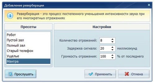 АудиомастерПрограмма «Аудиомастер» не только записывает голос с микрофона или звучание музыкального инструмента, но и редактирует готовую запись. Все это возможно после стандартной процедуры скачивания и установки. Как происходит запись: в меню нужно выбрать пункт «Записать звук с микрофона», затем – записывающее устройство. По умолчанию будет выбран микрофон, если не установить что-то другое. В процессе запись можно ставить на паузу, удалять, начинать заново, словом, доводить аудио до идеала. ![]() Готовую звукозапись можно редактировать. Например, добавить необычные эффекты вроде хруста снега или звука уходящего поезда. ![]() В «Аудиомастере» есть эквалайзер, с помощью которого легко скорректировать тембр голоса, скорость речи, убрать эхо и отвлекающие шумы. Также в рамках этого редактора можно вырезать звук из видеоролика или отдельные фрагменты из уже существующей звуковой дорожки. ![]() Окончив редактировать, сохраните аудиозапись в одном из восьми предложенных форматов, среди которых – MP3, WAV, FLAC, WMA. Adobe AuditionПрограмму Adobe Audition без преувеличения можно назвать профессиональной. Например, здесь есть функции шумоподавления и удаления голоса. Далее на «минус» можно наложить свой голос, добавить звуковые эффекты. Программа имеет встроенный эквалайзер, что позволяет тщательно поработать над голосом: сбалансировать звуковые частоты, изменить высоту тонов, сделать звук объемнее и насыщеннее. ![]() На этом возможности Adobe Audition не заканчиваются. Так, с помощью программы можно создавать собственные подкасты. Благодаря подсказками даже неопытный пользователь легко разберется с тем, как сделать сессию, записать звуковую дорожку, добавить музыку и экспортировать конечный результат. Единственный минус приложения – необходимость платить: бесплатная пробная версия длится 30 дней, а далее пользоваться функциями Adobe Audition придется за 1288 рублей в месяц. AudacityAudacity представляет собой довольно простой редактор для тех, кто только начинает учиться работать со звуком. В программе предусмотрены основные функции, которые помогут быстро обработать звуковую дорожку. Так, в Audacity можно изменить высоту звука без изменения темпа и темп без изменения тональности; хорошо развита функция шумоподавления для устранения статического шума, гула, шипения и других фоновых звуков; есть возможность создавать закадровый голос для подкастов или диджейских сетов и т. д. ![]() Треки можно изменять с помощью клавиатуры, благо, в программе большой выбор сочетаний клавиш. Безусловно, не обошлось и без звуковых эффектов: эхо, искажения и других. Программа бесплатная, однако она имеет недостаток: поддержка формата MP3 возможна лишь после установки дополнительной библиотеки LAME. Дата: 13.02.2019