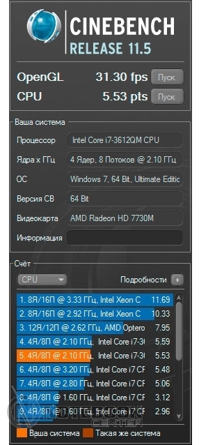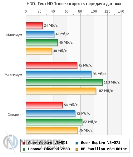 Для чего вообще выполняется тестирование лэптопа? Ответ логичен - проверка различных частей портативного компьютера дает возможность объективно оценить, а потом и сравнить функциональные способности тестируемых систем в целом. Это одна из составных частей всех обзоров, посвященных теме ноутбуков. А так как эта тема непосредственно связана с нашей деятельностью, давайте конкретно и на определенных примерах рассмотрим этот вопрос. В наших обзорах мы стараемся предоставить читателю наиболее полную и разностороннюю информацию об обозреваемом ноутбуке. Методика тестирования включает самые распространенные и популярные бенчмарки, а именно: - Индекс производительности Windows 7; - GPU-Z; - CPU-Z; - CPUID HWMonitor; - Nero Info Tool; - HD Tune; - CrystalDisk Mark; - Cinebench R11.5; - 3DMark06; - 3DMark 11; - PCMark 7; - PCMark Vantage; - Battery Eater Pro; - Замер энергопотребления; - Измерение нагрева; - Замер уровня шума. Ниже мы приведем более подробную и развернутую информацию о каждом из используемых нами тестах и программах. Индекс производительности Windows 7Это базовое средство проверки возможностей ноутбука. Общий результат выводится одним числом, называемым базовым индексом производительности. И чем выше этот показатель, тем производительнее и мощнее ноутбук. В данной программе проверяются и оцениваются такие компоненты, как процессор, память, графика с учетом требований рабочего стола, игровая производительность и жесткий диск. Сам процесс тестирования проходит довольно быстро, всего несколько минут, а количество очков определяется наименьшей оценкой. Стоит отметить, что максимальный бал, который выставляет это приложение, составляет 7.9. Зачастую такую оценку может получить только SSD-накопитель, результаты остальных компонентов системы несколько ниже. ![]() GPU-ZЭто утилита для вывода на экран всей необходимой технической информации о тестируемой видеокарте. Программа выдает многочисленные данные, среди которых можно найти сведения о названии графического адаптера, его внутреннее кодовое имя и частоту, технологический процесс, сведения о типе, количестве, частоте и пропускной способности памяти, ширине и типе шины, а также о количестве транзисторов и поддерживаемые технологии. Не остались забыты и версия драйвера, блоки текстурирования и вычислительные ядра. Программа GPU-Z постоянно обновляется, совершенствуя свои возможности. На сегодняшний день версия GPU-Z 0.6.5, которую мы используем для тестирования, является последней. ![]() ![]() CPU-ZПредставляет собой бесплатную программу для отображения данных о CPU. Дополнительно выдается информация о кэше всех уровней, материнской плате, оперативной памяти, графической карте и SPD. Необходимо отметить, что данная программа предоставляет данные только о встроенной видеокарте, дискретную она не видит. В процессе тестирования нас интересуют информация о кэше, материнской плате, центральном процессоре, памяти. И, исходя из возможностей утилиты, о CPU мы получаем такие сведения: его полное название, архитектуру, уровень потребления энергии, сокет, техпроцесс, напряжение питания ядра и многое другое. В вкладке Caches мы узнаем об объеме кэш-памяти всех уровней, а также о его физической организации. А о материнской плате доступна информация во вкладке Mainboard, где предоставляются данные о производителе, моделе ноутбука, чипсете, южном мосте, версии BIOS, а также о графическо
