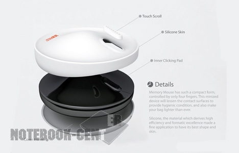 Miji Rhoe разработал мышку со встроенной памятью. Она скорее похожа на хоккейную шайбу, чем на обычную мышь, но имеет все, что есть у компьютерной - 2 кнопки управления и колесико скроулера. Кроме того, она содержит встроенный накопитель данных на 4 или 8 GB.
