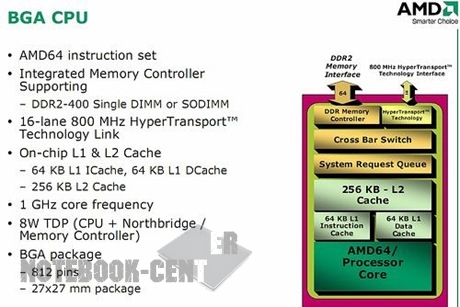 ![]() Немецкий веб-сайт Eeepcnews.de вчера опубликовал информацию о новом процессоре AMD, который возможно разработан специально для применения в недорогих ультрапортативных ноутбуках, называемых также нетбуки. Новый процессор - это 64- битный CPU с одним ядром и тактовой частотой 1Ghz. Потребляет такой процессор всего 8W, и имеет кеш 256KB L2 и встроенный контроллер память, поддерживающий DDR2-400 SODIMM. Также было отмечено, что новые процессоры AMD являются "по сути, половиной Turion X2 dual-core CPU". ![]() Дата: 16.06.2008 ПоделитьсяНравитсяПредыдущие новости: