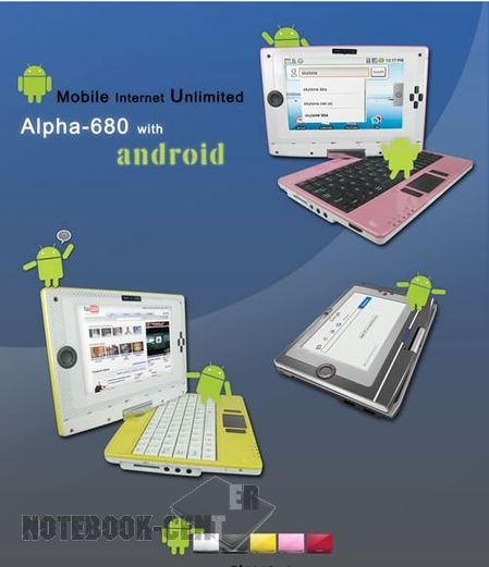 Alpha 680 - один из первых нетбуков, основанных на процессоре ARM. Разработанный небольшой китайской компанией Guangzhou Skytone Transmission Technologies, Alpha 680 - это бюджетное интернет устройство для людей, которые ищут дешевый ноутбук для чистого интернет использования. Конкретные технические характеристики новинки неизвестны, но есть информация, что Alpha 680 оснащается 7" дисплеем, процессором ARM с тактовой частотой 533MHz, оперативной памятью max 256MB, SSD-накопителем до 4GB, кард-ридером для SD флеш-карт, 2 х usb портами и Wi-Fi.