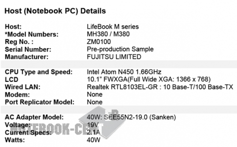 ![]() И вот буквально сегодня все на том же сайте FCC появился второй нетбук Pineview от Fujitsu. Модель LifeBook MH380 / M380 LifeBook представляет собой 10.1" нетбук из линейки ноутбуков Fujitsu M. На данный момент о нем известно мало, но стоит полагать, что Fujitsu LifeBook MH380 / M380 будет иметь 10.1" LCD дисплей с разрешением 1366 x 768 (720p HD), процессор Intel Atom N450 PineView с тактовой частотой 1.6GHz, сетевую карту RealTek Ethernet и адаптер беспроводной сети Atheros 802.11 b/g/n. Даже фотографий нового Fujitsu M380 / MH380 пока нет, но исходя из чертежа, который был опубликован на FCC, можно судить о том, что корпус будет со скругленными углами, также имеется съемная батарея и много съемных панелей для апгрейдинга внутренних компонентов. ![]() Дата: 26.11.2009 ПоделитьсяНравитсяПредыдущие новости: