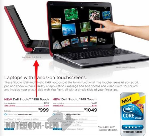 Похоже, что компания Dell готова пополнить свою линейку ноутбуков двумя новыми моделями Studio 1558 Touch и Studio 17 Touch, главной особенностью которых станут мультисеснсорные дисплеи. Официального релиза пока не было, новинки лишь появились в онлайн-каталоге Dell. Об их комплектации пока известно мало, но все же это позволяет понять о чем идет речь.