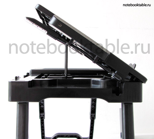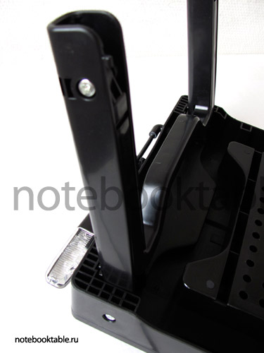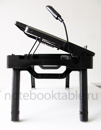 ![]() Это модель 2010 года, в которой по сравнению с Smart Bird PT-22 внесли ряд дополнений. ![]() В частности появился кулер на большей наклонной столешнице. Он работает от юсб и довольно мощный и бесшумный. Как раз для моей греющейся видюхи. ![]() Поменяли конструкция упоров для ноутбука - теперь есть доступ к разъемам в торцевой панели ноутбука. Увеличилась площадка для мыши - хотя и так была достаточная. Размеры столешниц такие: большая 36 х 32см, с ковриком для мыши: 20 х 32 см. ![]() Конструкция упоров повторяет модель Smart Bird PT-32 - стальная скоба расположена симметрично по центру столешницы, что делает крышку более устойчивой в наклонном положении. Всего 3 положения наклона - вполне достаточно и для настольного использования и в кровати валяться - не нужно напрягать шею. ![]() За счет этого образовались дополнительные отделения для разных мелочей. Четыре отделения для мелочей - три под большей столешницей и одно под ковриком для мыши. В общем, маленький рабочий столик с ящичками. ![]() первый уровень разложенных ножек - высота 25 см (накроватный вариант). Светодиодный фонарь на гибком стебле. ![]() полностью разложенные ножки - высота 39,5 см ![]() ![]() толстый промышленный пластик с решеткой жесткости и металлические оси - стоит прочно и надежно. ![]() Размеры в сложенном виде: 56х32х7см - легко и быстро складывается и не занимает в машине много места. Кстати если уж у вас какой-нибудь совсем гигантский ноутбук - например 19" то вы можете поднять обе столешницы на одинаковый угол - примерно так. ![]() и у вас получится наклонная поверхность во всю ширину столика. В общем, и на диване и в кровати можно довольно комфортно расположиться, да и чашку с кофе есть теперь куда поставить. Мне понравился - рекомендую. Дата: 14.05.2010 ПоделитьсяНравитсяПредыдущие новости: