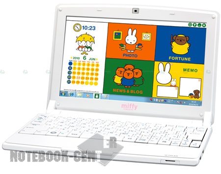 Разработанный для детей, нетбук Onkyo Miffy имеет интересный дизайн, который должен понравиться маленьким пользователям. На крышке нетбука имеется симпатичный рисунок в виде зверюшек с логотипом зайчика Miffy, также он имеет специальные обои и уникальный интерфейс пользователя Miffy. Это позволит детям легко и быстро находить свои картинки и фотографии, получить доступ к блогу или любимым сайтам. Также имеется причудливое приложение Fortune Teller.