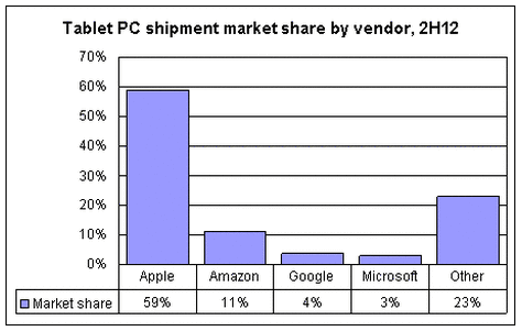 Во второй половине 2012 года, по исследованиям Digitimes, глобальные поставки планшетных ПК достигнут лишь 49.18 единиц, что приведет к годовому объему отгрузок в 89 млн. единиц. Отгрузки в первой и второй половинах 2012 года будут в соотношении 45:55.