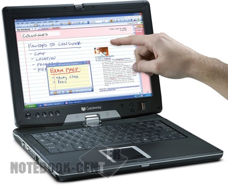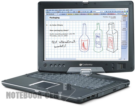 Компания Gateway представила ноутбук с поворотным дисплеем E-155C. 12.1" ноутбук оснащен процессором Intel Core 2 Duo ULV, жестким диском 120GB, оптическим DVD приводом, вращающимся в две стороны дисплеем, 802.11a/b/g Wi-Fi, операционной системой Windows Vista и сканером отпечатка пальца, для защиты информации.