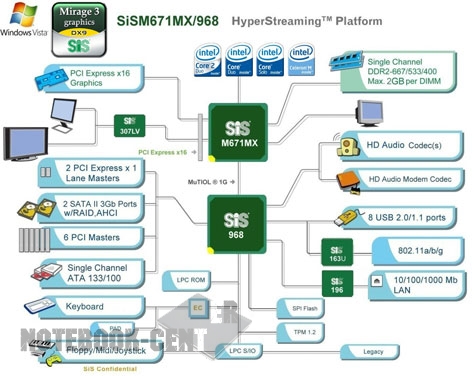 Компания SiS представила ноутбуки, выполненные на основе SiSM671. Это модель M721S/M720S компании Clevo.