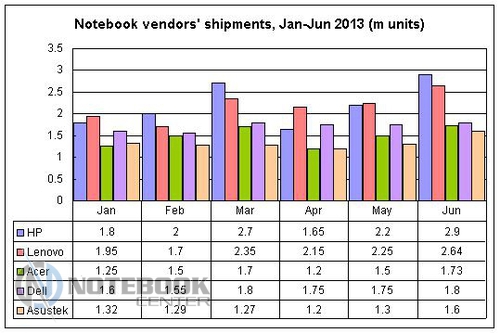Основные производители ноутбуков и ODM-поставщики заметили значительный прирост в поставках лэптопов в прошлом месяце на 19% и 16% соответственно. Среди брендовых производителей устройств большим приростом в отгрузках ноутбуков могут похвастаться Hewlett-Packard (HP), ASUS и Acer, в то время как остальные компании показали не столь хорошие результаты.