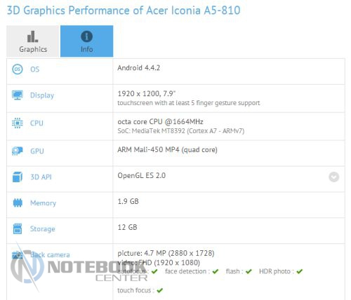 Перед нами очередной планшет от компании Acer. Все больше слухов свидетельствует о том, что совсем скоро состоится релиз данного 7.9-дюймового Android-планшета с чипом Intel Bay Trail. Однако он будет не одинок, вместе с ним выйдет еще одна модель на базе восьмиядерного процессора MediaTek.
