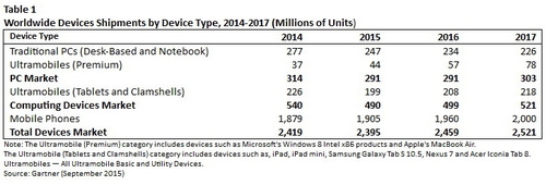 По данным Gartner, мировые продажи персональных ПК, планшетов и мобильных телефонов составят 2.4 млрд единиц в 2015 году. И данная цифра на 1% меньше, в сравнении с 2014 годом – это отличается от предыдущих прогнозов компании, где она предсказывала рост продаж на 1.5%.