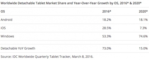 Аналитики из IDC составили отчет о развитии рынка планшетных устройств на 2016 год и пришли к выводу, что наибольшую популярность у покупателей вызовут гибридные устройства, к примеру, Microsoft Surface. Известно, что уже в первом квартале текущего года поставки планшетов сократились и на данный момент составляют 195 млн экземпляров, что на 5.9% меньше, по сравнению с прошлым годом.