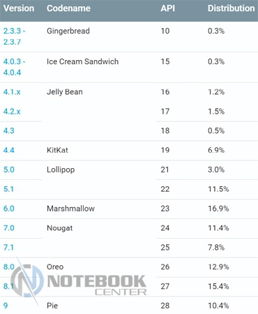 Что касается рейтинга версий, то здесь по уровню популярности лидирует Android 8 Oreo, за ней следует Android 7 Nougat. И замыкает тройку – Android 6.0 Marshmallow. Остальные данные можно увидеть ниже. ![]() Автор: Кравец Татьяна Дата: 10.05.2019 Ключевые слова: Android, Android 9 Pie ПоделитьсяНравитсяПредыдущие новости: |