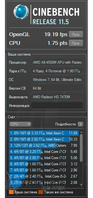 ![]() Сегодня у нас на обзоре еще одна новинка от компании ASUS - ASUS K55DR. Эта бюджетная модель как раз и основана на компонентах AMD, таких как четырехъядерный процессор AMD A8-4500M и связка из двух видеокарт - встроенной AMD Radeon HD 7640G и дискретной AMD Radeon HD 7470M. Производительность этой системы, на первый взгляд, довольно невысокая, но она имеет свои преимущества. Посмотрим, как она проявит себя в тестах и в играх. К тому же цена ноутбуков с AMD ниже, чем у конкурентов на Intel. Технические характеристики