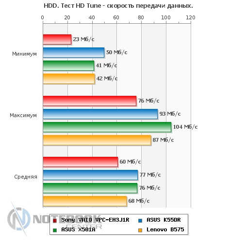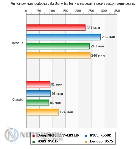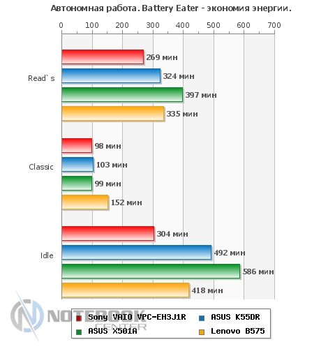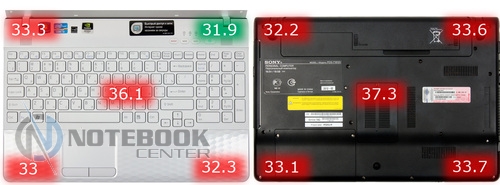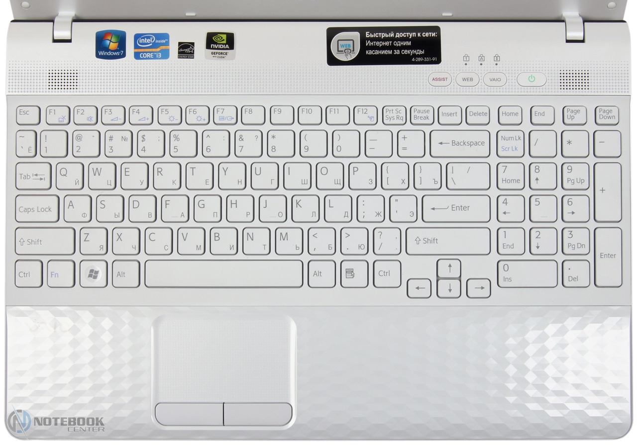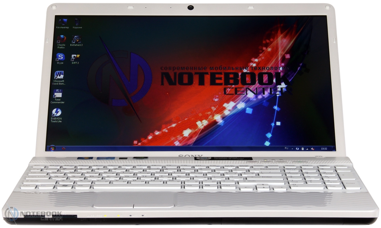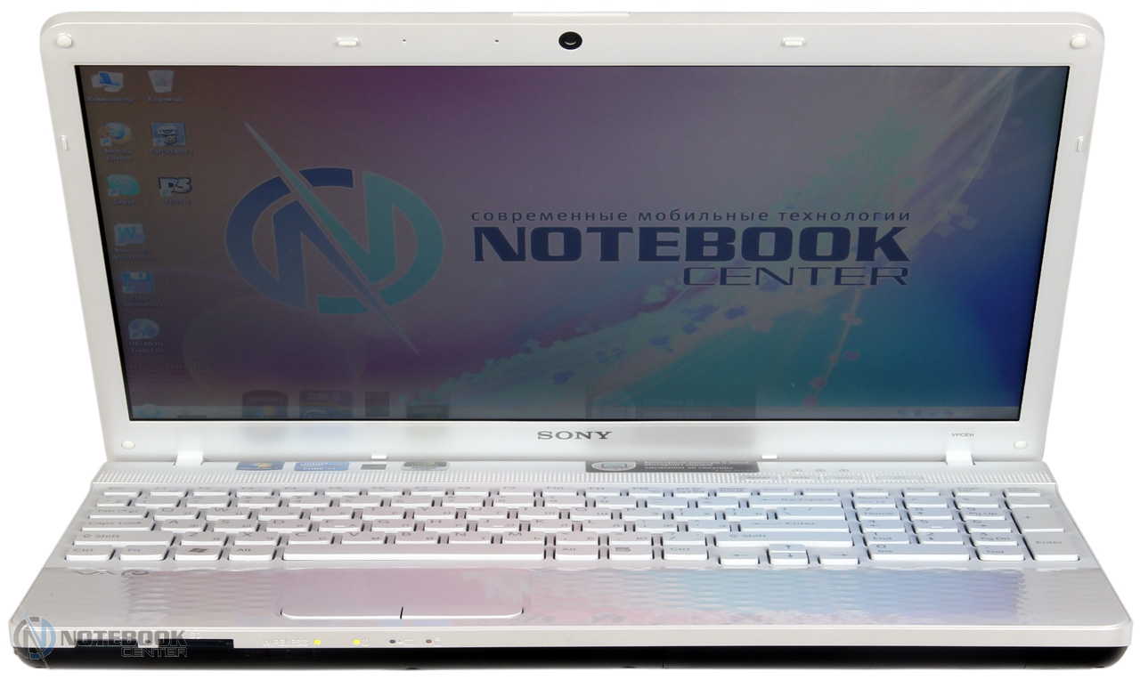 Комплект поставкиНоутбук имеет стандартную комплектацию. В нее входит аккумуляторная батарея, блок питания, краткое руководство. Более того, в комплекте поставки предусмотрено пособие по восстановлению системы и резервному копированию, а также правила техники безопасности. ![]() ДизайнSony VAIO E, впрочем, как и ноутбуки других серий, выпускаются в различных расцветках. Заметьте, что достаточно часто мы видим преобладание классических цветов, так сказать беспроигрышный вариант, подходящий буквально для всех. Наша модель выпускается в трех цветах: черном, темно-синем и белом. К нам в руки попал ноутбук с последней расцветкой. ![]() Sony VAIO VPC-EH3J1R/W имеет белоснежный корпус. Может быть, за счет такого цвета, с первого взгляда он кажется массивным. На деле, его размеры типичны для 15.6-дюймового ноутбука и составляют 368х248х31 мм. Вес также относительно небольшой – 2.4 кг. Отметим, что белый не единственный цвет, который использовали дизайнеры. Несомненно, с ним очень хорошо смотрится его антипод - черный. Эта расцветка используется на днище ноутбука и нижней части боковых граней. Безусловно, не меньшее внимание к внешней поверхности ноутбука привлекают закругленные углы, обтекаемость, крупный хромированный логотип и ромбовидная текстура. Вероятнее всего, такой рельеф и, в целом, дизайн, больше понравится женской половине. К слову, он есть как на крышке, так и на подладонной площадке. ![]() Кроме глянца в ноутбуке можно встретить и матовые поверхности, они отлично противостоят отпечаткам пальцев. Следы здесь практически не видны, а при необходимости поверхность легко вытирается и очищается, в том числе и от пыли. ![]() Что касается нижней панели, то на ней предусмотрено несколько вентиляционных отверстий, а также отсек, за которым скрыт винчестер. Если же говорить о фиксации ноутбука на столе или другой плоской поверхности, то VPC-EH3J1R будет надежно стоять на пяти резиновых ножках. Две находятся вблизи аккумулятора, три сосредоточены около фронтального торца. ![]() В целом, к надежности VAIO VPC-EH3J1R вопросов нет. Тем не менее, его корпус не обошли стороной некоторые проблемы, касающиеся большинства ноутбуков. В частности, крышка Sony EH3J1R немного прогибается, а вот днище более устойчиво к прогибам и скручиванию. Что же касается области клавиатуры, то она тоже слегка подвержена деформации. Хотя, при наборе текста это не ощущается. Зато качество сборки, как говорится, «без сучка, без задоринки». Нет недочетов в плане крепления деталей, люфт отсутствует. В общем, корпус ноутбука производит приятное впечатление. Дисплей и звукВ технических характеристиках ноутбука указано, что диагональ его дисплея составляет 15.5 дюйма и разрешение 1366х768 пикселей. На самом деле данный ноутбук оснащается 15.6-дюймовым экраном LG Philips LP156WH4-TLA1. Отметим, что видимая область экрана 396.2 мм соответствует диагонали 15.6 дюйма. Стоит добавить, что дисплей в VPC-EH3J1R имеет глянцевое покрытие. Эта поверхность очень сильно отражает предметы, попадающие в «поле зрения». Такое себе зеркало. А вот бликует экран не очень, что, несомненно, радует. Что же касается небольшого отсвечивания, то его можно избежать. В этом случае, владельцу придется подстраивать угол наклона дисплея индивидуально. ![]() Очевидно, что в данной модели стоит бюджетный дисплей. Он передает достаточно бледные цвета, да и яркости с контрастн