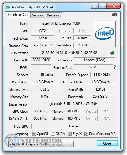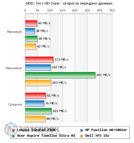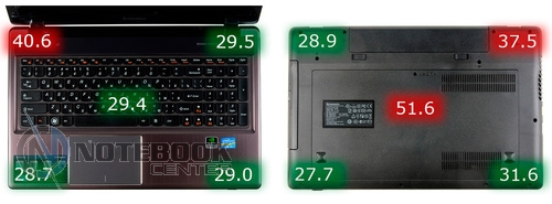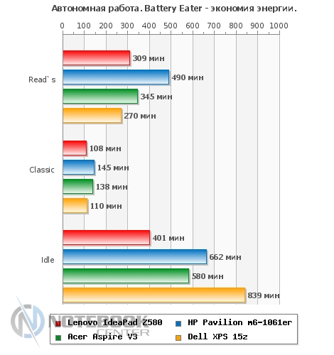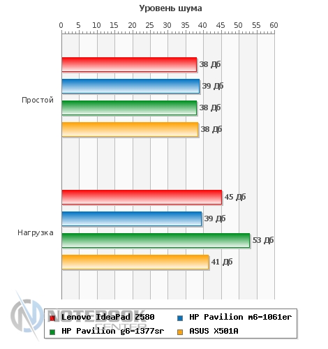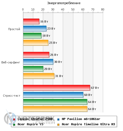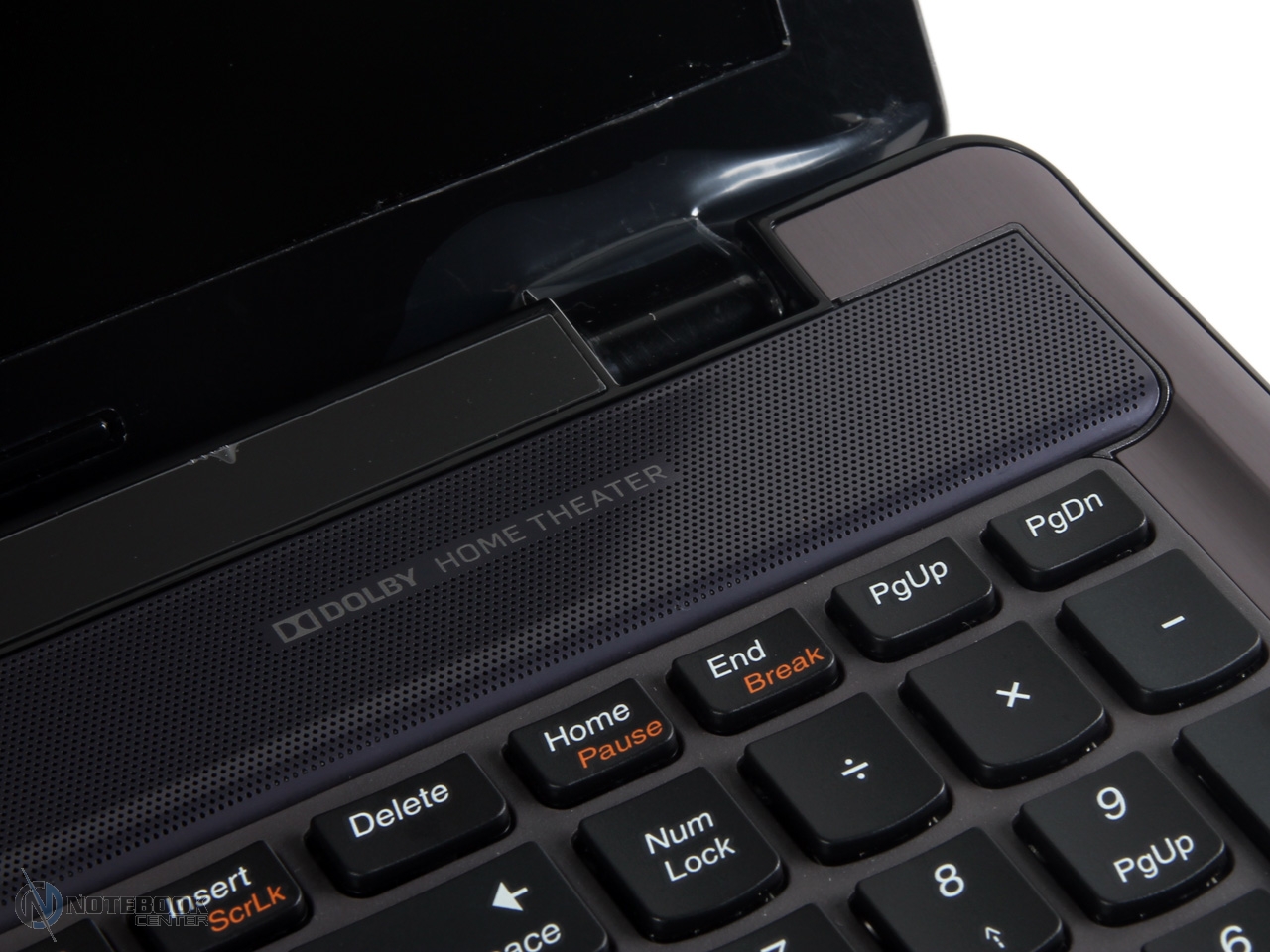 Комплект поставкиНоутбук поставляется в коробке, которая кроме самого ноутбука также содержит: 90-ваттный блок питания, 6-секционный литий-ионнный аккумулятор емкостью 4400 мАч, а также набор документации, который включает три брошюры. Кроме того, в комплекте поставки имеется диск с драйверами для моделей Z380, Z480 и Z580. ![]() ДизайнВнешне ноутбук получился довольно строгим, то есть его нельзя назвать бизнесс-аппаратом, но и чисто мультимедийной имиджевой моделью тоже. Верхняя крышка и подладонная поверхность выполнены из полированного алюминия, а днище из пластика. Из каких-то особенностей в ноутбуке можно выделить надпись Lenovo на крышке и приятного вида решетку, расположенную над клавиатурой, которая закрывает динамики. ![]() Ноутбук поставляется в трех цветовых решениях: вишнево-красном, снежно-белом и графитово-сером. К нам на тестирование попал ноутбук именно в последнем цветовом исполнении. В нем ноутбук смотрится более строго и даже больше похож на бизнес модель. Можно выделить отличное качество сборки, а вот что касается прочности корпуса, то тут есть довольно сильные прогибы в области крышки и в левой верхней части клавиатуры. ![]() В целом дизайн Lenovo IdeaPad Z580 можно назвать стандартным, он не имеет каких-либо футуристических вычурных линий и контуров. Крышка выполнена с небольшими скосами по краям, передняя грань также скошена вниз, что придает ноутбуку более «легкую» внешность. ![]() Отдельно можно отметить и днище ноутбука, но оно выделяется не материалами или дизайном, а своей функциональностью. Дело в том, что у большинства ноутбуков на днище если и имеется отсек для доступа к внутренним компонентам, то он не очень большой. В нашей же модели крышка покрывает почти все днище, таким образом можно получить быстрый доступ почти ко всем «внутренностям», раскрутив всего один винт. ![]() В целом, на днище имеется два достаточно больших вентиляционных отверстия и четыре резиновые ножки, которые будут уверенно удерживать ноутбук, например на стеклянном столе. Габариты и вес 15.6-дюймовой мультимедийной модели соответствуют ее наполнению и функциональности, так размеры ноутбука составляют 329x376x25 мм, а вес чуть больше 2.5 кг, это конечно не ультрабук, но тоже вполне транспортабельный аппарат. ![]() Дисплей, звук и веб-камераLenovo IdeaPad Z580 оснащен 15.6-дюймовым дисплеем с разрешением 1366х768 пикселей, используется матрица B156XTN02.0 производства AU Optitronics. Что касается ее качества, то оно далеко не самое лучшее, точнее оно стандартное, но для мультиммедийной модели хотелось бы и получше. ![]() Еще стоит отметить, что дисплей у Z580 глянцевый, что может создать трудности при работе на улице или в хорошо освещенном помещении. Что касается углов обзора, то по горизонтали они не вызывают претензий, картинка не искажается даже при взгляде с большого угла, а вот вертикальные углы оставляют желать лучшего; даже при небольших отклонениях от центра картинка на дисплее начинает блекнуть. ![]() Мультимедийность данной модели подчеркивается установленной на ней качественной акустикой. Запас уровня громкости довольно большой и послушать музыку или посмотреть фильм можно даже в довольно шумном помещении. Но громко не всегда качественно, к счастью в Lenovo IdeaPad Z580 и уровень громкости, и качество звука на высоком уровне. Воспроизводимый динамиками звук можно охарактеризовать как д