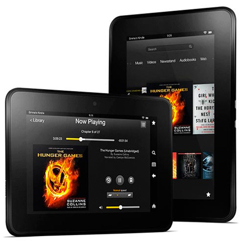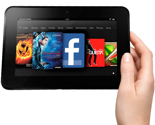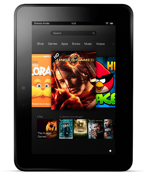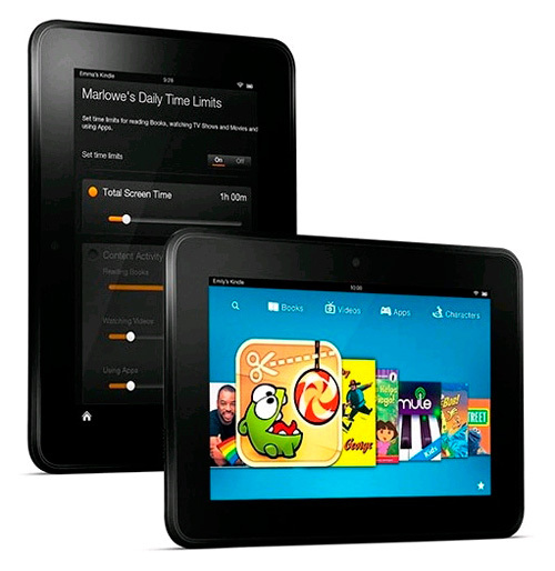 Комплект поставкиВ компактную коробку кроме самого планшета производители вложили лишь необходимую инструкцию, а также кабель USB/micro-USB. К сожалению, зарядное устройство в наборе отсутствует, поэтому заряжать Kindle Fire HD можно с помощью кабеля USB, но очень долго, либо за дополнительные средства приобрести фирменную зарядку. ![]() ДизайнРазмеры гаджета составляют 193x137x10.3 мм, весит Kindle Fire HD 395 граммов. В принципе, данные габариты типичны для семидюймового планшета, а сравнивая с Kindle Fire, можно отметить и уменьшение толщины корпуса на 2 мм, и незначительное снижение веса. ![]() Верхняя панель новинки – это непосредственно сам дисплей. Сразу бросается в глаза, что рамка вокруг экрана довольно широкая, как ни посмотри, и в альбомной, и в книжной ориентации. Также можно заметить объектив встроенной веб-камеры и датчик освещенности. По периметру корпуса находится пластиковая окантовка темно-серого цвета. Углы Fire HD закруглены. ![]() Задняя область корпуса планшета немного скругляется к передней. От этого Fire HD кажется более тонким, чем есть на самом деле. Кстати, нижняя панель сделана из софт-тач пластика, что позволяет комфортно удерживать планшет в руках. Правда, поверхность все же, скорее, гладкая, так что нельзя быть слишком уверенным в том, что планшет не выскользнет из рук. Отметим, что здесь также использован темный фон, от чего дизайн планшета не особо выразительный, но более привлекательный, чем у первого Kindle Fire. ![]() Безусловно, задняя часть гаджета не пустует. На ней кроме логотипов Amazon и Kindle, есть информация о том, что данный планшет соответствует стандартам качества. А на специальной продолговатой вставке под решетками, находящимися ближе к краям, располагаются стереодинамики. Качество сборки планшета оставило приятное впечатление. Использованные материалы надежны в эксплуатации, панели корпуса не деформируются при нажатии и не скрипят при сдавливании. Дисплей, звук, веб-камераПланшет оснащается 7-дюймовым жидкокристаллическим дисплеем с разрешением 1280х800 пикселей (216 точек на дюйм) и имеет соотношение сторон 16:10. К слову, 8.9-дюймовая модель Kindle Fire HD имеет разрешение дисплея 1920х1200 пикселей. ![]() Особенностью экрана является наличие поляризационного фильтра, благодаря которому улучшается насыщенность цветов и уменьшается отражение. При этом изображение остается естественным. Среди достоинств данного дисплея можно также назвать равномерную подсветку, высокую яркость и глубокую контрастность, которая держится на приличном уровне, даже если смотреть на экран с разных углов. Кстати, благодаря технологии IPS, углы обзора дисплея составляют 178 градусов, поэтому, если вы с друзьями соберетесь посмотреть фотографии, то каждый в компании увидит четкое насыщенное изображение. ![]() Вне всякого сомнения, такой экран хорош и для чтения книг, хотя во время использования планшета на улице, изображение не будет столь идеальным. Дисплей имеет глянцевую поверхность, поддерживает сенсорный ввод, а также защищается устойчивым к повреждениям стеклом Corning Gorilla Glass. ![]() Уделим несколько слов фото и видео. Планшет поддерживает форматы JPEG, GIF, PNG, BMP и MP4, VP8, 3GP соответственно. ![]() Перейдем к акустике. Для вывода звука используются два стереодинамика. Они дают возможность услышать чистое, четкое и относительно громкое звучание, даже с некоторой глубиной. Впрочем, здес