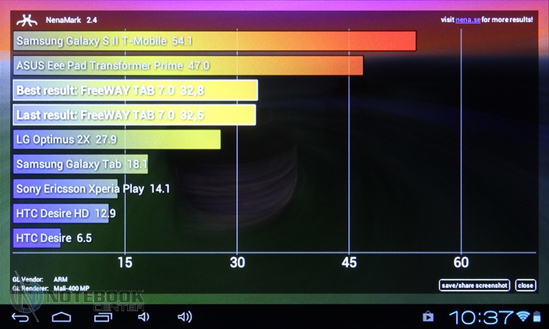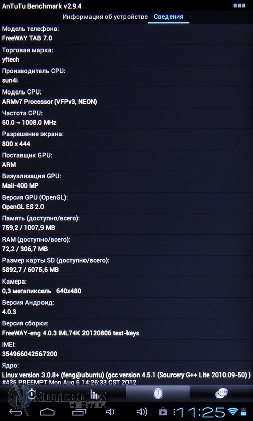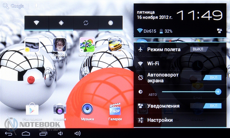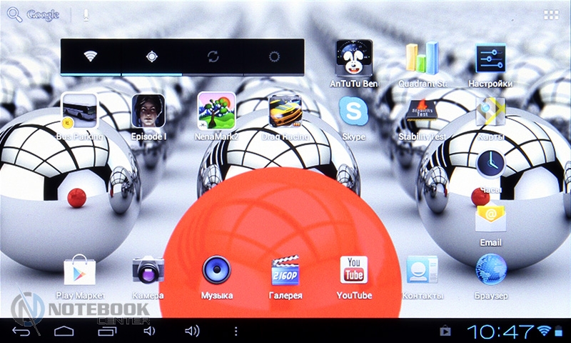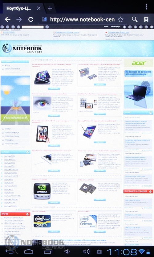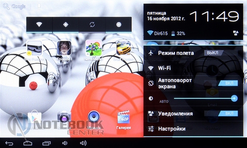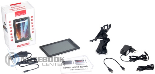 Комплект поставкиВ комплект поставки входят собственно сам планшет, зарядное устройство от сети, переходник с Mini-USB/USB, кабель USB/Mini-USB. Кроме того, в комплекте поставки есть такая приятная мелочь как зарядное устройство для автомобиля, с его с помощью вы можете зарядить свой планшет через прикуриватель. Также есть различного рода документация, включая краткое руководство пользователя и расширенное руководство пользователя. ![]() Так как данный планшет является также и GPS-навигатором, в комплекте поставки имеется и держатель для планшета в автомобиле. Этот держатель состоит из двух частей: первая крепится к планшету с помощью пазов на его гранях, а вторая устанавливается в автомобиль на присоску, затем эти две части также с помощью пазов соединяются. Конструкция имеет 2 уровня регулировки: вертикальную и горизонтальную, выполнена она довольно качественно и вызывает доверие. ![]() ДизайнНесмотря на довольно бюджетную ориентацию данного планшета, он выглядит симпатично. При первом взгляде на планшет, особенно в книжной ориентации, на ум приходит невольное сравнение со смартфоном. Это вызвано тем, что на планшете, на его передней части, располагается довольно больших размеров кнопка, как на большинстве смартфонов. ![]() Что касается качества изготовления и материалов, то этот польский планшет, который изготавливается в Китае, отличается прекрасным качеством сборки и хорошими материалами корпуса. Скрипов, зазоров или щелей на корпусе обнаружено не было. ![]() Планшет изготовлен из нескольких видов материалов. Например, его задняя крышка и часть рамки вокруг дисплея выполнены из софт-тач пластика, это почти исключает появление следов и отпечатков пальцев на поверхности планшета, кроме того по тактильным ощущениям он приятнее обычного пластика. Другая часть рамки сделана из обычного пластика с глянцевой поверхностью, на ней сразу видны итоги работы с планшетом. ![]() Кроме того, боковые грани планшета обрамлены алюминиевой вставкой по всему периметру, это придает большую жесткость планшету, но и слегка увеличивает его вес. Кстати, что касается веса и габаритов, то MODECOM FreeWay TAB 7.0 нельзя назвать пушинкой, он весит 360 грамм, а его размеры составляют 192.5х119х11.5 мм. ![]() Дисплей, звук, камераДиагональ дисплея составляет 7 дюймов, а разрешение 800х480 пикселей. Он емкостный и поддерживает до 5 одновременных касаний чего большинству пользователей должно хватить. ![]() А вот что касается качества передаваемой картинки, то тут FreeWay TAB 7.0 не отличается особой яркостью. ![]() Несмотря на то, что дисплей нельзя назвать идеальным, на нем довольно удобно просматривать веб-сайты, читать электронные книги, просматривать видео. ![]() ![]() Звук в данном планшете очень громкий, и находится на уровне ноутбучного, а вот качество на разных частотах не одинаковое, средние частоты чистые без искажений, а вот нижние частоты вызывают не совсем приятные ощущения, складывается впечатление что планшет издает их всем своим корпусом в результате чего создается звуковой эффект вибрации. ![]() На скриншоте ниже позан вид стандартного проигрывателя. ![]() Поскольку планшет получился достаточно недорогим, было решено использовать тут камеру небольшого разрешения. Так на передней части планшета, над дисплеем, разместилась 0.3 Мп фронтальная веб-камера. Она служит в основном для общения через 