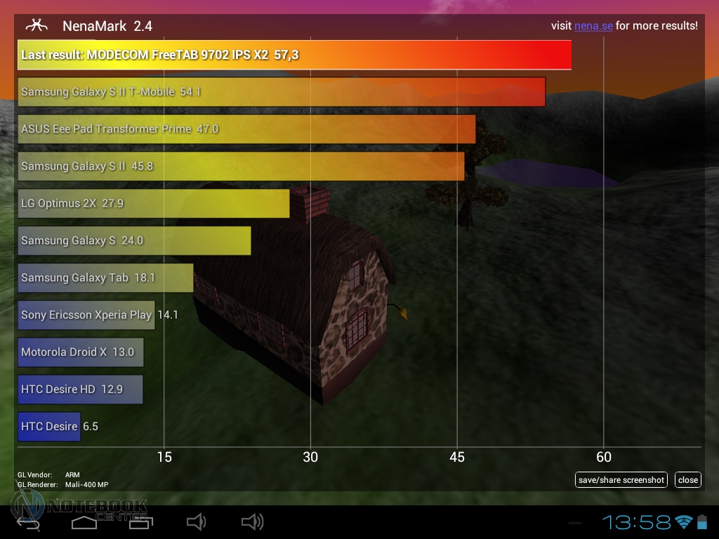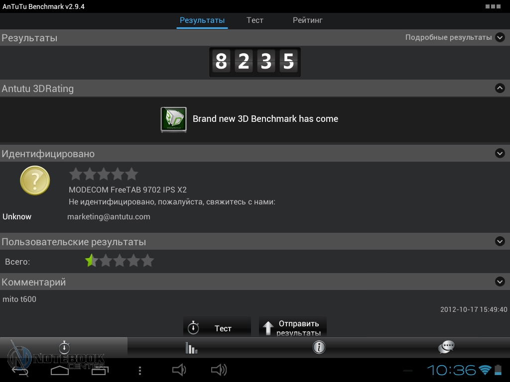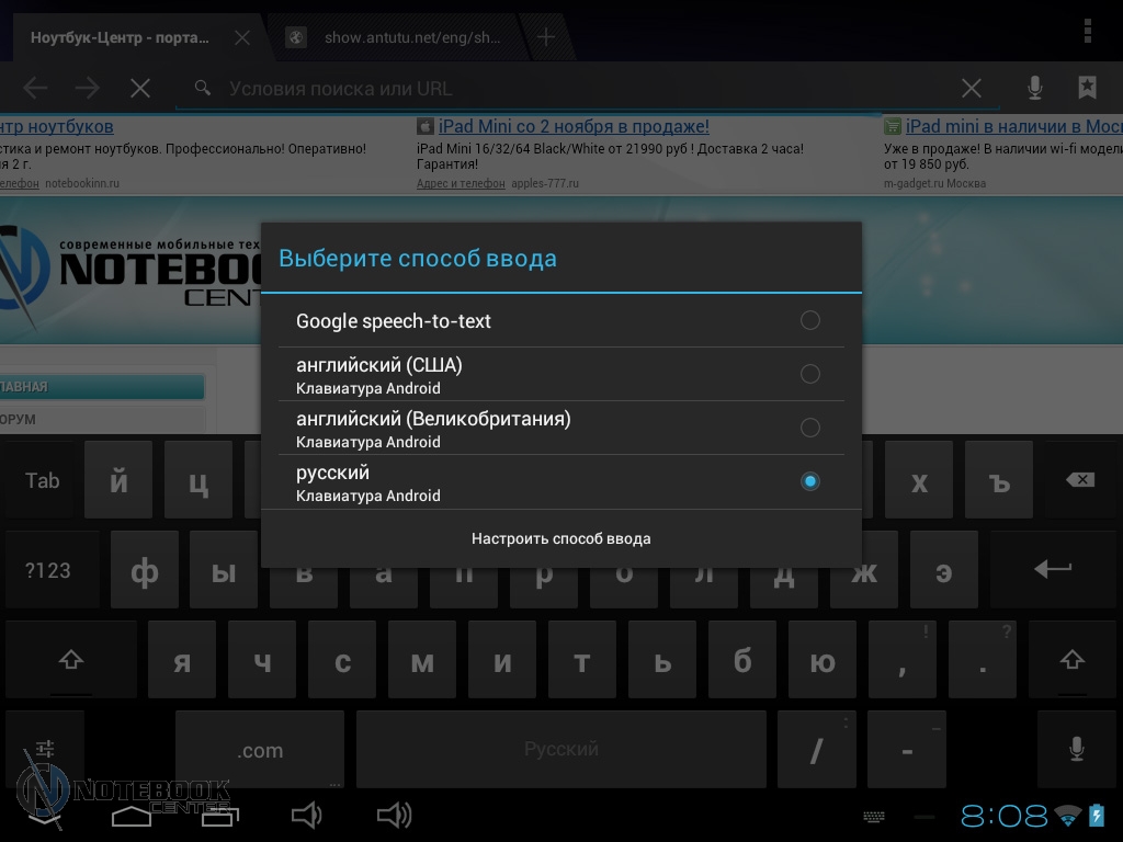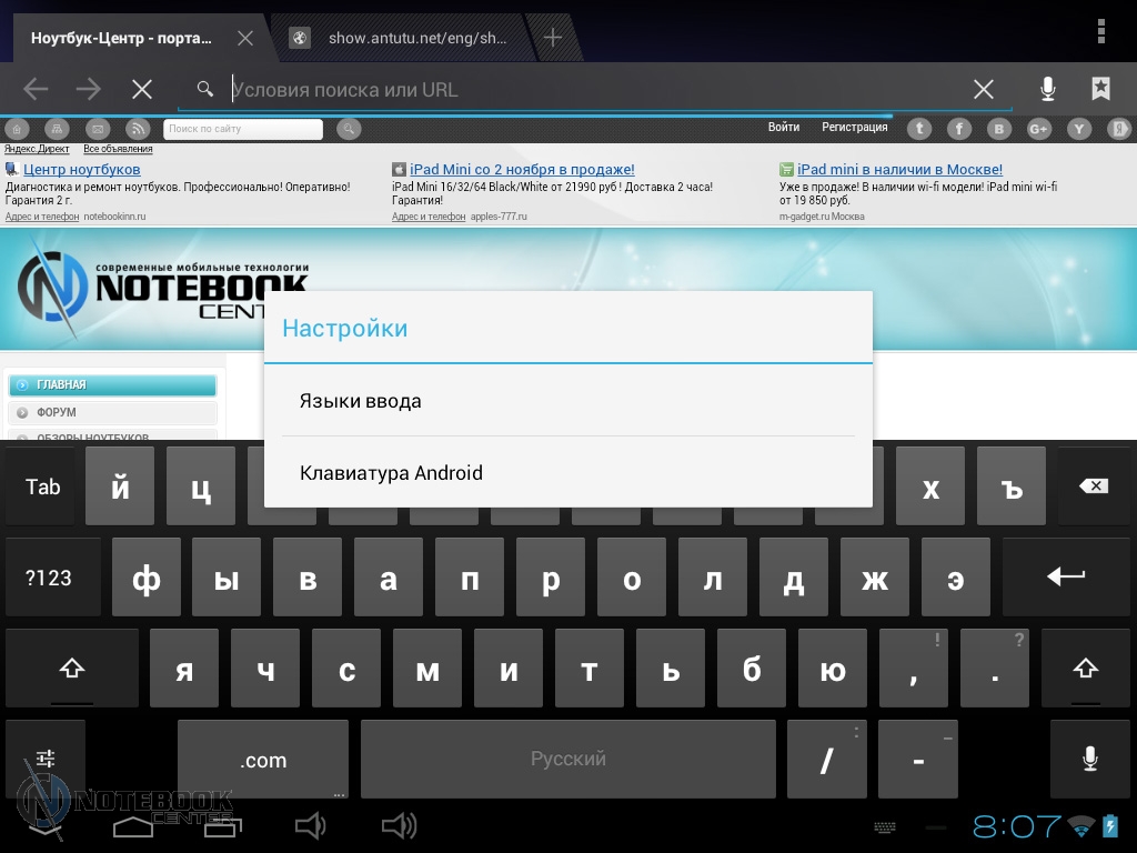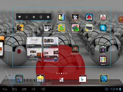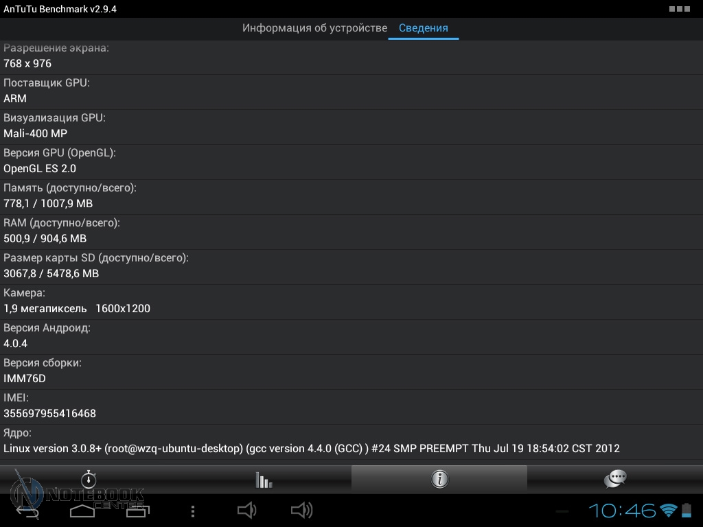Комплект поставкиКомплект поставки не особо богат, но может предложить покупателю все самое необходимое: собственно сам планшет, набор руководств пользователя и зарядное устройство. Кроме того, в комплект поставки также вошли наушники и переходник Mini-USB/USB. ![]() ДизайнПожалуй, первое, чем привлекает этот планшет - это дизайн. Он изготовлен из качественных и довольно приятных материалов, к тому же габариты позволяют его всегда держать при себе. В руках планшет лежит просто отлично, этому способствуют его закругленные края и довольно малая толщина корпуса - всего в 9.6 мм. ![]() Если говорить о целевой аудитории, не беря во внимание начинку планшета, а более детально останавливаясь на его внешнем виде, то я бы сказал, что он подойдет почти каждому человеку. Его дизайн одновременно можно назвать и нейтральным и в тоже время располагающим. ![]() Что касается материалов из которых он изготовлен, то рамка дисплея выполнена из пластика, а задняя крышка из алюминия. К качеству сборки претензий также нет, зазоры и другие изъяны отсутствуют. Да и такая проблема, как прогиб задней крышки, присущий многим планшетам, отсутствует. ![]() Габариты устройства составляют 243х190х9.6 мм, а весит он 578 грамм. Дисплей, звук, камераВот мы и подошли к одному из самых главных достоинств этого планшета – его дисплею. Для такой недорогой модели как наша, это, несомненно, основной плюс. Разрешение 9.7-дюймового дисплея составляет 1024х768 пикселей при соотношении сторон 4:3. Такого разрешения вполне хватает, чтобы с комфортом просматривать веб-страницы или смотреть фильмы. ![]() Кстати основным достоинством матриц, которые выполнены по IPS технологии являются отличные углы обзора. Просмотр фильма на этом планшете в компании близких вам людей явно будет удовольствием, а не наоборот. ![]() Ниже на скриншоте можно увидеть, как выглядит стандартный плеер для воспроизведения видео, в котором проигрывается Full HD видео. ![]() Размер дисплея позволяет с большим удобством просматривать веб-страницы, чем на 7-дюймовом планшете. Чуть ниже виден пример нескольких скриншотов сделанных в браузере. ![]() ![]() ![]() Емкостный экран поддерживает до 10-ти одновременных касаний, а сенсорный ввод и управление осуществляются четко и без каких-либо проблем. Качество выдаваемого звука вполне привычное для планшетов, более выражены средние и высокие частоты, искажения отсутствуют. Ниже виден скриншот сделанный в стандартном плеере. ![]() В планшете имеют две веб-камеры. И основная камера, и фронтальная имеют одинаковое разрешение, которое составляет 1600х1200 пикселей. Это конечно не Full HD, но при необходимости планшет может заменить вам фотоаппарат, а фронтальная камера лучше подойдет для общения по Skype. ![]() ![]() Стандартный интерфейс приложения, с помощью которого можно делать снимки и снимать видео вы можете увидеть на скриншоте ниже. Здесь присутствует бегунок зума, различного рода настройки, выбор качества изображения и другие. ![]() Хотя обе камеры и имеет одинаковое разрешение, но качество снимков все же чуть отличается. Ниже вы можете увидеть фотографию, сделанную с помощью основной камеры. ![]() А вот такое изображение получилось с помощью фронтальной камеры. ![]() КлавиатураДля управления планшетом предусмотрено пять основных сенсорных (программных) клавиш, а также целых 5 физических клавиш. Такое количество физиче
