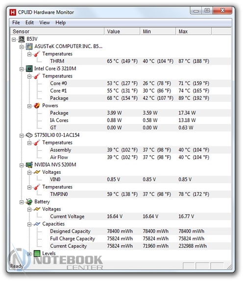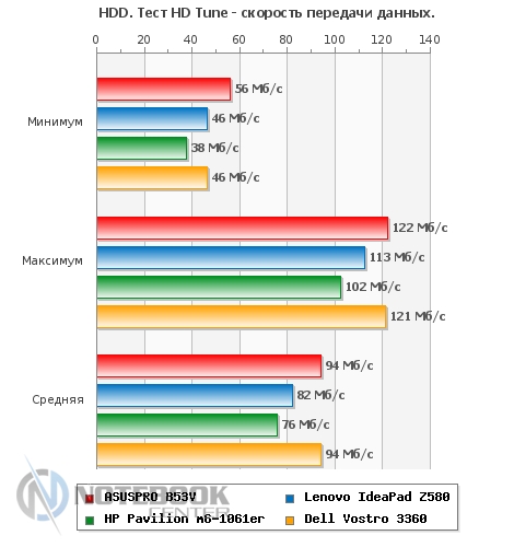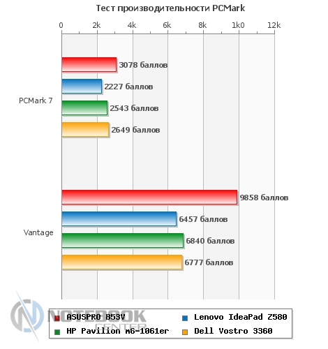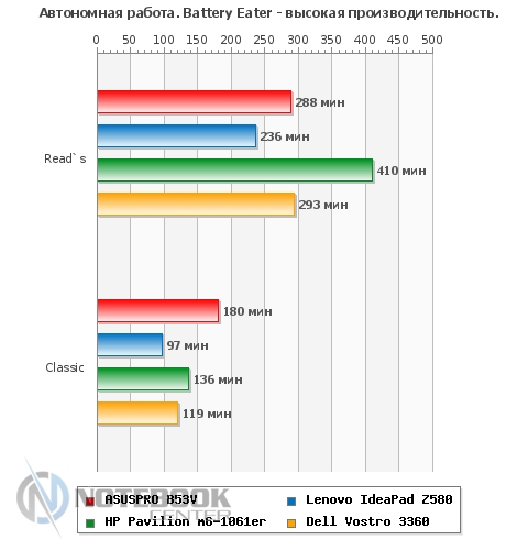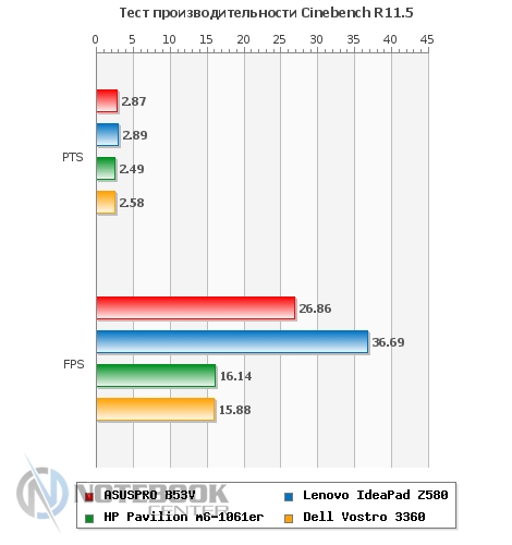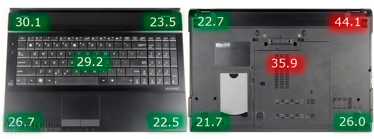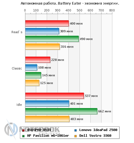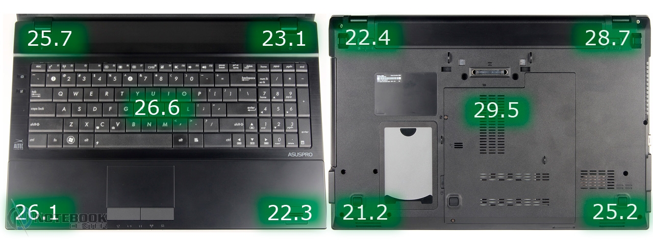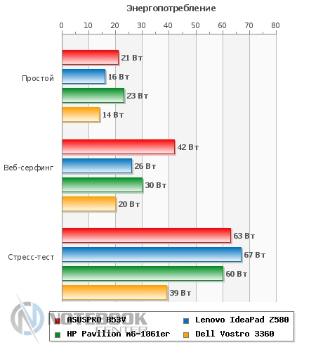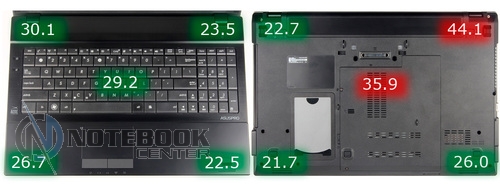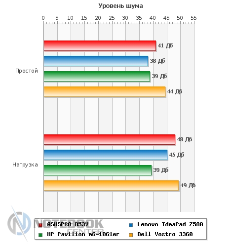 ДизайнДаже на первый взгляд ноутбук ASUSPRO становится ясно, что данная модель отличается исключительной надежностью. Выглядит ноутбук достаточно сдержанно, в нем нет никаких лишних деталей. Качество сборки отличное, а материалы, которые были использованы при изготовлении элементов, очень прочные. Скрипы отсутствуют. Крышка ноутбука открывается легко, это несложно сделать даже одной рукой. ![]() При закрытии крышки верхняя и нижняя часть идеально прилегают друг к другу, щели на стыках отсутствуют. Петли прочные, надежно удерживают дисплей. Экран идеально фиксируется в необходимом положении. Вес ноутбука достаточно большой, 2.69 кг, постоянно носить с собой его будет затруднительно. В тоже время ASUSPRO B53V – отличный вариант для офиса. В первую очередь ноутбук ориентирован, конечно же, на бизнес-пользователей. ![]() Верхняя крышка B53V изготовлена из шлифованного алюминия, в передней части есть вставка из матового пластика черного цвета, под которой расположена антенна Wi-Fi. Ниже от вставки находится зеркальный логотип производителя. В нижней части присутствует небольшой изгиб, который, видимо, считается дизайнерским ходом. ![]() Днище ноутбука изготовлено из матового пластика, в передней части находятся небольшие резиновые ножки, а в задней части ножки немного больше по размеру, которые не допускают скольжения и обеспечивают устойчивость ноутбука на гладкой или наклонной поверхности. Снятие батареи можно легко осуществить, отодвинув две боковые защелки, и просто потянув ее на себя. Также на днище расположился разъем для док-станции. На дне слева есть пластиковый карман, в который можно вставить, например, визитку. ![]() Чтобы снять нижнюю крышку, нужно открутить всего два винта, после чего становятся доступны две планки памяти, жесткий диск, модуль Wi-Fi и модем, так что с заменой этих компонентов проблем не возникнет. Для доступа к остальным компонентам и замене термопасты, придется произвести более детальную разборку ноутбука. Вентиляционных отверстий на дне достаточное количество, следовательно, перегреваться ноутбук не должен. Дисплей, звук и веб-камераВ ноутбуке ASUSPRO B53V стоит 15.6-дюймовый дисплей с разрешением 1920x1080 пикселей. Яркость и цветопередача – на высоком уровне. Несомненным приоритетом перед конкурентами стало антибликовое покрытие экрана. Намного приятней работать за ноутбуком, когда на дисплее нет отражений предметов, находящихся вблизи. Угол раскрытия дисплея небольшой, 140°. По этой причине пользоваться ноутбуком, поставив на колени, будет не очень комфортно. ![]() Что касается углов обзора, то здесь они достаточно большие, сидя даже сбоку, неплохо видно все, что происходит на экране. ![]() Даже если ноутбук стоит на ровной плоской поверхности и открывается менее 90°, то большого затемнения изображения не наблюдается. Это чрезвычайно приятно, т.к. для большинства ноутбуков это является характерной чертой при таком положении экрана. Вокруг дисплея находится матовая рамка, на которой при открытии экрана не остается отпечатков. Кроме того, по периметру дисплея находится ряд резиновых накладок, которые предотвращают продавливание матрицы клавиатурным блоком. ![]() Сверху находится веб-камера с рычажком закрытия и открытия, а также микрофон. ![]() В нижней части рамки экрана, посредине, расположился логотип компании, что выглядит дос