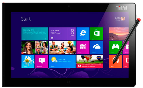 ДизайнВнешний вид гаджета скорее рассчитан на будни делового человека: он немного унылый, особо непримечательный, даже в своем роде чересчур скромный. Непосредственно на крышке находится логотип Lenovo, название серии ThinkPad, а также объектив основной камеры и встроенный микрофон с функцией шумоподавления. В корпусе ThinkPad Tablet 2 предусмотрен слот, куда можно поместить стилус. Для тех, кто часто пребывает в поездках, это очень удобно, ведь в противном случае потерять бы его было проще простого. Планшет изготовлен из обычного пластика, металла здесь нет. Тем не менее, устройство выглядит надежным, кроме того, в нем все скомпоновано отлично. Порадует и матовая отделка таблетки, благодаря которой поверхность не будет слишком загрязняться. ![]() Вокруг экрана можно увидеть относительно широкую рамку, на которой располагается объектив встроенной веб-камеры, сенсор освещения, настраивающий яркость дисплея автоматически в зависимости от яркости окружающего пространства, и кнопка Windows, которую можно увидеть внизу. ![]() В целом, назвать дизайн оригинальным довольно сложно, прослеживается минимализм буквально во всем, ничего эпатажного дизайнеры не придумали. В общем, устройство, скорее, на любителя, хотя и получилось по-своему стильным. ![]() Отметим, что в зависимости от конфигурации Lenovo ThinkPad Tablet 2 будет иметь различный вес. Так, планшет лишь с Wi-Fi ограничится 565 граммами, тогда как вес моделей с активным дигитайзером и с Pen/Digitizer + 3G/4G будет чуть тяжелей – 585 и 600 граммов соответственно. А вот габариты корпуса останутся неизменными: 262.6x164x9.8 мм. Дисплей, звук, веб-камераВ отличие от предшественника, где дисплей имел разрешение 1280х800 точек, в планшете ThinkPad 2 установлен 10.1-дюймовый экран с разрешением 1366х768 пикселей и соотношением сторон 16:9. Важно отметить, что имеется и антибликовое покрытие, поэтому даже при очень ярком освещении изображение останется хорошо читаемым. Кстати, проблем с контрастностью и с яркостью экрана тоже нет, что позволяет комфортно работать и в офисе, и на улице. Дисплей планшета ThinkPad 2 сенсорный емкостного типа, он поддерживает пятипальцевый мультитач, что позволяет свободно вращать, увеличивать или уменьшать изображения, пролистывать страницы и фотографии и т.п. К тому же сенсор экрана очень отзывчивый, поэтому не придется дважды подтверждать выполнение команды. В числе достоинств нельзя не назвать использование технологии IPS, благодаря которой дисплей имеет отличные углы обзора, позволяющие увидеть четкое изображение с различных позиций, а также очень естественные цвета. От возможных повреждений экран защищает прочное стекло. ![]() За воспроизведение звука отвечают два динамика мощностью 1 Вт каждый. Они располагаются на левой грани и на нижнем торце. Нельзя сказать, что звучание просто великолепное, однако как для планшета, достаточно и громкости, и даже высоких частот. Для видеосвязи и фотосъемки можно использовать 2 Мп фронтальную камеру и 8 Мп основную. Задняя веб-камера имеет светодиодную вспышку, а также автофокус. Ее разрешение больше, чем было у первого поколения этого планшета, и, в целом, качеством снимков, выполненных тыловой камерой, вы останетесь довольны. ![]() КлавиатураВвод информации на планшете можно осуществлять не только с помощью стандартной виртуальной клавиатуры, но и стилусом, если таковой имеется в комп