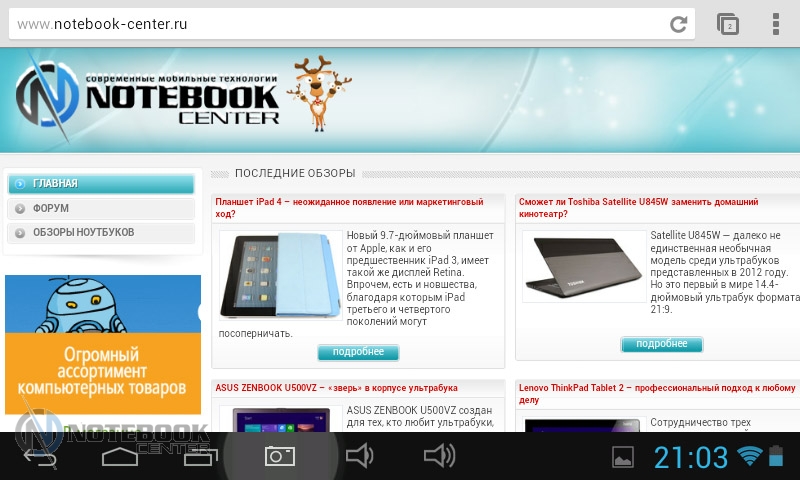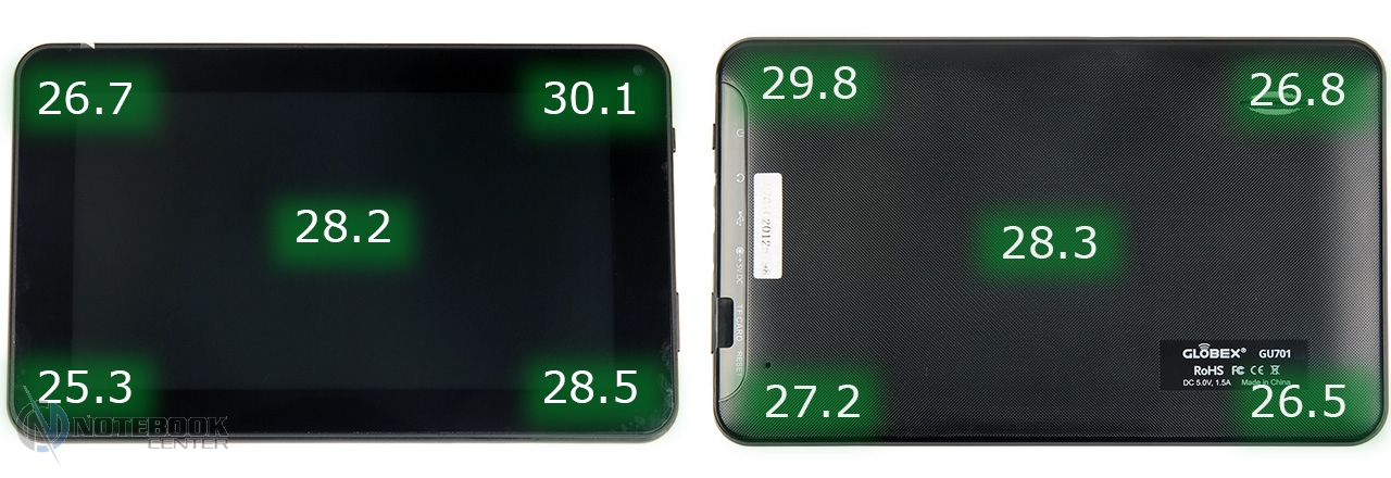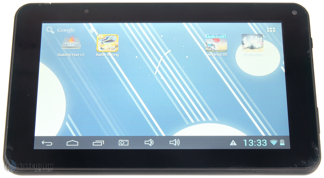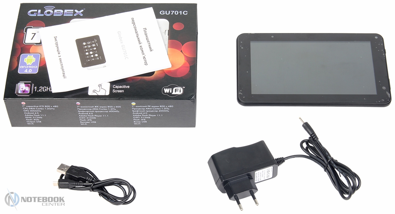 Комплект поставкиПервым приятным моментом при знакомстве с планшетом GU701C стало качество оформления его комплекта поставки. В красочной глянцевой коробке для каждой составляющей отведено определенное место. В отдельных отсеках располагаются сам планшет, адаптер питания, кабель USB, а также подробнейшая инструкция по эксплуатации девайса на украинском языке и гарантийный талон. Все предельно аккуратно и продуманно. ![]() ДизайнКорпус устройства, произведенного компанией Globex, выполнен из пластика черного цвета. Сам по себе планшет небольшой, размер его дисплея составляет 7 дюймов, а закругленные углы и плавные линии корпуса только подчеркивают миниатюрность и элегантность девайса. Он легок и удобен для удержания как одной, так и двумя руками. ![]() Задняя сторона корпуса изготовлена из рифленого пластика, что предотвращает скольжение при использовании. На этой стороне достаточно информативные надписи – правый нижний угол украшен наклейкой с некоторыми данными об устройстве, а слева вертикально расположены маркировки соответствующих разъемов и кнопок, а также слот для карт памяти microSD, объемом до 32 Гб. Верхний правый угол имеет две решетки, за которыми спрятан динамик. ![]() Вес GU701C составляет 319 г, а габариты корпуса – 192 x 118 x 11 мм. Дисплей, звук, веб-камера7-дюймовый дисплей планшета Globex GU701C имеет разрешение 800х480 точек. Конечно, это не сравнится с Retina или Full HD, однако на сегодняшний день такая разрешающая способность экрана является одной из самых распространенных для бюджетных моделей. Взять, к примеру, Modecom FreeTAB 2096 или Prestigio MultiPad PMP3270B, которые имеют такое же разрешение. ![]() Сенсорный экран GU701C широкоформатный, соотношение его сторон составляет 16:9. Кроме того, дисплей окантован достаточно широкой рамкой, на которой нет ни сенсорных, ни физических кнопок. Работать с таким девайсом приятно, хотя присутствуют некоторые недостатки. К примеру, несколько подкачали углы обзора. При изменении положения планшета происходит искажение изображения, что, естественно, не очень удобно во время работы. ![]() Размер иконок на рабочем столе средний, а шрифт на веб-страницах достаточно крупный, так что масштабированием страниц в процессе работы можно не злоупотреблять. ![]() ![]() Цветопередача и яркость дисплея также на достаточном уровне, пользователь вполне комфортно сможет смотреть фильмы и фотографии. Кстати, планшет GU701C поддерживает множество видео форматов, среди которых AVI, 3GP, MP4, MPG, RM/RMVB, MKV, MOV, FLV, WMV, а также способен воспроизводить видео с разрешением 1080р. В правом верхнем углу рамки планшета Globex GU701C располагается фронтальная 0.3 Мп веб-камера, используемая для видеочата. Изображение, транслируемое с ее помощью, довольно четкое. ![]() За вывод звука в устройстве Globex отвечает динамик, который спрятан за двумя фигурными решетками на задней панели. Как и для многих планшетов, для GU701C характерно не слишком громкое звучание, поэтому гарнитура, скорее всего, станет неотъемлемой частью девайса в шумном месте. ![]() КлавиатураВ планшете Globex GU701C используется виртуальная сенсорная клавиатура. Раскладка вполне стандартная, имеется и кнопка быстрого переключения между языками, и голосовой поиск – все это типично для Android-устройств. ![]() Физических кнопок GU701C не имеет, а вот программных насчитывается целых пять. Это клавиши назад, домой, меню недавно закрытых прило
