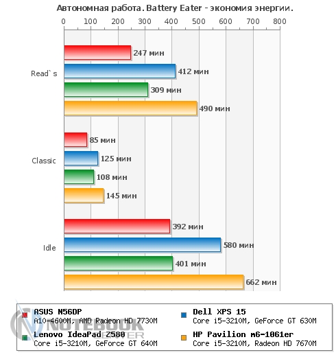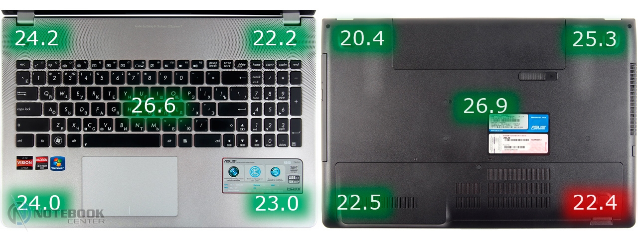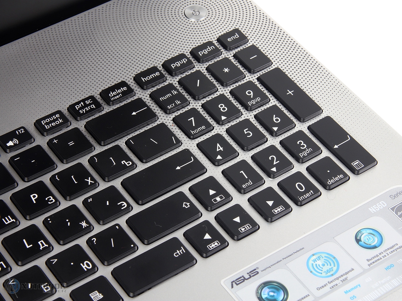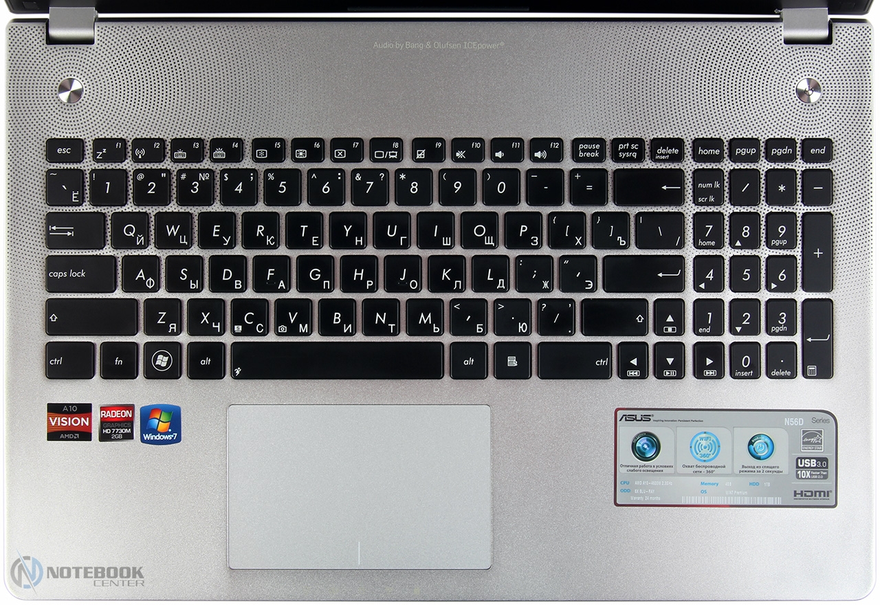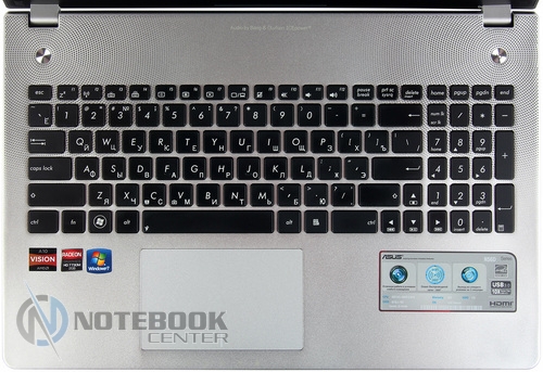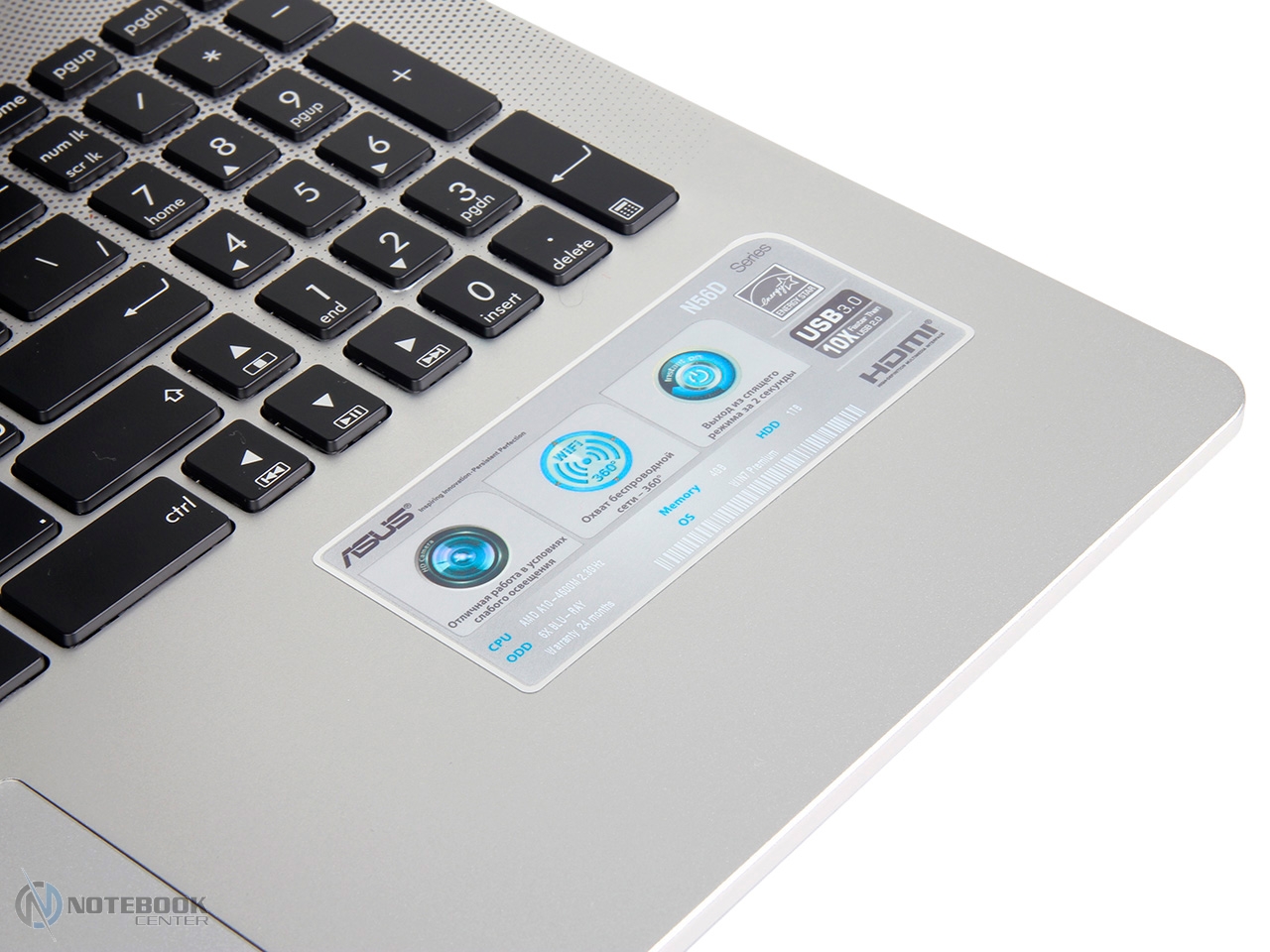 Комплект поставкиВ коробке с ноутбуком ASUS N56DP, кроме традиционных руководства пользования, зарядного устройства и диска с драйверами, имеется несколько приятных и полезных дополнений. Это оптическая USB мышка, внешний сабвуфер и сумка для ноутбука. ![]() ![]() Все аккуратно упаковано в индивидуальные пакеты и разложено по отдельным отсекам в коробке. ![]() ДизайнКак уже указывалось выше, ASUS N56DP обладает очень выразительной внешностью, без преувеличения можно сказать, что это модель из высшего общества, настолько качественно и благородно все сделано. Корпус ноутбука выполнен из металла, кроме днища, здесь – пластик. ![]() Цветовое оформление классика жанра – черные и светло-серые тона именно то, что нужно для сдержанно-утонченного стиля. Крышка черного цвета украшена подсвечивающимся логотипом ASUS, а в верхней части поместили тонкую пластиковую полоску для лучшего приема сигнала беспроводной связи. ![]() По периметру днища в углах находятся четыре резиновые ножки для предотвращения скольжения ноутбука. Решеток вентиляции несколько, они расположены на небольшой съемной панели, которая обеспечивает легкий доступ к винчестеру и планкам памяти. Практически все винты, фиксирующие днище, скрыты за специальными резиновыми заглушками, что создает приятное впечатление о продуманности каждой детали. Ближе к переднему торцу находится слот для карты памяти, а слева еще одна решетка системы охлаждения. Батарея съемная, она свободно изымается из своего отсека. ![]() Изнутри ASUS N56DP не менее привлекателен, чем снаружи. На фоне светло-серой рабочей поверхности черная островная клавиатура выглядит особенно хорошо, а радиально расположенные отверстия решеток динамиков вокруг кнопки включения и многофункциональной клавиши Instant Key добавляют порцию оригинальности и неординарности данному устройству. ![]() К качеству сборки нет абсолютно никаких претензий, ничего нигде не скрипит, люфты не обнаружены, а качество использованных материалов заслуживает уважения. Словом, абсолютно справедливо, что на известном дизайнерском конкурсе Red Dot ноутбуки ASUS N-серии были отмечены наградой за стильную внешность и высококачественные материалы. ![]() Что касается габаритов, то ASUS N56DP весит 2.7 кг, а его размеры составляют 38.0x25.5x2.7 см. Кроме того, в комплекте с ним идет внешний сабвуфер, который имеет массу 149 г. ![]() Дисплей, звук, веб-камераДисплей ASUS N56DP окантован достаточно широкой рамкой, выполненной из черного пластика. Это решение привносит некоторый дискомфорт, так как на такой поверхности очень легко остаются отпечатки пальцев, что не только портит эстетический вид, но и, в некоторой степени, даже мешает работать или отдыхать за ноутбуком. Однако для пользователя, не обладающего повышенными требованиями к комфорту, этот момент вряд ли станет проблематичным. ![]() N56DP оснащен 15.6-дюймовым Full HD дисплеем с разрешением 1920х1080 пикселей, который выполнен по TN-технологии. Не секрет, что такая матрица на фоне преимущества в виде дешевизны, обладает рядом существенных недостатков, среди которых основным являются небольшие углы обзора. И, само собой, N56DP не минула печальная участь искажения изображения при изменении угла наклона дисплея. ![]() Однако, данный ноутбук не так-то прост, на его вооружении стоит специальная технология, которая обеспечивает увеличенные углы обзора (150 градус
