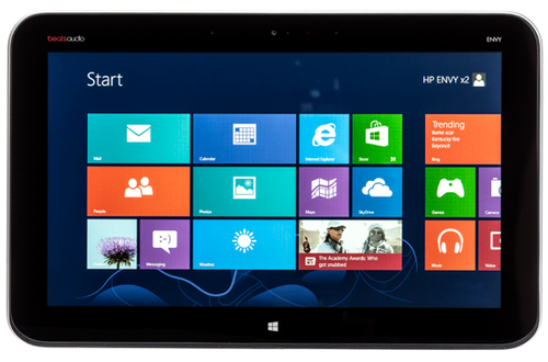 ДизайнМодель HP ENVY x2 имеет оригинальный дизайн, такой себе гаджет-трансформер. Качественный алюминиевый корпус приятно держать в руках, он выглядит элегантно и утонченно, подчеркивая статус своего владельца. Конечно, благодаря такой детали, эта модель от HP будет смотреться явно выигрышней для потенциальных покупателей, чем аналогичные планшетные ПК, выполненные из более дешевого хлипкого глянцевого пластика. ![]() Верхняя часть устройства – дисплей, который имеет закругленные углы, что делает его более плавным, а контуры – мягко очерченными. Кроме того, окантовка дисплея выполнена в черном цвете, что является, скорее, минусом: на ней видны все отпечатки пальцев. Отдельно хочется обсудить такую важную деталь данной модели, как док-клавиатура, которая помимо своей основной задачи выполняет функцию дополнительного аккумулятора, а также имеет в своем арсенале набор разъемов для еще более комфортной эксплуатации устройства. ![]() Сама клавиатура по внешним признакам особо ничем не отличается от моделей – аналогов: она выполнена в серых тонах, клавиши черные прямоугольные, между ними сохранено комфортное для пальцев расстояние. Когда планшет и клавиатура соединены, чувствуется некий перевес верхней части гаджета. Если использовать устройство на ровной поверхности, никаких трудностей это не доставит, однако, если держать его на коленях, то планшет легко может перевернуться, поэтому вопрос такой вот балансировки следует обязательно учитывать при выборе и покупке HP ENVY x2. ![]() Что касается подсоединения планшета и клавиатуры, то здесь тоже все довольно просто. На планшетной части ENVY x2 есть специальные разъемы, благодаря которым он и подключается к клавиатуре. Если же док не нужен, то стоит потянуть влево ползунок, расположенный в центре над клавиатурой, и док-станция отстегнется. Что касается качества сборки, то по этому пункту у планшета-ноутбука все отлично, обе половинки надежно держатся и не шатаются. ![]() Дисплей, звук и веб-камераПланшет HP ENVY x2 имеет 11.6-дюймовый глянцевый сенсорный экран с разрешением 1366x768 точек. Дисплей выполнен по IPS технологии, благодаря этому имеет место отличная цветопередача независимо от угла обзора, да и сама обзорность очень хорошая. Данный планшет не имеет явных недостатков в изображении, а нечеткая передача некоторых цветов (отдача красного в оранжевый, синего – в голубой и т.п.) является типичной для планшетов на базе Windows 8. ![]() Нельзя не отметить хорошие характеристики сенсора дисплея: он очень чувствительный, отлично реагирует на касания пальцами. К сожалению, в базовой комплектации отсутствует стилус, и для многих это может оказаться существенным недостатком. Планшет имеет в наличии 2 камеры: фронтальную, с разрешением 2 Мп, которая отлично подойдет для видеоконференций и просто частных бесед, и заднюю, с более высоким разрешением 8 Мп, с помощью которой можно создавать снимки и видео отличного качества. Не секрет, что фотографии, сделанные при помощи этих двух камер, будут существенно отличаться по качеству: изображение, выполненное при помощи фронтальной камеры, будет менее четкое, чем то, которое выполнено камерой, находящейся на задней панели. ![]() Помимо фронтальной камеры, вверху дисплея можно увидеть отверстия микрофонов и датчик освещения. В самом низу, по углам, на стыке окантовки и нижней 