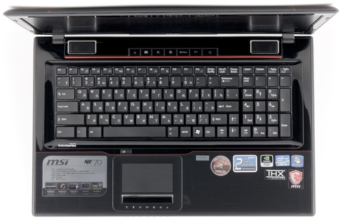 ДизайнВдохновленный гоночными машинами, производитель видит GE70 в роли болида Формулы-1, не зря дизайн данного устройства многие считают дерзким и даже агрессивным. Модель выполнена в прямых линиях, с четкими углами, по бокам крышки отчетливо видны волны перламутрового цвета, которые переходят в красный цвет, а посредине ее цвет становится серым. Сама по себе крышка выполнена из глянцевого пластика, очень маркого и непрактичного. ![]() Открыв гаджет, взору представляется вполне стандартная клавиатура, над которой расположен ряд мультимедийных клавиш, достаточно функциональных. Поверхность их, опять же, глянцевая, а индикаторы имеются не у всех кнопок. Рабочая панель, как и рамка дисплея, выполнены все из того же ненавистного многим глянца, а значит, запаситесь салфетками, чтобы ваш ноутбук всегда имел приличный вид. ![]() Для того чтобы получить доступ к заменяемым компонентам, на днище присутствует достаточно широкая крышка, под которой можно увидеть целых три тепловые трубки, разъем mSATA для дополнительной установки SSD, два слота для оперативной памяти. Кроме того, данная модель оснащена большим количеством вентиляционных отверстий, что вполне логично, учитывая достаточно мощную начинку гаджета. ![]() MSI GE70 выглядит достаточно массивным, однако его габариты вполне обычные для игрового ноутбука: ширина гаджета - 42 см, длина – 27 см и толщина - 4 см, а его вес составляет 2.7 кг. Дисплей, звук и веб-камераНоутбук GE70 OND имеет 17.3-дюймовую TN-матрицу с разрешением 1920×1080 пикселей (Full HD). Также имеется светодиодная подсветка и антибликовое покрытие. Конечно, для игрового аппарата, матовый дисплей – огромный плюс, ведь блики могут сильно помешать наслаждаться процессом. Уровень яркости – средний, однако его вполне достаточно для комфортной работы, кроме того, имеется регулятор для большего комфорта пользователя. ![]() Углы обзора также неплохи – по горизонтали чуть лучше, чем по вертикали. Таким образом, под определенным углом присутствует некоторое искажение передачи цвета, однако не настолько сильное, чтобы причинять какой-то дискомфорт. Яркость дисплея равна 251 кд/м2, контрастность - 732:1. Показатели, в общем-то, неплохие, яркости, возможно, хотелось бы и побольше, а показатели контрастности порадовали. По сборке не возникает абсолютно никаких нареканий, крышка качественно закреплена, не прогибается и не шатается. В GE70 над дисплеем расположена встроенная HD веб-камера c разрешением 720p (1280х720 пикселей), которой будет более чем достаточно для общения в Skype. Качество снимков тоже хорошее, яркость и цветопередача находятся на приличном уровне. ![]() Звук – очень важная характеристика для игрового ноутбука. Данный лэптоп снабжен четырьмя динамиками (два над клавиатурой, еще два – на передней панели на скосе) общей мощностью 8 Вт, благодаря чему устройство выдает вполне приличный звук. Конечно, высокие частоты выражены намного сильнее, чем средние и низкие. Если бы производители установили сабвуфер, ситуация изменилась бы кардинально. С другой стороны, использование 4-точечной акустики позволило сделать звук по-настоящему объемным, пусть и не таким чистым и громким. Однако стоит подключить наушники и звук становится просто потрясающим! Звучание настроено таким образом, чтобы можно было услышать любые шаги в игре и понять, откуда доносится любой звук. А бл