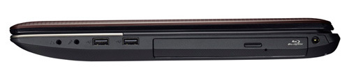 ДизайнНоутбук ASUS K75VJ не просто привлекательный, а действительно красивый. Практически все поверхности корпуса имеют матовую текстуру, также внимание привлекает дымчато-коричневая расцветка, которая дополняется золотистым и черным оттенками. Из материалов используется в основном пластик, металлической сделана лишь площадка для запястий. ![]() Практичность такого корпуса не оставляет сомнений, ведь царапины скроет незатейливый текстурный узор, а отпечатки пальцев если и останутся, то на матовой поверхности не будут слишком заметны. ![]() Вдобавок такой ноутбук приятно держать в руках, не переживая, что он случайно выскользнет. Зато впечатления от качества сборки несколько иные. Безусловно, приятно, что подладонная панель совсем не прогибается, но остальные поверхности все же довольно сильно поддаются давлению, а шарниры, пусть и тугие, но дают дисплею немного раскачиваться. ![]() ASUS K75VJ имеет размеры 420х282х346-386 мм и вес около 3 кг. Разумеется, такой ноутбук будет тяжело носить с собой, поэтому его основное место предназначения для использования – дом. ![]() Дисплей, звук, веб-камераДанный ноутбук оснащается 17.3-дюймовым дисплеем с разрешением 1600х900 точек. Поверхность экрана глянцевая, цвета на дисплее сочные. К сожалению, уровень яркости невысок (максимум 250 нит), соответственно, лучше работать или смотреть видео в помещении при искусственном освещении, а не на улице, где придется присматриваться к изображению. Кстати, цветовой охват и контрастность также не высоки. В общем, данный дисплей хорош для офисных задач и развлечений, но никак не для работы в программах, связанных с обработкой графики. ![]() Как правило, у TN-дисплеев недостаточно стабильные углы обзора. У нашего экрана аналогичная проблема. Причем, если горизонтальная обзорность более-менее нормальная, то даже при небольшом изменении вертикального положения дисплея искажения в цвете весьма заметны. Два динамика Altec Lansing расположены над клавиатурой и скрыты перфорированной решеткой. В целом звучанием вы останетесь довольны, поскольку даже на максимальной громкости звук обладает достаточной четкостью, несколько огорчает значительное преобладание высоких частот над низкими. Отдельно отметим эксклюзивную технологию ASUS SonicMaster Lite, благодаря которой звук остается чистым и без искажений. ![]() В K75VJ используется веб-камера высокой четкости, которая подойдет для видеосвязи. ![]() Клавиатура и тачпадДанный ноутбук оснащается островной клавиатурой, но без подсветки. Эргономика ее достаточно высока: стандартная раскладка и удобная матовая поверхность каждой клавиши. ![]() Более того, подложка клавиатуры при печати не прогибается, кнопки имеют плавный средний ход, нажимаются с хорошей отдачей и практически бесшумно. ![]() Размеров рабочей площадки целиком хватило, чтобы разместить и нампад. Радует, что кнопки стрелочного блока одинаковы с цифровыми клавишами, а в сравнении с остальными лишь немного уменьшены. Стрелки выполняют несколько функций: в первую очередь – управление курсором, во вторую – мультимедиа. ![]() Модель ASUS K75VJ оснащается бескнопочным тачпадом. Позиционирование выполняется очень легко благодаря гладкой поверхности сенсорной площадки. К тому же она отлично реагирует на команды и позволяет с помощью мультитач жестов без проблем вращать изображения, масштабировать или п