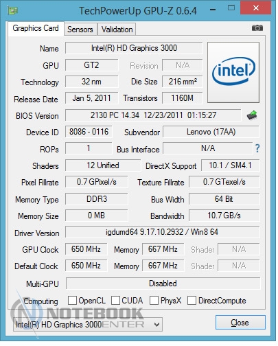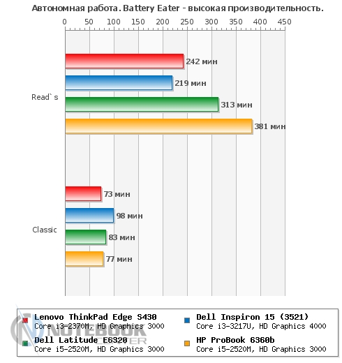 ДизайнДанный ноутбук выглядит так, как должна выглядеть модель, относящаяся к бизнес-сегменту – ничего лишнего, качественные материалы и отличная сборка. Создается ощущение, что перед вами лежит не просто устройство, а атрибут настоящего делового человека. ![]() Лэптоп смотрится строго и сдержанно, из украшений можно выделить надписи ThinkPad, которые расположились в углу крышки и на подладонной поверхности. Особенностью такого дизайна является красный светодиод, который имитирует точку буквы i, и неплохо смотрится на матовой поверхности черного корпуса. Вполне очевидно, что горит он только тогда, когда ноутбук находится во включенном состоянии. ![]() Многие производители уже давно используют такой материал как софт-тач пластик, но преимущественно его можно увидеть на планшетах или ноутбуках, у которых этим материалом покрыта какая-то отдельная часть. В нашем случае софтач используется практически везде, за исключением глянцевой рамки вокруг дисплея. На ощупь такое покрытие очень приятное, к тому же еще и очень практичное. ![]() Днище ноутбука цельное, и чтобы получить доступ к аккумулятору и внутренним компонентам необходимо будет снять его полностью. Также тут отсутствует разъем для док-станции. По углам размещены четыре резиновые ножки удерживающие ноутбук на любой поверхности. ![]() Хотелось бы отметить один момент, который нам очень понравился – открывание ноутбука одной рукой. Обычно эта операция легко выполняется только с громоздкими ноутбуками, у которых основание намного тяжелее крышки. Но наш ноутбук, со своим скромным весом проделал это упражнение без каких-либо усилий. Также стоит отметить, что дисплей довольно надежно крепится к основанию, таким образом, ничего нигде не шатается. ![]() По внешнему виду этот ноутбук показался очень компактным и легким. При взвешивании оказалось, что его вес составляет 1.97 кг, и это меньше чем у большинства 14-дюймовых моделей. К тому же стоит учесть, что это навороченная бизнес-модель. Габариты устройства также не очень велики – 351x238x24 мм. ![]() Дисплей и звукLenovo ThinkPad Edge S430 располагает 14-дюймовым дисплеем. Такой размер экрана является очень хорошим для использования в бизнес-моделях, но это не единственный его плюс, также можно отметить довольно высокое разрешение – 1600х900 пикселей. ![]() Но все вышеперечисленные преимущества этого дисплея не идут в сравнение с тем, что он обладает матовым покрытием. Для бизнес-модели оно является очень уместным и позволяет работать независимо от освещения (особенно на улице в яркую солнечную погоду). Углы обзора в Lenovo ThinkPad Edge S430 хорошие. Вертикальные хуже, чем горизонтальные, но часто подстраивать дисплей под себя не требуется. ![]() Очень порадовала акустика в этом ноутбуке. Звук, издаваемый динамиками, которые находятся под декоративной решеткой над клавиатурой, очень громкий и чистый. Конечно, есть некоторая нехватка басов, но даже в больших мультимедийных моделях присутствует такой недостаток. ![]() Веб-камера в Lenovo ThinkPad Edge S430 стандартного разрешения 1 Мп. Например, общаться с ее помощью через Skype или похожие программы очень удобно, можно даже делать снимки и записывать маленькие ролики. ![]() В качестве примера мы сделали фото с помощью этой веб-камеры. ![]() Клавиатура и тачпадLenovo ThinkPad Edge S430 обладает множеством органов управления и вариантов ввода, среди которых: к