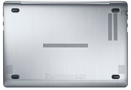ДизайнРассматривая этот ультрабук, можно увидеть его заметное сходство с устройствами Samsung Chronos 7 и отличие, например, от линеек Series 9 и Series 5 в первую очередь в дизайне. Корпус Samsung 730U3E имеет красивый стальной цвет, который на официальном сайте компании называют Bare Metal (дословно «голый металл»). ![]() Может показаться, что панели сделаны из прочного пластика, но на самом деле здесь используется только металл, а если быть более точными, шлифованный алюминий. При этом нельзя сказать однозначно, что все поверхности устойчивы к надавливанию. Так, подладонная площадка более крепкая, нежели подложка клавиатуры, хотя при печати прогибы не ощущаются. Вдобавок порадовало превосходное качество сборки ноутбука, плотная компоновка деталей и отсутствие глянца, как-никак, а матовые панели более практичные. ![]() Днище этого ноутбука имеет несколько вентиляционных решеток, одна из которых находится в центре. Через них воздух попадает в устройство. ![]() А вот для вывода теплого воздуха предусмотрены малозаметные отверстия за шарниром, удерживающим дисплей. ![]() Также есть четыре относительно крупные ножки и решетки, за которыми скрыты динамики акустической системы. Для снятия цельной нижней панели понадобится раскрутить порядка десяти винтиков. Для быстрой замены каких-либо компонентов, например, увеличения оперативной памяти, такой вариант не совсем удобен. ![]() Размеры ноутбука 324x224x17.5 мм и вес 1.46 кг позволят с максимальным комфортом его использовать в командировках и других поездках. Дисплей, звук, веб-камераУльтрабук оснащается матовым дисплеем, имеющим высокий уровень контрастности и яркость около 350 нит, а также хорошую цветопередачу. Для мультимедийного устройства, каким его позиционирует Samsung, это оптимальные характеристики, благодаря которым, и работать, и смотреть фотографии на улице будет не менее комфортно, чем в помещении. При размере 13.3 дюйма экран Samsung 730U3E имеет разрешение 1920х1080 пикселей и достаточно широкие углы обзора, что делает просмотр видео в небольшой компании близким к идеальному. Обзорность дисплея составляет около 170 градусов, почти как у IPS-матриц. Что касается плиток интерфейса Metro, то при Full HD-разрешении они выглядят нормально, к тому же, если учесть, что можно приобрести данную модель с сенсорным экраном, поддерживающим 10-пальцевый мультитач, то управление будет намного эргономичней. ![]() Для вывода звука в Samsung 730U3E предусмотрено два стереодинамика от компании JBL. Каждый из них находится на днище и имеет мощность 2 Вт. Также есть поддержка фирменной технологии SoundAlive, благодаря которой звучание должно быть объемным и чистым. Она же позволяет улучшить качество звука при воспроизведении видео. На самом деле акустика ноутбука действительно неплохая, звучание ничуть не хуже, чем у конкурентов. Возможно, может показаться, что уровня громкости может не хватить, но на самом деле она находится на достойном уровне. ![]() На рамке дисплея располагается интегрированная веб-камера с разрешением 1.3 Мп. Она идеально подходит для общения в Skype. Рядом с ней размещен сенсор освещенности, который настраивает яркость дисплея в зависимости от внешнего света, два микрофона и индикатор, показывающий, когда камера включена. ![]() Клавиатура и тачпадВ ноутбуке используется островная клавиатура со стандартной раскладкой и оптимальным размером клав