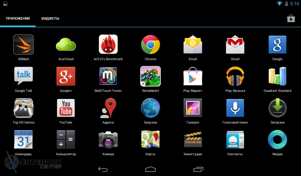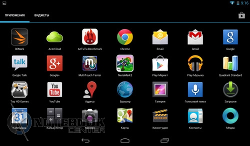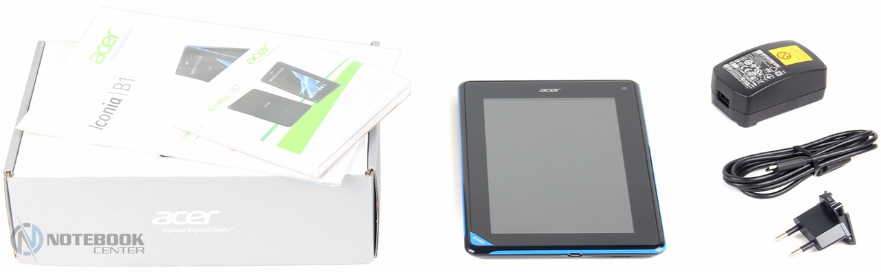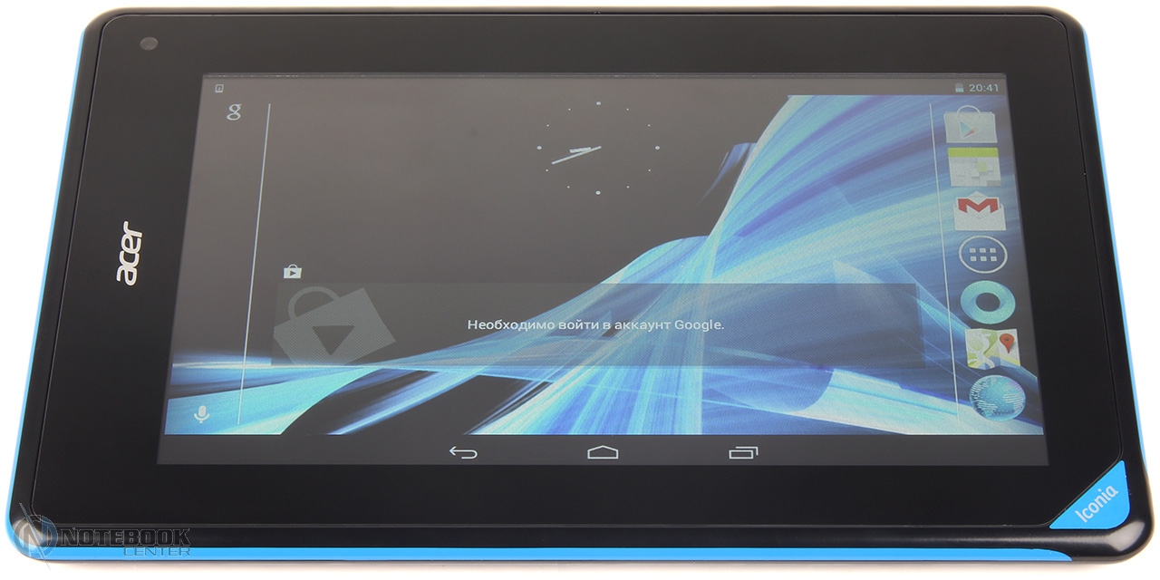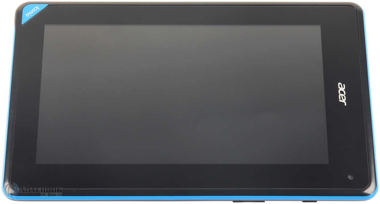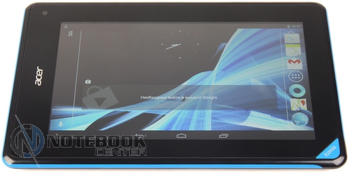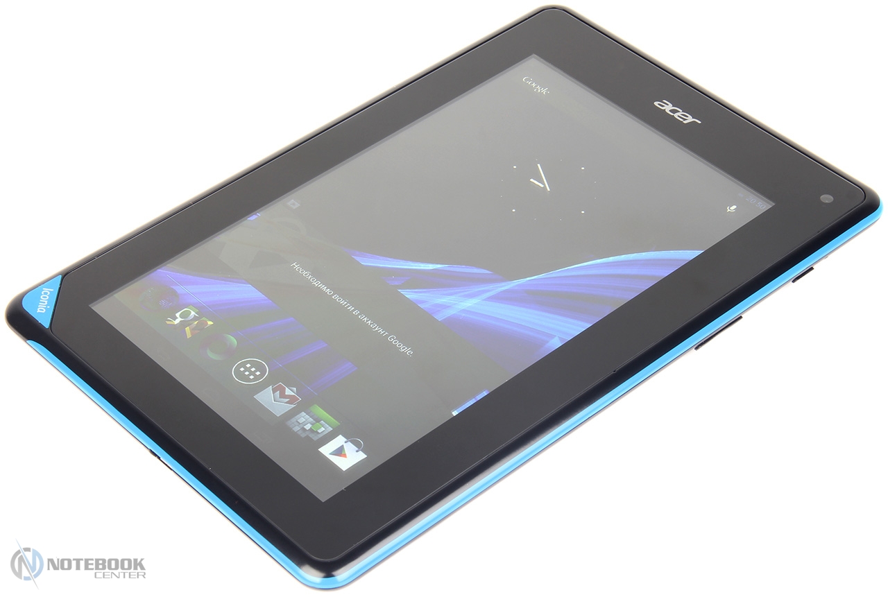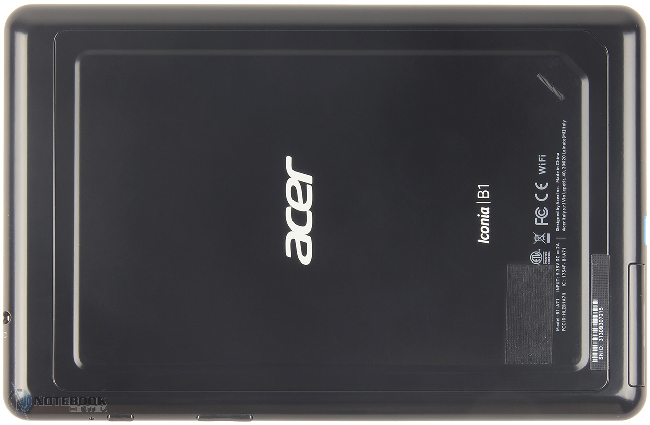 Комплект поставкиПланшет находится в картонной коробке, где дополнительно вложено краткое руководство пользователя, а также сведения о продукции и технике безопасности. Кроме того, в комплекте предусмотрен блок питания с вилкой евростандарта и переходник Micro-USB-USB. ДизайнВнешний вид планшета запоминающийся. Верхняя и нижняя панели имеют черную расцветку, которая сочетается с ярко-синей окантовкой по периметру корпуса. Нижний левый угол рамки дисплея также синий, на нем можно увидеть надпись ICONIA. Если рассмотреть планшет снизу, видно, что в центре производители расположили свой логотип, а ниже – название модели и краткую информацию с указанием страны-производителя. Также на нижней панели также есть решетка, за которой спрятан динамик. Вообще, держать ICONIA B1 удобно, возможно потому, что задняя крышка не плоская, а двухуровневая. Более того, все торцы и панели гладкие, незаостренные. Глянец, использованный в корпусе, смотрится очень красиво, до тех пор, пока не начнешь пользоваться гаджетом. Тогда он сильно залапывается, и его надо периодически протирать. Не совсем приятно видеть, как прогибается пластик и скрипит корпус в нижней части. Также при надавливании сзади на поверхности дисплея видны разводы. Конечно, в этом отношении планшет уступает конкурентам, например, Google Nexus 7. Зато вес устройства 320 граммов, как и размеры 197.4x128.5x11.3 мм совсем небольшие, что позволит, не задумываясь, носить Acer ICONIA B1 с собой постоянно. Дисплей, звук, веб-камераВ планшете установлен емкостный сенсорный дисплей с размером по диагонали 7 дюймов и соотношением сторон 17:10. Разрешение экрана составляет 1024х600 точек (WSVGA) с плотностью 160 пикселей на дюйм. Ниже вы можете увидеть, как выглядят веб-страницы и иконки программ на ICONIA B1. Чтобы посмотреть интернет-сайты, лучше воспользоваться альбомной ориентацией страницы, так шрифт будет крупнее. Что касается приложений, то размеры иконок под стать пальцам, а название под ними легко читаемо. Яркость и контрастность данного экрана не слишком высокая, но ее хватит для работы в помещении и на улице, если привыкнуть к отражениям от глянцевой поверхности. Зато сочные цвета порадуют любителей игр и видео. Добавим, что горизонтальные углы обзора TN-дисплея более стабильны, чем вертикальные, но в целом вы сможете посмотреть фотографии в небольшой компании. Чтобы проверить, на какое количество одновременных касаний реагирует дисплей Acer ICONIA B1, было запущено приложение MultiTouch Tester. В результате мы увидели, что экран планшета поддерживает пятипальцевый мультитач, что подтверждается соответствующим скриншотом. С уверенностью можно сказать, что звук, воспроизводимый планшетом, на удивление громкий, чистый и даже немного объемный. Правда, в первую очередь слышны высокие частоты, иногда через них прорываются низкие. Учитывая, что в планшете всего один динамик, качество акустики держится на весьма приличном уровне. Кстати, на максимальной громкости практически не слышно хрипов, что является еще одним плюсом. Наверное, этого должно хватить для просмотра фильмов. В противном случае, особенно для прослушивания музыки, стоит подключить наушники. Веб-камера находится на рамке дисплея. Только она занимает место не в центре, а в правом верхнем углу. Если вы собираетесь часто общаться по Skype, вам придется привыкать располагаться перед объе