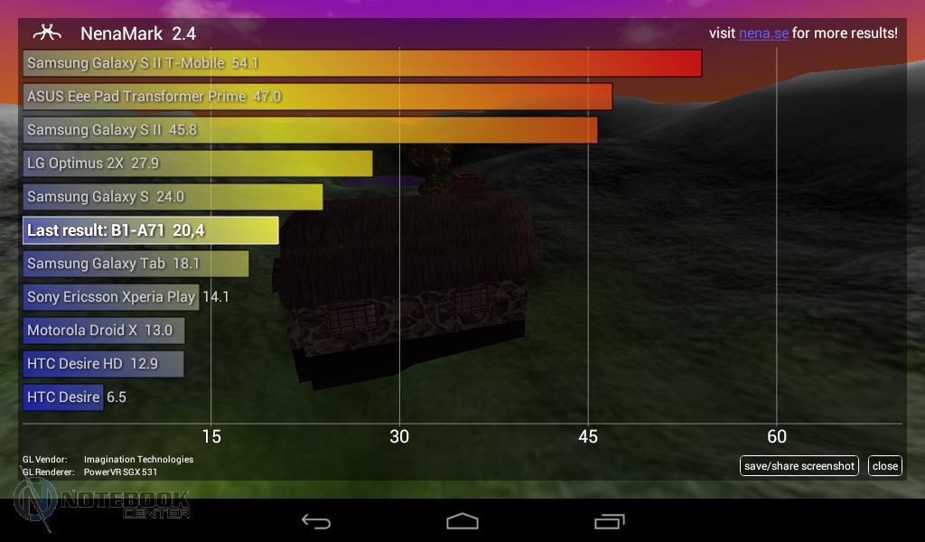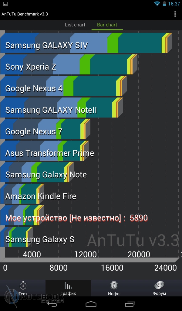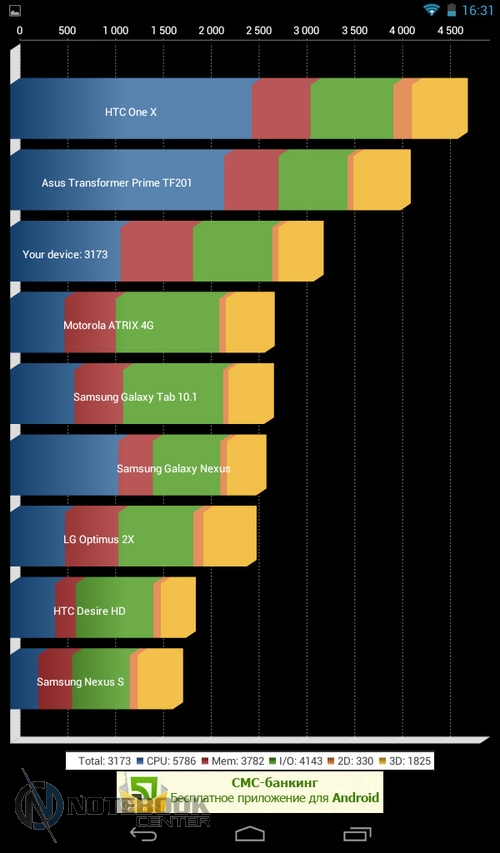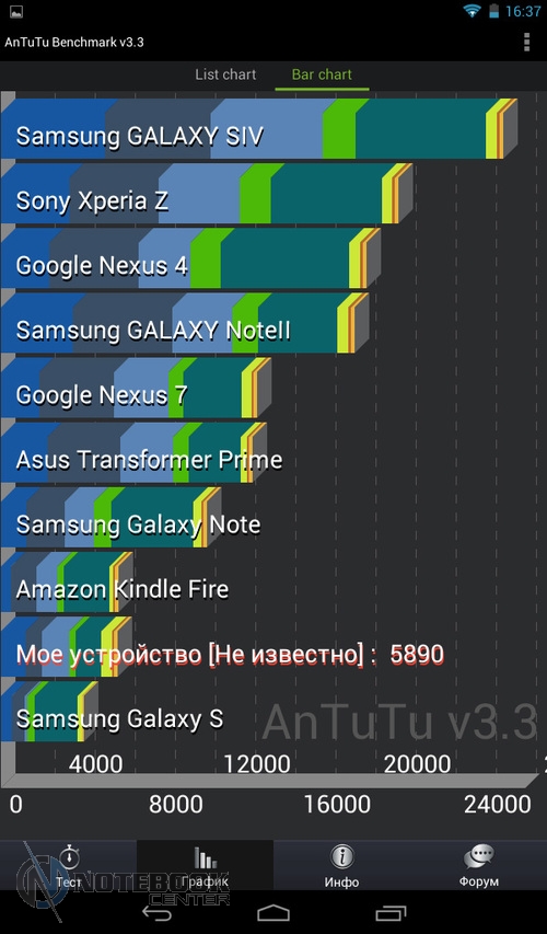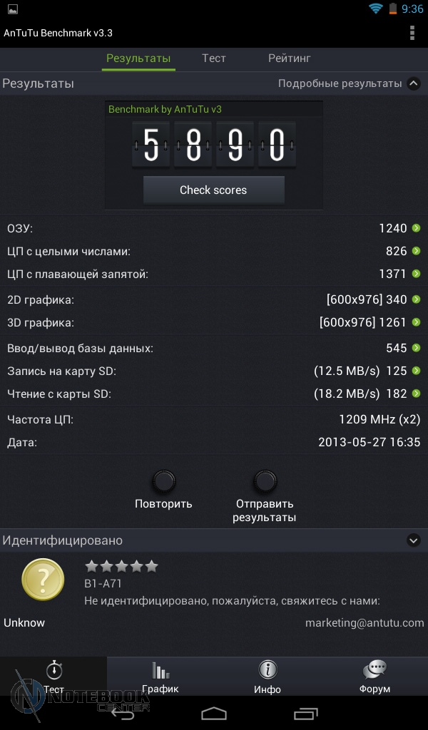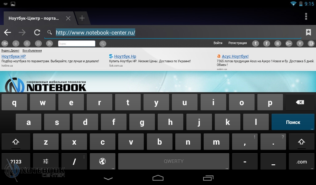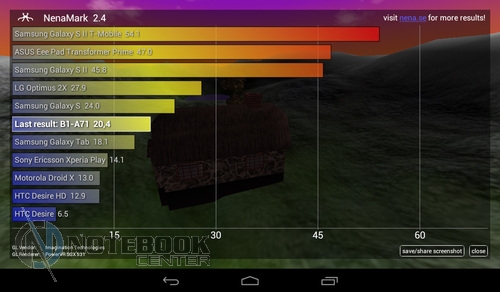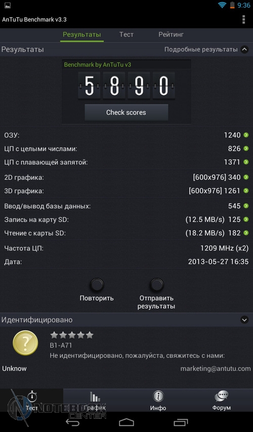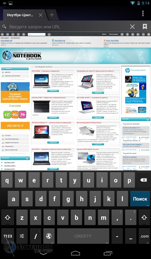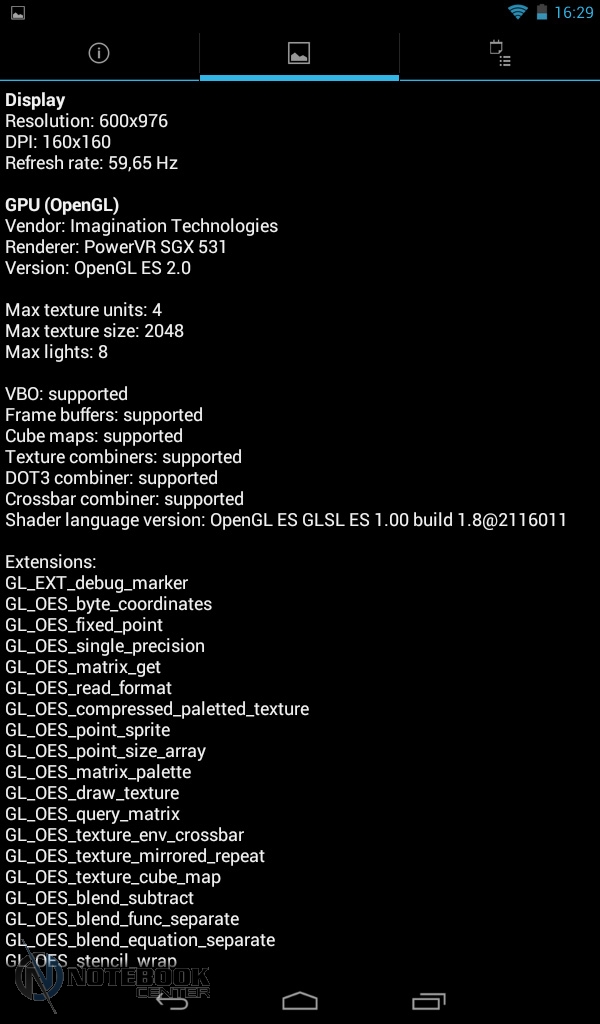 Комплект поставкиПланшет находится в картонной коробке, где дополнительно вложено краткое руководство пользователя, а также сведения о продукции и технике безопасности. Кроме того, в комплекте предусмотрен блок питания с вилкой евростандарта и переходник Micro-USB-USB. ДизайнВнешний вид планшета запоминающийся. Верхняя и нижняя панели имеют черную расцветку, которая сочетается с ярко-синей окантовкой по периметру корпуса. Нижний левый угол рамки дисплея также синий, на нем можно увидеть надпись ICONIA. Если рассмотреть планшет снизу, видно, что в центре производители расположили свой логотип, а ниже – название модели и краткую информацию с указанием страны-производителя. Также на нижней панели также есть решетка, за которой спрятан динамик. Вообще, держать ICONIA B1 удобно, возможно потому, что задняя крышка не плоская, а двухуровневая. Более того, все торцы и панели гладкие, незаостренные. Глянец, использованный в корпусе, смотрится очень красиво, до тех пор, пока не начнешь пользоваться гаджетом. Тогда он сильно залапывается, и его надо периодически протирать. Не совсем приятно видеть, как прогибается пластик и скрипит корпус в нижней части. Также при надавливании сзади на поверхности дисплея видны разводы. Конечно, в этом отношении планшет уступает конкурентам, например, Google Nexus 7. Зато вес устройства 320 граммов, как и размеры 197.4x128.5x11.3 мм совсем небольшие, что позволит, не задумываясь, носить Acer ICONIA B1 с собой постоянно. Дисплей, звук, веб-камераВ планшете установлен емкостный сенсорный дисплей с размером по диагонали 7 дюймов и соотношением сторон 17:10. Разрешение экрана составляет 1024х600 точек (WSVGA) с плотностью 160 пикселей на дюйм. Ниже вы можете увидеть, как выглядят веб-страницы и иконки программ на ICONIA B1. Чтобы посмотреть интернет-сайты, лучше воспользоваться альбомной ориентацией страницы, так шрифт будет крупнее. Что касается приложений, то размеры иконок под стать пальцам, а название под ними легко читаемо. Яркость и контрастность данного экрана не слишком высокая, но ее хватит для работы в помещении и на улице, если привыкнуть к отражениям от глянцевой поверхности. Зато сочные цвета порадуют любителей игр и видео. Добавим, что горизонтальные углы обзора TN-дисплея более стабильны, чем вертикальные, но в целом вы сможете посмотреть фотографии в небольшой компании. Чтобы проверить, на какое количество одновременных касаний реагирует дисплей Acer ICONIA B1, было запущено приложение MultiTouch Tester. В результате мы увидели, что экран планшета поддерживает пятипальцевый мультитач, что подтверждается соответствующим скриншотом. С уверенностью можно сказать, что звук, воспроизводимый планшетом, на удивление громкий, чистый и даже немного объемный. Правда, в первую очередь слышны высокие частоты, иногда через них прорываются низкие. Учитывая, что в планшете всего один динамик, качество акустики держится на весьма приличном уровне. Кстати, на максимальной громкости практически не слышно хрипов, что является еще одним плюсом. Наверное, этого должно хватить для просмотра фильмов. В противном случае, особенно для прослушивания музыки, стоит подключить наушники. Веб-камера находится на рамке дисплея. Только она занимает место не в центре, а в правом верхнем углу. Если вы собираетесь часто общаться по Skype, вам придется привыкать располагаться перед объе