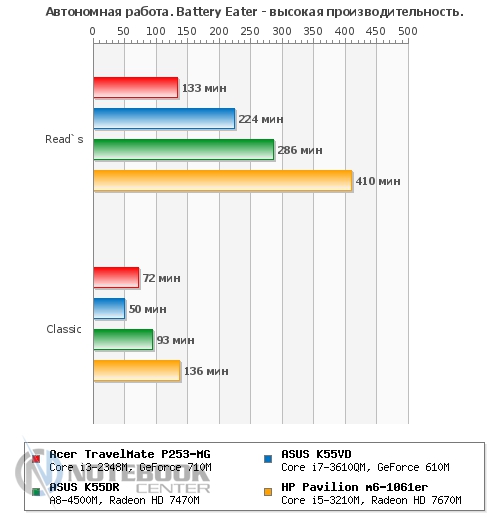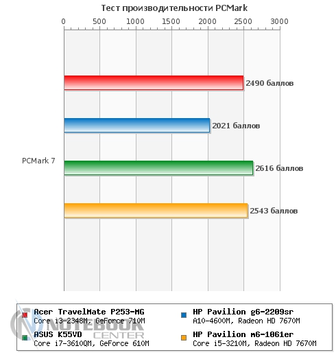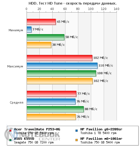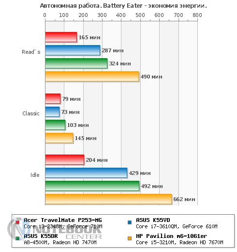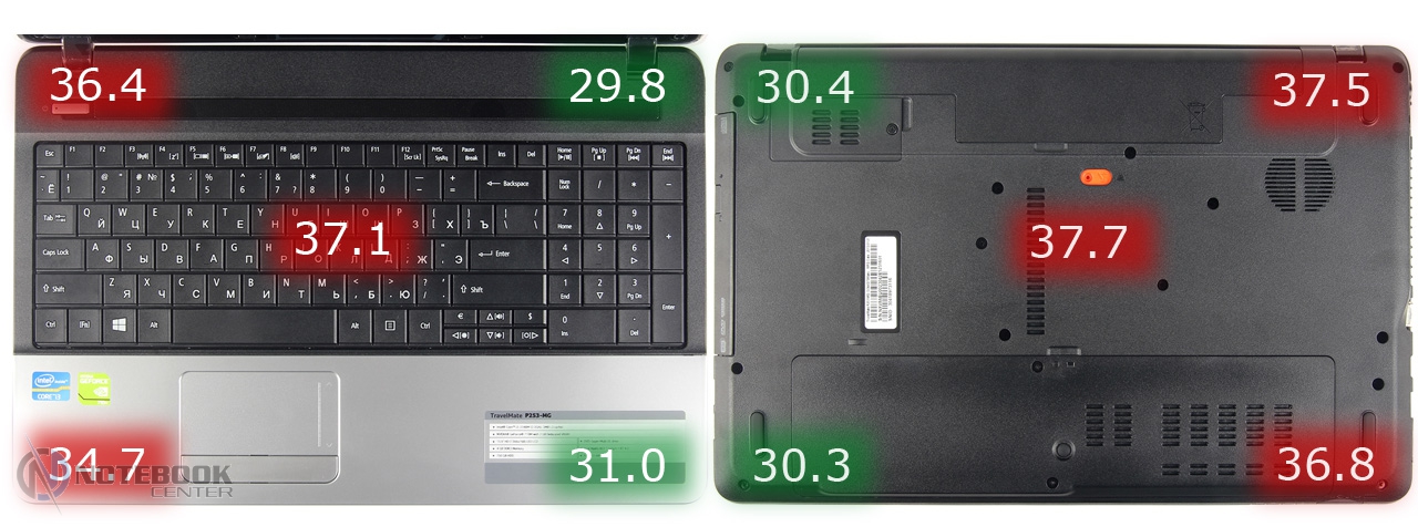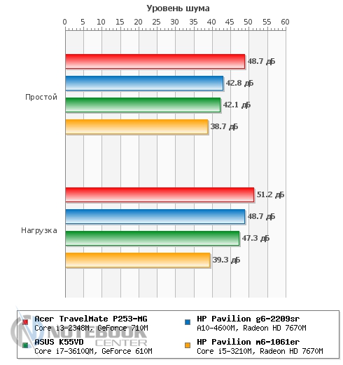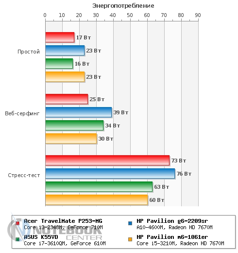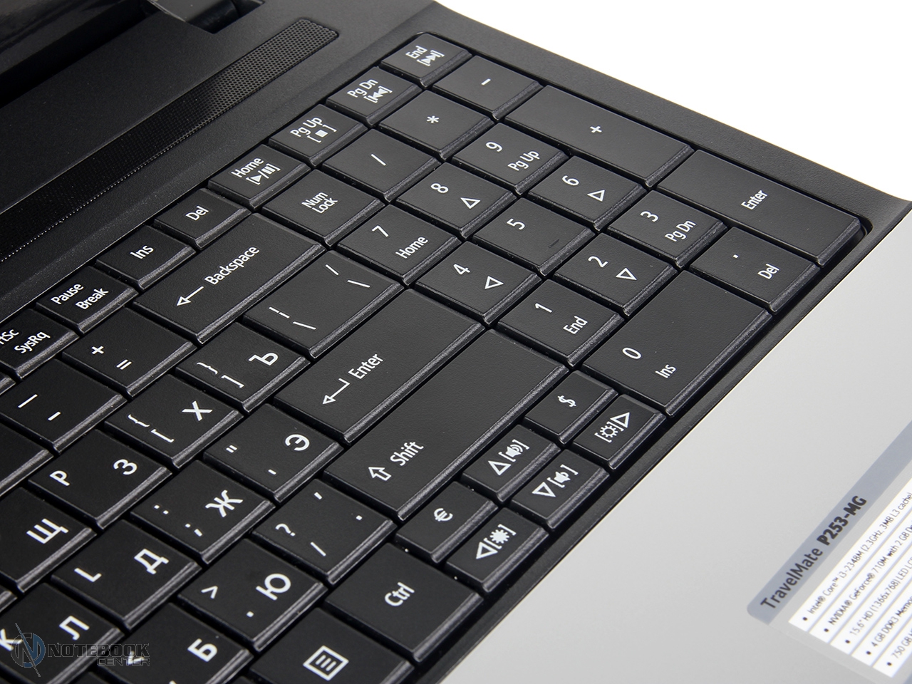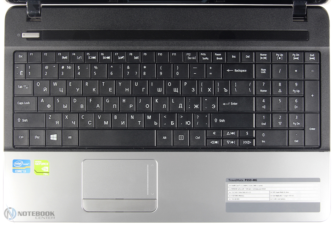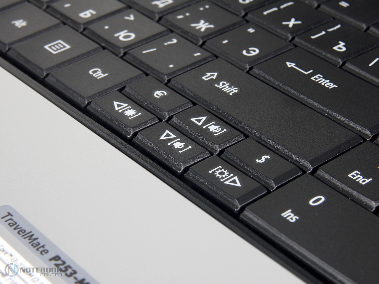 Комплект поставкиВ коробке находился ноутбук Acer TravelMate P253-MG, краткое руководство пользователя, лицензионное соглашение, диск с программным обеспечением, 6-секционная литий-ионная батарея и 65-ваттный блок питания. В целом, все, что нужно для начала работы и настройки нашего ноутбука мы нашли в комплекте поставки. Не богато, но напомним вам, что это бюджетная модель. ![]() ДизайнДизайнерам компании Acer, по-видимому, очень нравится блеск глянца, так как в ассортименте компании довольно большое количество моделей обладающих глянцевыми поверхностями. Смотрится глянец конечно красиво, но только пока на нем нет отпечатков пальцев и царапин. В целом глянцевая поверхность крышки ноутбука выглядит хорошо, но такое решение очень не практичное. ![]() Оригинально смотрится и логотип компании Acer, который находится на алюминиевой вставке с краю крышки ноутбука. Создается впечатление, что это отдельный модуль напоминающий флэшку. ![]() Кроме глянца, дизайнеры стремились украсить ноутбук и придать ему оригинальности, также используя комбинацию черного и серебристого цвета. Это прослеживается в подладонной поверхности, верхней крышке и петлях ноутбука. ![]() Что касается материалов отделки, то приятный на ощупь и не очень практичный глянец тут сочетается с грубым, но зато очень прочным и устойчивым к повреждениям пластиком. Последним отделаны боковые грани, обрамление клавиатуры и днище ноутбука. ![]() Несмотря на то, что пластик на днище смотрится немного грубо, в его качестве сомневаться не приходится. Также можно отметить и хорошую сборку ноутбука, тут вы не увидете прогибов и не услышите скрипов, что очень хорошо для бюджетной модели. ![]() Днище ноутбука выполнено из пластика. На нем можно обнаружить довольно большое количество вентиляционных отверстий и различных решеток. Кроме того, тут находится отсек для аккумулятора и отсек для быстрого доступа к внутренним компонентам. По углам расположены четыре резиновые ножки. ![]() По традиции, бюджетный ноутбук с такой диагональю и оптическим приводом не может весить мало. Но 2.45 кг для такого устройства это совсем не много и носить его в сумке не очень тяжело. А вот габариты Acer TravelMate P253, составляющие 381.6x253x33.2 мм, явно завышены. Дисплей, звук и веб-камераХороший качественный дисплей является редкостью для бюджетного ноутбука, к сожалению, наша модель не исключение. Дисплей диагональю 15.6-дюйма имеет разрешение 1366х768 пикселей и выполнен по бюджетной TN-технологии. Покрытие дисплея глянцевое, что усложняет работу за ноутбуком в солнечную погоду. Но опять же стоит вспомнить, что перед нами бюджетная модель, а матовые дисплеи это прерогатива бизнес-сегмента. ![]() Углы обзора стандартные, при отклонении дисплея от себя мы видим затемнение картинки, а при наклоне к себе – наоборот. Горизонтальные углы чуть лучше, например, просмотр фильма вдвоем будет достаточно комфортным. ![]() Динамики ноутбука расположены за декоративной решеткой в верхней части внутреннего пространства над клавиатурой. Откровенно говоря, качество акустики не поражает, даже учитывая бюджетность модели. Низких частот, конечно же, нет, но вот почему возникают проблемы со средними – осталось для нас загадкой. В целом звук можно оценить на четыре с минусом. ![]() ![]() Веб-камера расположена в рамке дисплея, рядом с ней располагается индикатор работы ка