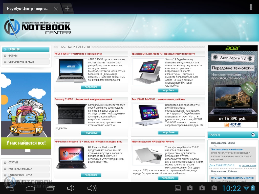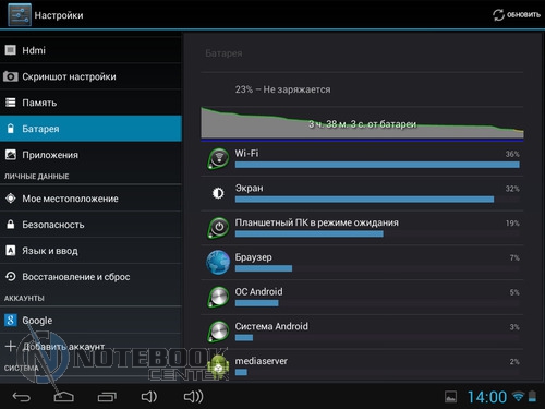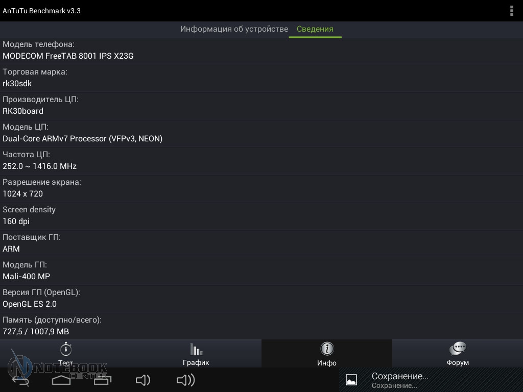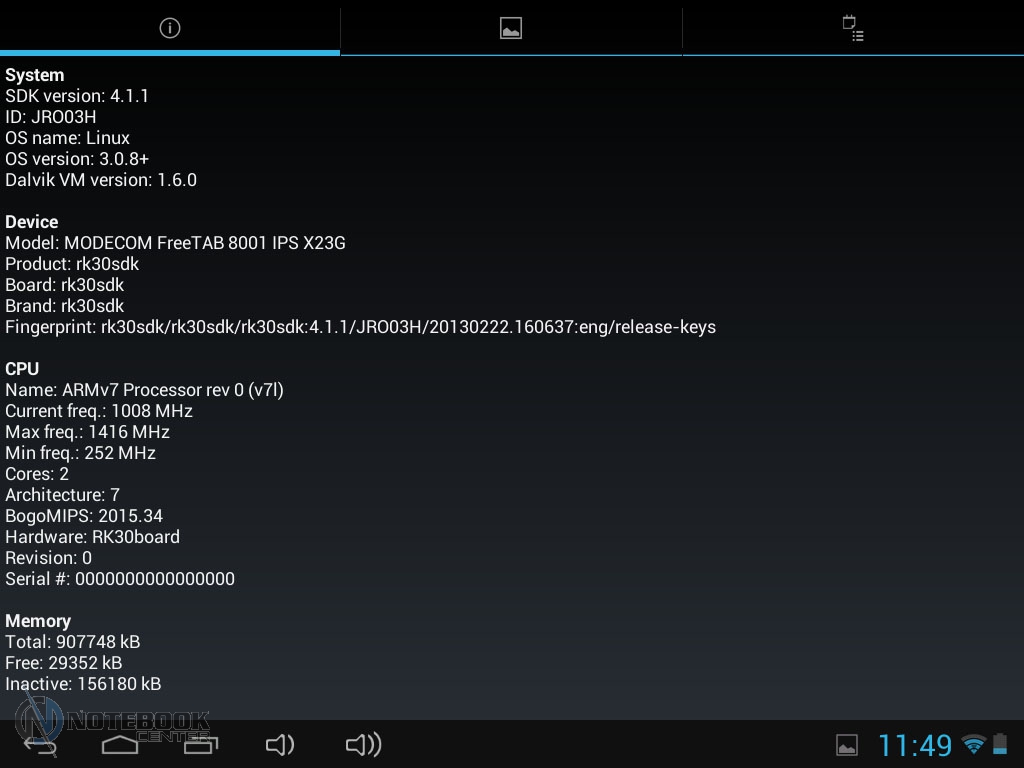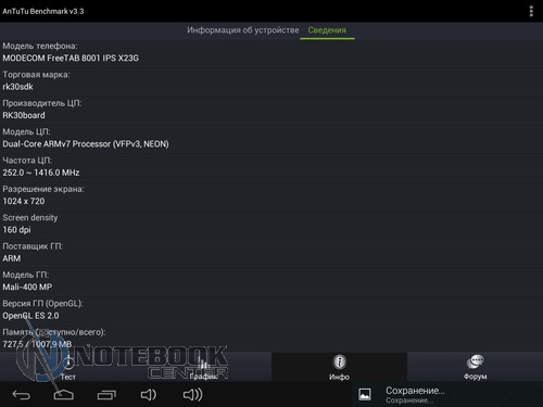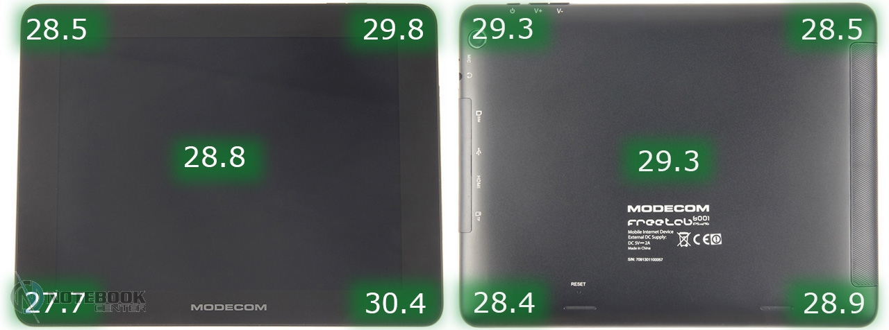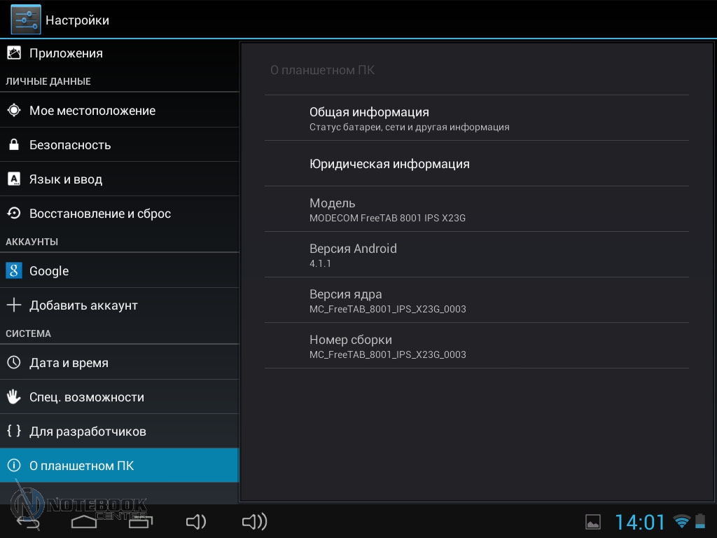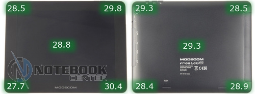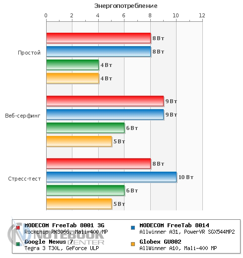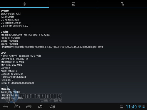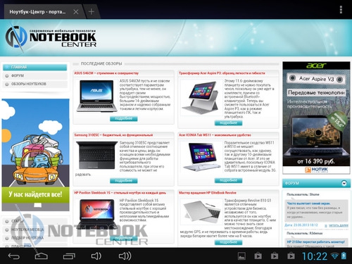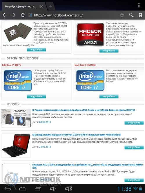 Комплект поставкиСтоит отметить, что польский производитель довольно много внимания уделяет комплектации своих устройств. В нашем случае, кроме самого планшета, в фирменной красочной коробке находились: руководство пользователя, провод USB-Micro-USB, краткое руководство пользователя, а также зарядное устройство. Кроме того, в комплекте подставки была и проводная гарнитура, это обусловлено тем, что планшет имеет встроенный 3G-модем и может использоваться как телефон. ![]() ДизайнДизайнеры постарались на славу, придав MODECOM FreeTAB 8001 3G вид дорогого и качественного устройства. Черный матовый корпус с одной стороны и глянцевая рамка дисплея с другой смотрятся довольно стильно. ![]() Что касается материалов исполнения, то тут мы имеем дело с довольно редко встречающимся в бюджетном секторе алюминием, из которого изготовлена задняя крышка планшета. Кроме того, в MODECOM FreeTAB 8001 3G используется и качественный пластик. Планшет не только выглядит красиво, но и является очень удобным в использовании устройством. Его очень приятно держать в руках благодаря малой толщине корпуса и закругленным краям. ![]() Наверное, никто не ожидает от малоизвестных производителей очень качественной продукции, но в нашем случае, тестируемое нами устройство под названием MODECOM FreeTAB 8001 3G поразило нас качеством сборки и используемыми материалами. Все детали плотно подогнаны, зазоров и щелей нет. ![]() К недостаткам можно отнести лишь то, что задняя поверхность планшета медленно, но уверено, собирает отпечатки пальцев, которые к счастью легко можно отчистить специальной тряпочкой. ![]() Как уже было сказано выше, планшет хоть и не обладает рекордно малыми габаритами, но все же он тоньше, чем большинство представленных на рынке планшетов бюджетного сегмента. В цифрах это выглядит следующим образом: 201х157х9.35 мм. Что касается веса, то он составляет 447 грамм, для сравнения 7-дюймовый Google Nexus 7 весит 340 грамм, но стоит учесть, что FreeTAB 8001 3G имеет алюминиевый корпус, который тяжелее чем пластик. ![]() ДисплейДиагональ дисплея этого устройства составляет 8 дюймов. Для тех, кому 7-дюймовый планшет кажется слишком компактным, такой вариант устройства будет в самый раз. Разрешение дисплея при этом составляет 1024х768 пикселей, не самое большое, но для такой диагонали вполне приемлемое. ![]() Планшет располагает защитным стеклом, которое предотвращает появление на дисплее механических повреждений, поэтому возможны небольшие блики. Также можно отметить недостаточную яркость, но это заметно только при сравнении с другим, более ярким планшетом. Так как матрица у этого планшета построена по IPS-технологии, то мы имеем отличные углы обзора во всех плоскостях, что для планшета немаловажно. ![]() Заниматься веб-серфингом на этом планшете довольно приятно, чувствуются измененные по сравнению с 7-дюймовыми устройствами размеры, но вот увеличенное разрешение тут явно было бы не лишним. Чуть ниже вы можете увидеть примеры просмотра веб-страниц в альбомной и книжной ориентации. ![]() ![]() Что касается многопальцевые жестов, то дисплей поддерживает до пяти одновременных касаний. Чтобы это проверить мы воспользовались утилитой MultiTouch Tester. ![]() Конечно, этот планшет очень хорош, но вот мультимедийная составляющая подкачала. Нет, конечно, звук воспроизводится и довольно неплохо как для планшета, но громкости явно маловато. 