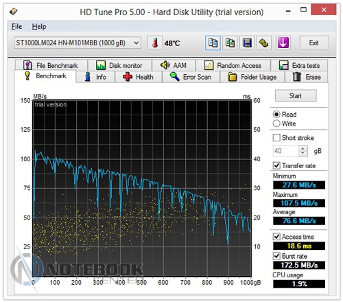 Комплект поставкиПоскольку перед нами далеко не бюджетная модель, то и комплект поставки у этой модели соответствующий. Кроме самого ноутбука он включает такие необходимые для работы вещи как аккумулятор и блок питания. Также в комплекте поставки был внешний сабвуфер, которым комплектуются все модели N-серии, и набор документации, включающий гарантийный талон, руководство Windows 8, руководство пользователя и диск с драйверами. ![]() ДизайнASUS N76VJ выглядит монументально и, по меньшей мере, внушает доверие. Увидев такой ноутбук, сразу становится понятно, что он относится к недешевому сегменту и обладает хорошими мультимедийными качествами. Дизайн ASUS N76VJ отличается сдержанным, но одновременно с этим имиджевым видом, его нельзя назвать скучным или броским, все выглядит, так как должно выглядеть. Из оригинальных решений можно выделить оформление верхней части рабочей поверхности возле динамиков, а также белый подсвечиваемый логотип фирмы ASUS на фоне темной крышки. Что касается перфорации возле динамиков, то она выполнена в концентрическом стиле и занимает место не только возле динамиков, но и практически на всех верхней части внутреннего пространства – смотрится оригинально и эксклюзивно. ![]() ![]() Также можно отметить и оформление клавиатуры, которая отдаленно напоминает «яблочную». Верхняя крышка, внутренне рабочее пространство и боковые грани изготовлен из алюминия, а днище ноутбука – пластика. К качеству сборки и материалам нет никаких претензий, ведь это один из козырей компании ASUS и линейки ноутбуков N серии в частности. Хочется отметить практичные поверхности ноутбука, во-первых, тут отсутствует глянец, который сильно загрязняется в процессе работы за ноутбуком, а во-вторых, алюминий не подвержен стиранию со временем, как это часто случается с пластиком. ![]() Днище, как впрочем, и весь ноутбук, весьма массивное. Как уже было написано выше оно пластиковое, но никаких прогибов и скрипов тут, к счастью, нет. Здесь можно увидеть два отсека: в одном поменьше стоит литий-ионная батарея, сняв крышку второго можно получить доступ к таким внутренним компонентам как память и накопители. ![]() ASUS N76VJ легко открывается одной рукой, так как основание ноутбука довольно тяжелое, к слову сказать, общий вес ноутбука составляет 3.4 кг. Размеры ASUS N76VJ тоже немаленькие – 415x280x33 мм, но это вполне приемлемые цифры для такого типа ноутбуков, учитывая, что ASUS N76VJ скорей всего займет стационарное положение у вас дома или на работе. ![]() Дисплей, звук и веб-камераПеред нами большой 17.3-дюймовый дисплей с разрешением 1600х9000 пикселей. Такая диагональ и разрешение позволяют комфортно работать за ноутбуком с любыми приложениями. Матрица TN+film конечно не идет в сравнение с более бюджетными аналогами, но все-таки она немного уступает по качеству моделям, выполненным по технологии IPS и PLS. Цветопередача и контрастность находятся на хорошем уровне, черный цвет тут выглядит по-настоящему черным, а не серым или фиолетовым. ![]() Углы обзора позволяют спокойно смотреть фильм на ноутбуке вдвоем. Как и у большинства матриц, горизонтальные углы чуть хуже, чем вертикальные. В целом играть в игры, смотреть фильмы или работать с документацией за этим ноутбуков будет очень удобно. ![]() ASUS N76VJ продолжатель традиций мультимедийной линейки ASUS N-серии, он обладает отменными динамиками, котор