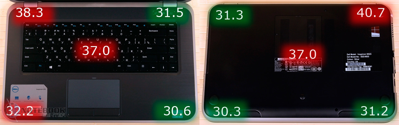 Комплект поставкиВ комплект поставки входит, непосредственно, сам ноутбук Dell Inspiron 5523, адаптер питания, а также необходимая документация. ![]() ДизайнКорпус Dell Inspiron 5523 выполнен из алюминия. Разумеется, за счет этого лэптоп смотрится внешне очень дорого и респектабельно. Наряду с отделкой крышки из шлифованного алюминия, тонированного в темно-серый цвет, рамка по краю корпуса все же пластиковая, однако это абсолютно не портит впечатления. Что касается выбора цвета корпуса, то здесь его просто нет. Ультрабук доступен лишь в серебристом исполнении. К слову, комплектации без сенсорного дисплея могут быть еще и красного цвета для любителей всего яркого и неординарного. ![]() 15-дюймовый экран от края до края покрыт стеклом Corning Gorilla, которое защищает его от царапин. Рабочая поверхность аналогична с крышкой как по цвету, так и по материалу. Клавиатура выглядит компактно и аккуратно, кроме того, приятно радует достаточно большой матовый тачпад с четко выделенными границами. Днище данной модели выполнено из черного пластика. Здесь можно увидеть маленькую крышку, сняв которую можно получить доступ к слотам памяти. Кроме того, на дне имеются вентиляционные отверстия и четыре резиновые ножки, которые надежно фиксируют ноутбук на скользких поверхностях. ![]() В целом, внешний вид ультрабука Dell Inspiron 5523 производит очень благоприятное впечатление: его дизайн достаточно универсален, подходящий как для бизнесменов и просто деловых людей, так и для молодежи, для которой на сегодняшний день мобильность – превыше всего. Не возникает вопросов и по качеству сборки конструкции: все надежно закреплено, крышка открывается в меру легко, шарниры крепко зафиксированы, не шатаются и не прогибаются. ![]() Что касается габаритов гаджета, то они составляют 382×250×23 мм, при этом вес равен 2.4 кг. ![]() Дисплей, звук и веб-камераМодель Dell Inspiron 5523 оснащена 15.6-дюймовым дисплеем с разрешением 1366×768 пикселей (16:9). Разрешение достаточно стандартное, однако в этой модели хотелось бы видеть, скажем, Full HD. ![]() Углы обзора не поразили широтой, впрочем, ввиду того, что экран выполнен по технологии TN, этот факт достаточно предсказуем. Дисплей глянцевый, поэтому возможны блики, особенно в солнечную погоду. Небольшим недостатком также можно назвать и яркость экрана: даже на максимальном уровне картинки могут казаться тусклыми, однако при длительной работе глаза быстро привыкают. ![]() Учитывая то, что экран тестируемой нами модели сенсорный, вполне логично, что от края до края он покрыт стеклом для дополнительной защиты. Кроме того, отдавая предпочтение сенсорному ноутбуку, предполагаемый покупатель понимает, что дисплей при этом будет все время нуждаться в очищении от отпечатков пальцев. Если рассматривать экран как еще одно устройство ввода, то важно заметить, что с этой ролью он справляется на отлично. Отклик достаточно быстрый, необходимости кликать несколько раз не возникает, работа происходит без подвисаний и торможений. ![]() Над дисплеем имеется встроенная веб-камера с разрешением 1 Мп и два направленных цифровых микрофона. Разумеется, особо качественных снимков с помощью этой камеры вы не добьетесь, но провести видеоконференцию или пообщаться в Skype, как говорится, всегда пожалуйста. Ниже вы можете посмотреть возможности веб-камеры Dell Inspiron 5523. ![]() ![]() Акустика ноутбука представлена