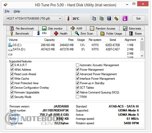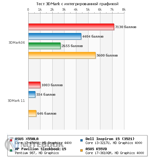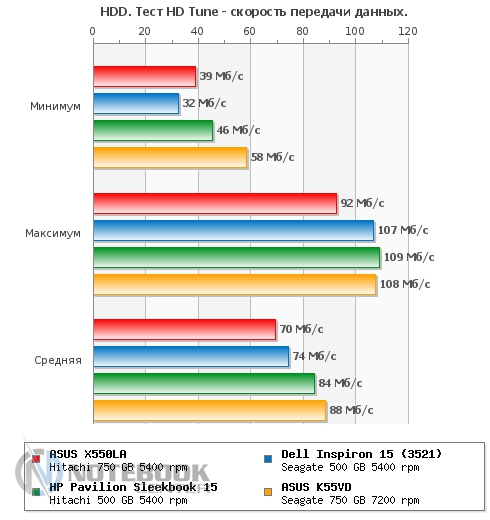 Комплект поставкиИногда к нам на обзор попадают так называемые семплы. Пришедший на тестирование ASUS X550LA, является именно таким экземпляром, поэтому кроме самого ноутбука, батареи и блока питания в комплекте поставки больше ничего не было. Модели, которые официально поступят в продажу, будут также комплектоваться и набором соответствующей документации. ДизайнВнешний вид этой модели выглядит довольно интересно и оригинально. Начнем с крышки ноутбука, это, пожалуй, самая стильная вещь в данном гаджете. Внешне она напоминает крышку ASUS ZENBOOK, именно такого сравнения добивались дизайнеры. Отличить крышку ASUS X550LA от оригинала на расстоянии полуметра под определенными углами будет довольно тяжело, даже несмотря на разницу в материале отделки, в нашем случае это текстурированный пластик, а у ZENBOOK – алюминий. ![]() Что касается материалов отделки, то кроме крышки ноутбука, о которой шла речь выше, из пластика изготовлена также и остальная часть ноутбука: днище, подложка клавиатуры, рамка дисплея, боковые грани и подладонная поверхность. Единственным отличием является их различная текстура. Так, к примеру, подладонная поверхность имеет очень мелкую, но все же заметную текстуру, а подложка клавиатуры абсолютно гладкая, к тому же на последней виден рисунок в виде мелких точек. Последнее напоминает оформление рабочей поверхности мультимедийных ноутбуков ASUS N-серии. ![]() Днище ноутбука изготовлено из более грубого пластика, нежели рабочая поверхность, впрочем, он также довольно качественный и хорошо собран. Сразу бросается в глаза не очень большое количество вентиляционных отверстий, но учитывая энергоэффективные компоненты, возможно, много их и не требуется. Для быстрого доступа к этим самым компонентам на днище ASUS X550LA предусмотрен отсек. Чтобы, к примеру, заменить планку памяти, потребуется всего лишь открутить два винта. Также на днище имеется отсек для батареи. ![]() Основной козырь ASUS X550LA проявляется в его размерах, а если быть более точным – в его толщине, которая составляет 25 мм в самом тонком месте и 31.5 мм в самом толстом. Основными конкурентами этого ноутбука можно назвать Pavilion Sleekbook 15 и Dell Inspiron 15z. Что касается веса, то тут ASUS X550LA не особо отличается от обычных, не тонких бюджетников – 2.23 кг. ![]() Дисплей, звук и веб-камераКрасивый с виду, производительный внутри, казалось бы, что может «испортить» этот ноутбук... Как выяснилось, ахиллесовой пятой ASUS X550LA стала матрица Samsung 156AT20-P02. Ее диагональ составляет 15.6-дюйма, а разрешение 1366х768 пикселей, все более чем стандартно. Только вот выполнена она по технологии TN, впрочем, это свойственно доступным ноутбукам. ![]() Больше всего нареканий дисплей вызывает из-за своих слабых углов обзора, к сожалению, это встречается на большинстве ноутбуков, и не только доступных, но и вполне дорогих. Для просмотра фильма вдвоем этот дисплей не очень подойдет, а вот работать за ним одному человеку будет вполне комфортно, лишь изредка пройдется подстраивать углы наклона. ![]() Также не добавляет удобства работы за ноутбуком и глянцевая поверхность дисплея. Так, к примеру, в яркую солнечную погоду вы, скорее всего, будете видеть свое отражение, а не нужную вам «картинку». Этот ноутбук не относится к категории мультимедийных, поэтому акустика здесь ограничивается двумя встроенными динамиками. Их звучание находится на ср
