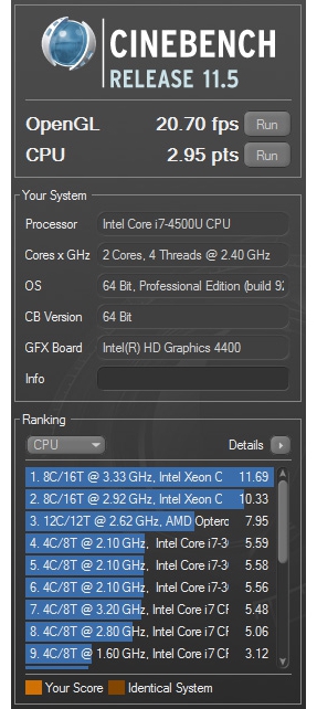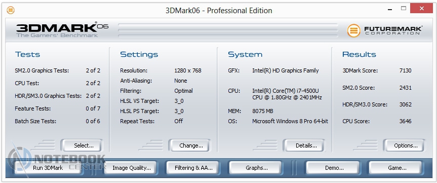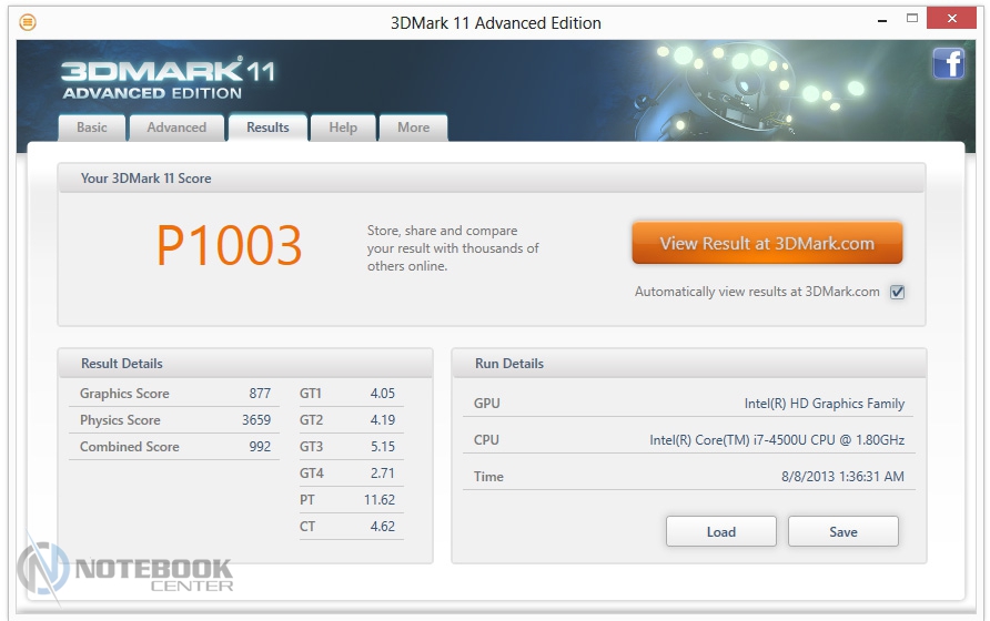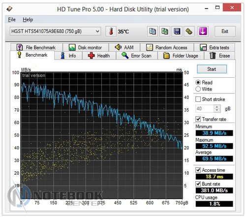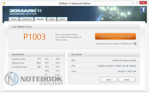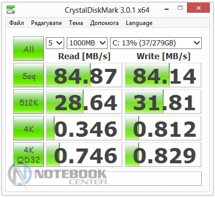 Запустив на ноутбуке Furmark и стресс-тест AIDA мы нагрели внутренние компоненты ноутбука и замерили температурные показатели корпуса еще раз. Мы получили следующие показатели: минимальная температура на поверхностях – 31.2°С, максимальная – 36.8°С. Можно отметить, что работать за таким ноутбуком вполне комфортно даже при интенсивной нагрузке.