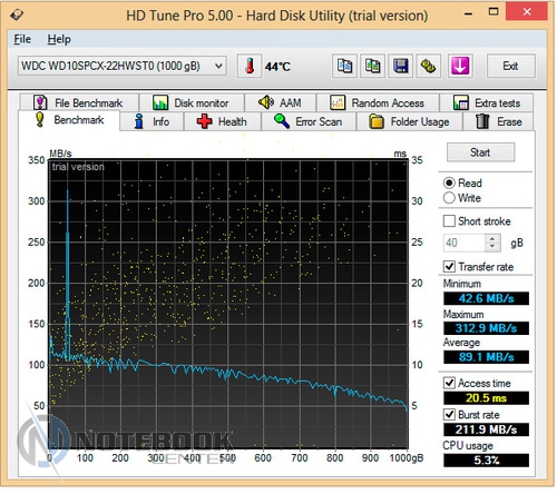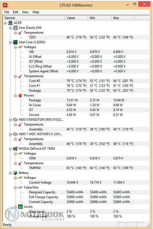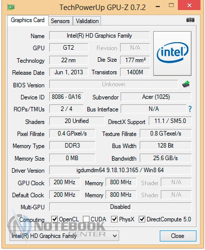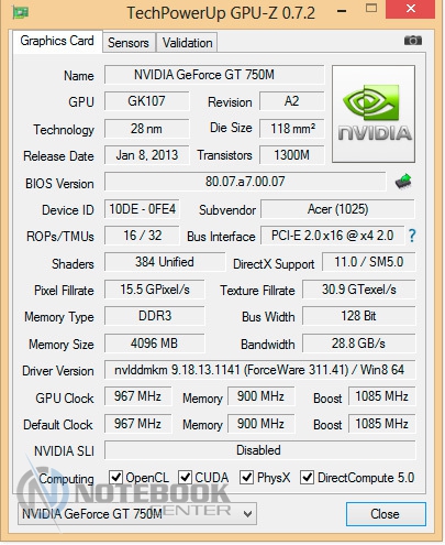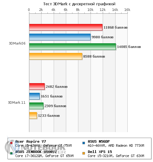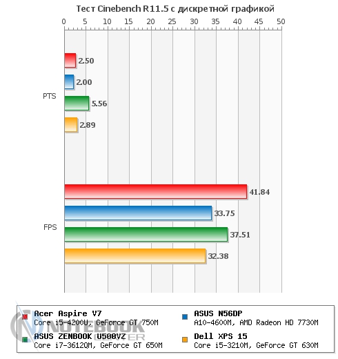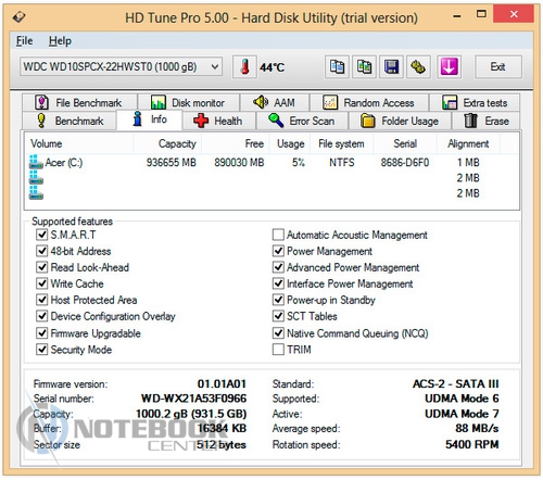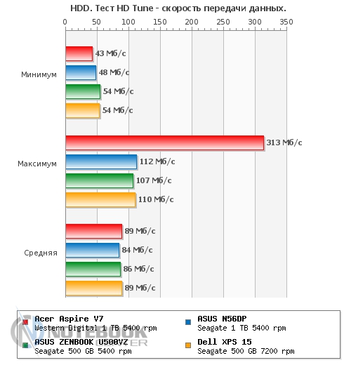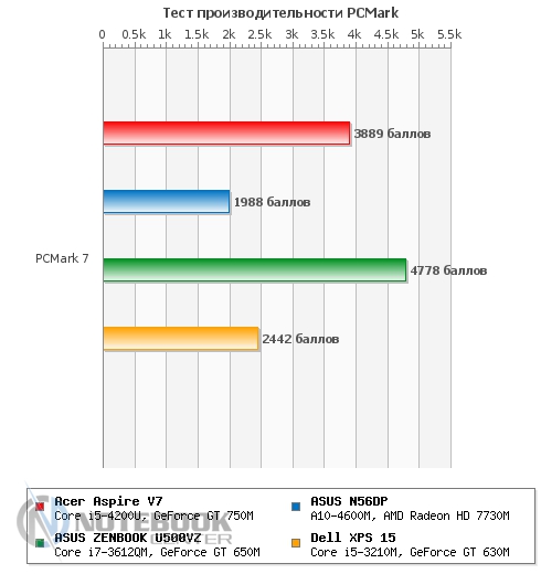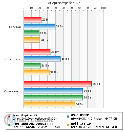 Комплект поставкиВ комплект поставки данного ноутбука вошли: собственно, сам ноутбук со встроенной батареей, адаптер питания, необходимая документация. Данный набор является минимальным, однако для ознакомления с ультрабуком и начала работы с ним этого будет достаточно. ![]() ДизайнОднозначно дизайн Acer Aspire V7-582PG не оставит никого равнодушным. Стиль этой модели классически сдержанный. Такой лэптоп приятно держать в руках, не говоря уже о его эксплуатации. Из материалов в отделке ноутбука преобладает шлифованный алюминий темно-серого цвета. Качество сборки просто отменное, ничего нигде не прогибается, все детали прочно закреплены. Крышка гаджета открывается в меру легко, однако одной рукой выполнить данную операцию вряд ли возможно. Петли держат дисплей весьма крепко, он не шатается даже при переноске в открытом состоянии. ![]() Дисплей полностью от края до края покрыт стеклом. Это решение, по большому счету, весьма логичное, учитывая, что экран сенсорный и будет использоваться в роли дополнительного устройства ввода. Рабочая поверхность гаджета по материалам и расцветке идентична с крышкой. Клавиатура черная, сами клавиши квадратные, небольшого размера, шероховатые. Однозначно бросается в глаза весьма большой тачпад, смещенный влево. Днище у Acer Aspire V7-582PG пластиковое, бархатистое на ощупь. Для того чтобы получить доступ к заменяемым компонентам, нужно открутить все винтики находящиеся здесь и аккуратно снять крышку. Там же расположены вентиляционные отверстия, а также пять ножек для оптимальной фиксации лэптопа на скользких поверхностях. ![]() Ширина данной модели составляет 38 см, длина – 25 см, высота – 2-2.3 см, при этом вес равен 2.2 кг. ![]() Дисплей, звук и веб-камераТестируемая нами модель Acer Aspire V7-582PG имеет 15.6-дюймовую IPS-матрицу с разрешением 1920×1080 пикселей (Full HD). Экран ультрабука сенсорный, впрочем, сенсорная техника уже прочно закрепилась в нашей жизни, поэтому с каждым новым гаджетом такие решения воспринимаются все обыденнее. ![]() Углы обзора, несомненно, порадовали: за счет качественной матрицы искажений цветопередачи практически нет ни по горизонтали, ни по вертикали. Изображение получается ярким и сочным, а значит, качественный просмотр фильма вам гарантирован. За счет того, что дисплей глянцевый, в солнечную погоду он может немного бликовать. ![]() Как уже упоминалось, матрица лэптопа полностью покрыта стеклом, это верный ход, учитывая, что сам дисплей сенсорный. Однако из-за этого также стоит быть готовым к постоянному покрытию экрана следами от пальцев рук. Страшного в этом нет ничего – наличие салфетки быстро решит эту проблему. ![]() Остановимся немного на использовании сенсорного дисплея в качестве устройства ввода. По факту, делать это оказалось достаточно удобно: отклик быстрый, работает без торможений и зависаний. Вполне возможно, что через какое-то время работы на весу рука может устать, и вот тогда можно использовать традиционные средства ввода. Над дисплеем имеется веб-камера Crystal Eye HD с разрешением 1 Мп и встроенный микрофон. Разумеется, она не рассчитана на выполнение качественных снимков, однако для того, чтобы пообщаться в Skype, провести видеоконференцию и т.п., ее разрешения будет более чем достаточно. ![]() Ниже вы можете увидеть возможности веб-камеры. ![]() Акустика Acer Aspire V7-582PG представлена четырьмя динамиками с те