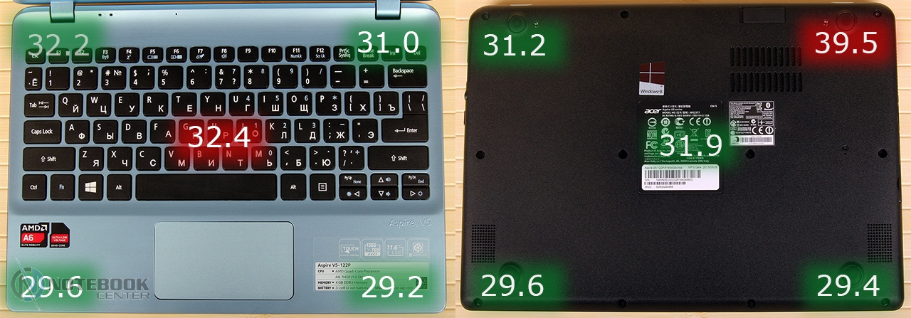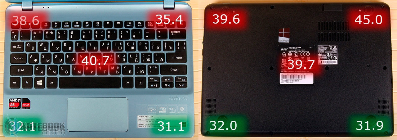 Комплект поставкиВ коробке, кроме самого ноутбука Acer Aspire V5-122P, можно найти: руководство пользователя, несколько тематических брошюр, небольшое зарядное устройство, напоминающее таковое от мобильного телефона, и фирменный кабель-преобразователь Acer с дополнительными разъемами для подключения. ![]() Дизайн11.6-дюймовый форм-фактор Aspire V5-122P предполагает компактность и минимализм, не говоря уже о небольшом весе, который должен быть характерным атрибутом всех небольших ноутбуков. Что интересно, V5-122P лишь немного не дотягивает до статуса ультрабука с точки зрения габаритов, превышая чуть больше одного миллиметра установленной величины в толщине. Общие параметры его корпуса составляют 289x206x21.2 мм, вес 1.38 кг. Легкий, тонкий, компактный и презентабельный – краткая характеристика внешнего вида Acer Aspire V5-122P. ![]() Корпус мобильного устройства отличается минимализмом – квадратная форма с чуть закругленными углами передает строгий стиль исполнения, не обещающий какой-либо утонченности. ![]() При производстве крышки и рабочей поверхности был использован пластик, внешне очень похожий на шлифованный алюминий. К сожалению, такая поверхность достаточно чувствительна к отпечаткам пальцев, однако, благодаря особому цвету – Icy Blue, что по-русски означает «холодный голубой» или попросту голубой металлик, они менее видны, так что ухаживать за Acer Aspire V5-122P не составит особого труда. ![]() В вопросе по качеству сборки и использованным материалам к компании Acer нет абсолютно никаких претензий, так как скрипы, зазоры и другие неприятные дефекты отсутствуют. Крышка ноутбука надежно крепится на двух петлях, не болтается, достаточно туго регулируется и неподвижно фиксируется в заданном положении. ![]() Днище пластиковое, с широкими резиновыми ножками в количестве четырех штук. Возле правого и левого торцов разместились два динамика, скрытых за решетками, а ближе к задней грани находится разъем для дополнительного аккумулятора. Картину днища завершают вентиляционные отверстия и две наклейки в центре с краткой информацией об устройстве. ![]() Дисплей, звук и веб-камераХотя Acer Aspire V5-122P позиционируется, как ультрапортативный ноутбук, он спокойно может соперничать с планшетами, так как оснащен сенсорным IPS-дисплеем с поддержкой технологии Multi-Touch. Экран демонстрирует мгновенный отклик и распознает одновременное касание десятью пальцами, благодаря чему очень комфортно управлять ноутбуком с предустановленной операционной системой Windows 8. Его размер составляет 11.6 дюймов, разрешение – 1366х768 пикселей. ![]() Нельзя с уверенностью сказать, что Aspire V5-122P идеально подходит для использования вне помещения, так как глянцевое покрытие экрана несколько усложняет работу, и в солнечную погоду цвета будут блеклыми, что, естественно, не добавляет комфорта. Однако в условиях домашнего/офисного использования качество картинки находится на хорошем уровне, цвета достаточно яркие, изображение контрастное. Такие характеристики доступны благодаря наличию собственной технологии компании Acer – CineCrystal. Как правило, глянцевые дисплеи CineCrystal демонстрируют лучшую контрастность и цветопередачу, что будет уместным для решения мультимедийных задач. Кстати, с этим 11.6-дюймовым ноутбуком очень комфортно смотреть медиафайлы и исследовать просторы интернета, так как он может предложить широкие уг