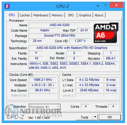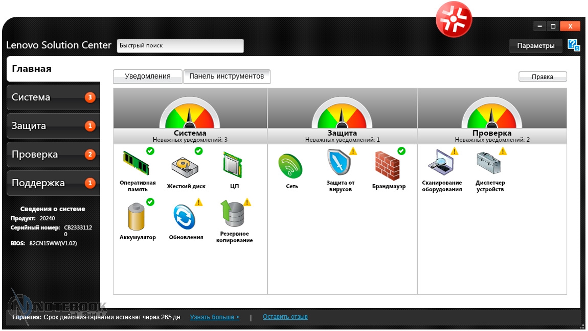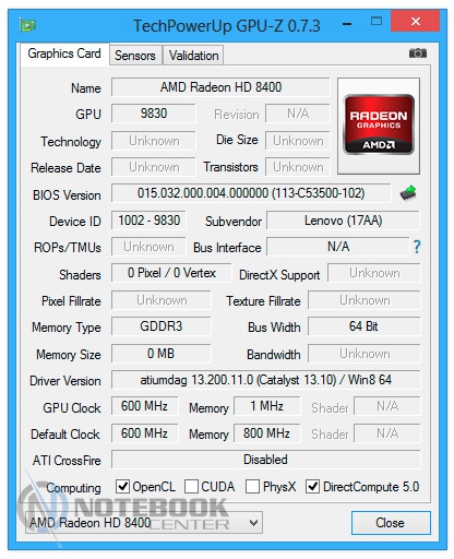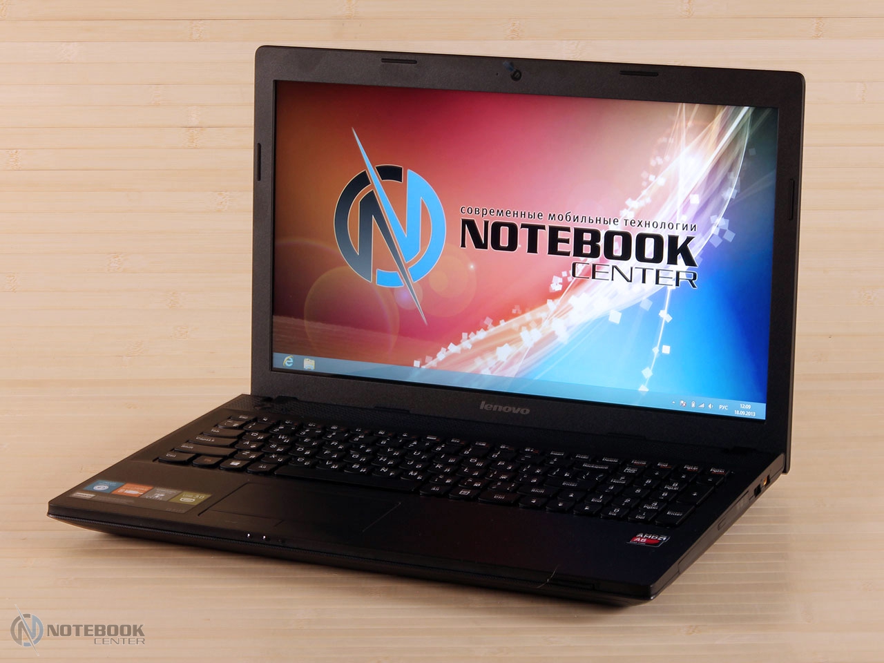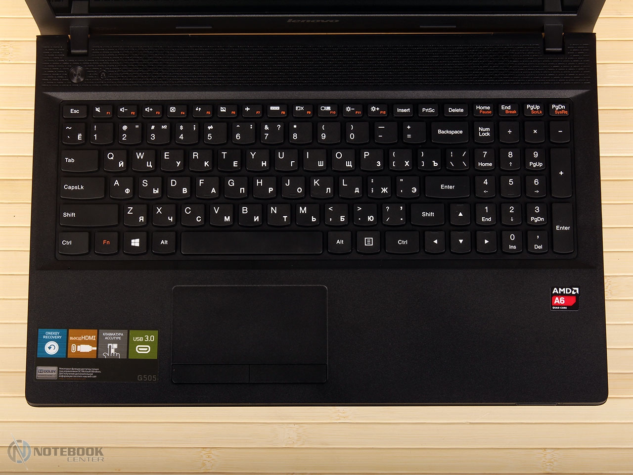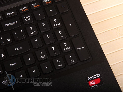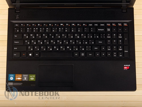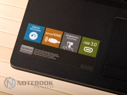 Комплект поставкиВ комплект поставки Lenovo G505A входит, разумеется, сам ноутбук, батарея, адаптер питания, а также необходимая документация. Таким образом, здесь присутствует минимальный набор, необходимый для того, чтобы начать полноценную работу с ноутбуком. ДизайнLenovo G505A выполнен без лишних изысков, дизайн его сдержан и лаконичен. Использующимся материалом, в данном случае, как внутри, так и снаружи, служит пластик, причем крышка еще и текстурированная. ![]() В правом верхнем углу крышки размещен логотип компании. Качество сборки хорошее, детали крепко закреплены, прогибов в корпусе мы не обнаружили. ![]() Крышка открывается в меру туго, но эту операцию можно выполнить и одной рукой. Максимальный угол раскрытия дисплея составляет примерно 120 градусов, так что лучше работать с этим ноутбуком за столом, а не в кресле, ведь тогда довольно тяжело будет подобрать удобное положение. ![]() Экран данной модели не новомодный сенсорный, здесь выдержана классика. Окантовкой служит черная матовая рамка комфортной ширины. Также здесь можно увидеть несколько резиновых ножек, равномерно раскиданных по периметру, служат они для защиты дисплея от соприкосновений с клавиатурой. Рабочая поверхность также выполнена из черного пластика. Она достаточно устойчивая к различного рода загрязнениям и незначительным повреждениям. Это не новомодный глянец, который царапается даже от простого протирания пыли. ![]() Днище не стало исключением: оно также черное, пластиковое и текстурированное. Получить доступ к заменяемым компонентам довольно трудно, здесь нет специальных отсеков для быстрого доступа. Придется варварски оторвать резиновые ножки, открутить спрятанные под ними винтики, и проверить, нет ли скрытых пластиковых ушек, которые в случае приложения чрезмерной физической силы можно оторвать. Там же можно увидеть два длинных вентиляционных отверстия, поэтому для наиболее оптимального теплоотвода лучше использовать ноутбук на твердой поверхности, а не в постели. ![]() Габариты лэптопа следующие: ширина его составляет 38 см, длина – 26 см, высота – 3.4 см, вес, в свою очередь, равен 2.6 кг. Дисплей, звук и веб-камераНовинка имеет 15.6-дюймовую матрицу с HD разрешением - 1366x768 пикселей и светодиодной подсветкой. В общем-то, разрешение достаточно распространенное среди дисплеев бюджетного сегмента. Яркость дисплея находится на среднем уровне, а вот контрастность слабовата – оттенки черного на нем выглядят темно-серыми. Окантовка дисплея выполнена из матового пластика и это очень практично, ведь на ней не будет видно ни мелких царапин, ни следов от отпечатков пальцев. ![]() Углы обзора не самые широкие, при отклонении дисплея происходит искажение цветов, кроме того, за счет глянцевого покрытия в солнечную погоду видны блики. ![]() Над экраном расположена веб-камера с разрешением 0.3 Мп, которая способна делать снимки с разрешением 640х480 пикселей. Она обеспечит комфортное общение в Skype, а вот для фотосъемки совсем не подойдет, и не только низкое разрешение будет этому виной. ![]() Цветопередача здесь тоже не на высоком уровне, фото выглядят тусклыми и неконтрастными. Рядом с объективом камеры расположился встроенный микрофон. На что способна веб-камера данного лэптопа вы можете увидеть ниже. ![]() ![]() Над зоной клавиатуры расположены два динамика. Они скрыты за декоративной реше