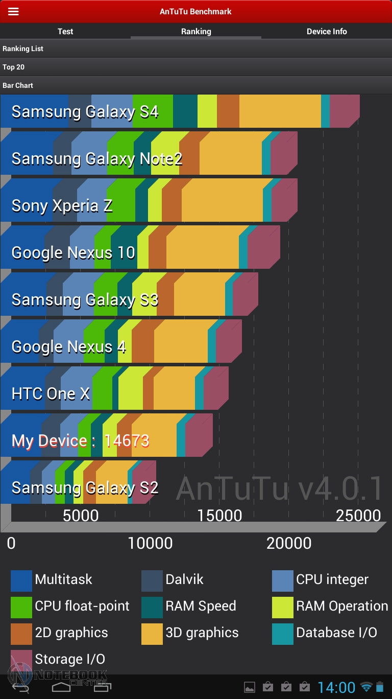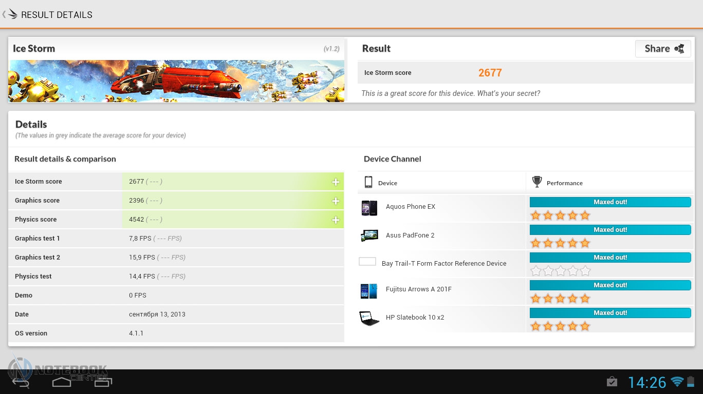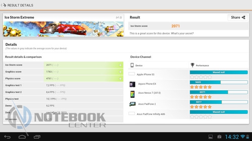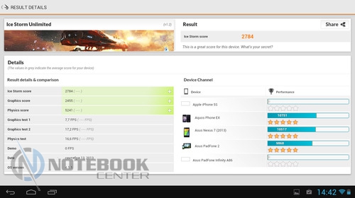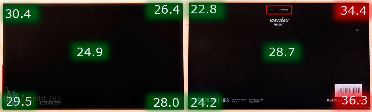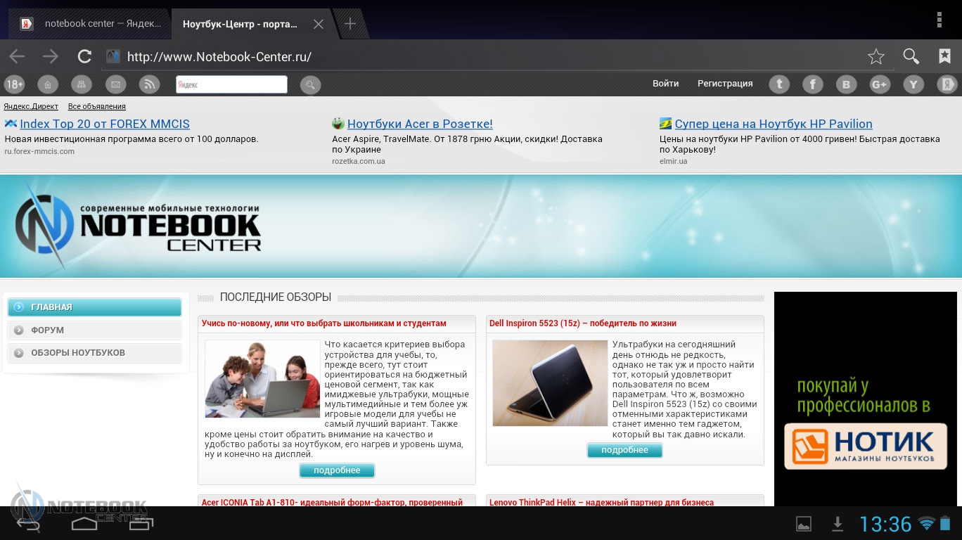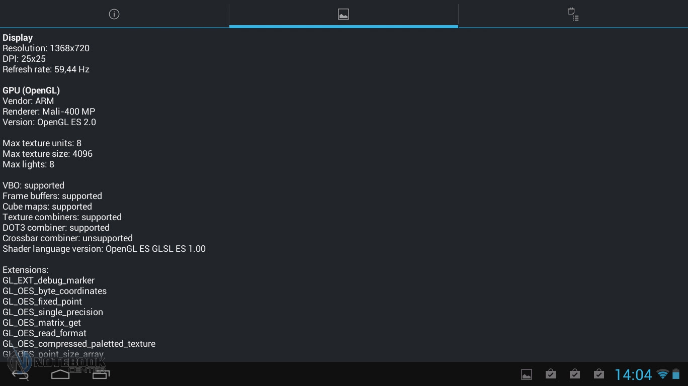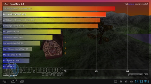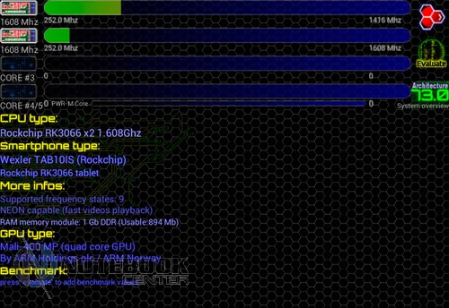 Комплект поставкиВ коробке мы нашли зарядное устройство и краткую инструкцию с гарантийным талоном на обратной стороне. Также в комплекте с планшетом WEXLER.TAB 10iS предусмотрен переходник USB/Micro-USB, предназначенный для обмена данными, например, с ноутбуком или телевизором. ![]() ДизайнЗа вытянутую прямоугольную форму корпуса и острые углы планшет WEXLER.TAB 10iS можно было бы назвать классическим и слишком строгим, если бы черный цвет не дополнялся ярко-красным. ![]() В такой расцветке выполнена правая и левая грани корпуса, а также окантовка основной камеры. Данное решение выглядит очень оригинально и совсем не агрессивно. Пластик, из которого сделан планшет довольно крепкий. ![]() Дисплей покрыт защитным стеклом, которое позволяет избежать повреждений. Здесь же можно увидеть фронтальную веб-камеру. ![]() На задней части устройства расположился логотип компании WEXLER, кнопка Reset, с размещенным рядом светодиодным индикатором заряда, а также информация о стоящей в устройстве батарее, объеме памяти и, конечно, название модели планшета. ![]() ![]() Нижняя поверхность планшета матовая, поэтому она не так сильно пачкается, как глянцевая сторона дисплея. Размеры гаджета составляют 268х168х11 мм, весит устройство 620 граммов. Конечно, это не самый компактный планшет, который нам доводилось видеть, однако, для ежедневного использования является довольно неплохим вариантом. ![]() Дисплей, звук, веб-камераWEXLER.TAB 10iS оснащается 10-дюймовым сенсорным TFT-дисплеем. Он емкостный, имеет разрешение 1366х768 пикселей и плотность 155 пикселей на дюйм. Это не слишком высокая плотность, но для работы и развлечений этого более чем достаточно. Кстати, Android-планшетов с таким разрешением совсем немного. ![]() Соотношение сторон экрана 16:9 позволит комфортно смотреть фильмы (имеется поддержка форматов WMV, RM, AVI, RMVB, 3GP, FLV, MP4, MPEG, MKV), а при широкой обзорности IPS-дисплея можно с не меньшим удовольствием и почитать, причем не только в одиночку, но и вдвоем. ![]() ![]() ![]() ![]() Стоит отметить и хороший уровень яркости, а также приличную цветопередачу. А вот контрастность не столь впечатляющая. Впрочем, это с лихвой компенсируется высокой чувствительность сенсорного дисплея. ![]() Во время выполнения традиционных жестов смахивания, перетаскивания или, например, масштабирования мы не заметили никаких задержек или отсутствия реакции на команды. Кстати, в ходе тестирования с помощью приложения MultiTouch Tester мы узнали, что дисплей планшета WEXLER.TAB 10iS может поддерживать пять одновременных нажатий. Скриншот программы располагается ниже. ![]() По всей видимости, вам не придется надолго расставаться с наушниками, поскольку акустика планшета слабовата и позволяет комфортно наслаждаться звуком только в тихой обстановке. Звук, выходящий через два встроенных динамика, расположенных по обе стороны устройства, сравнительно тихий, маловыразительный, с явным доминированием высоких частот. В то же время нельзя не отметить, что звучание чистое, без хрипов. ![]() В этом планшете предусмотрено две камеры. Для общения в Skype подойдет фронтальная с разрешением 0.3 Мп, а для фото и видео – основная 5-мегапиксельная с автофокусировкой. ![]() Нельзя сказать, что снимки с задней камеры получаются четкими и сочными, скорее они посредственные. Впрочем, согласитесь, что планшет не приобретается в качестве замены фотоаппарату, так что ожидать высокого