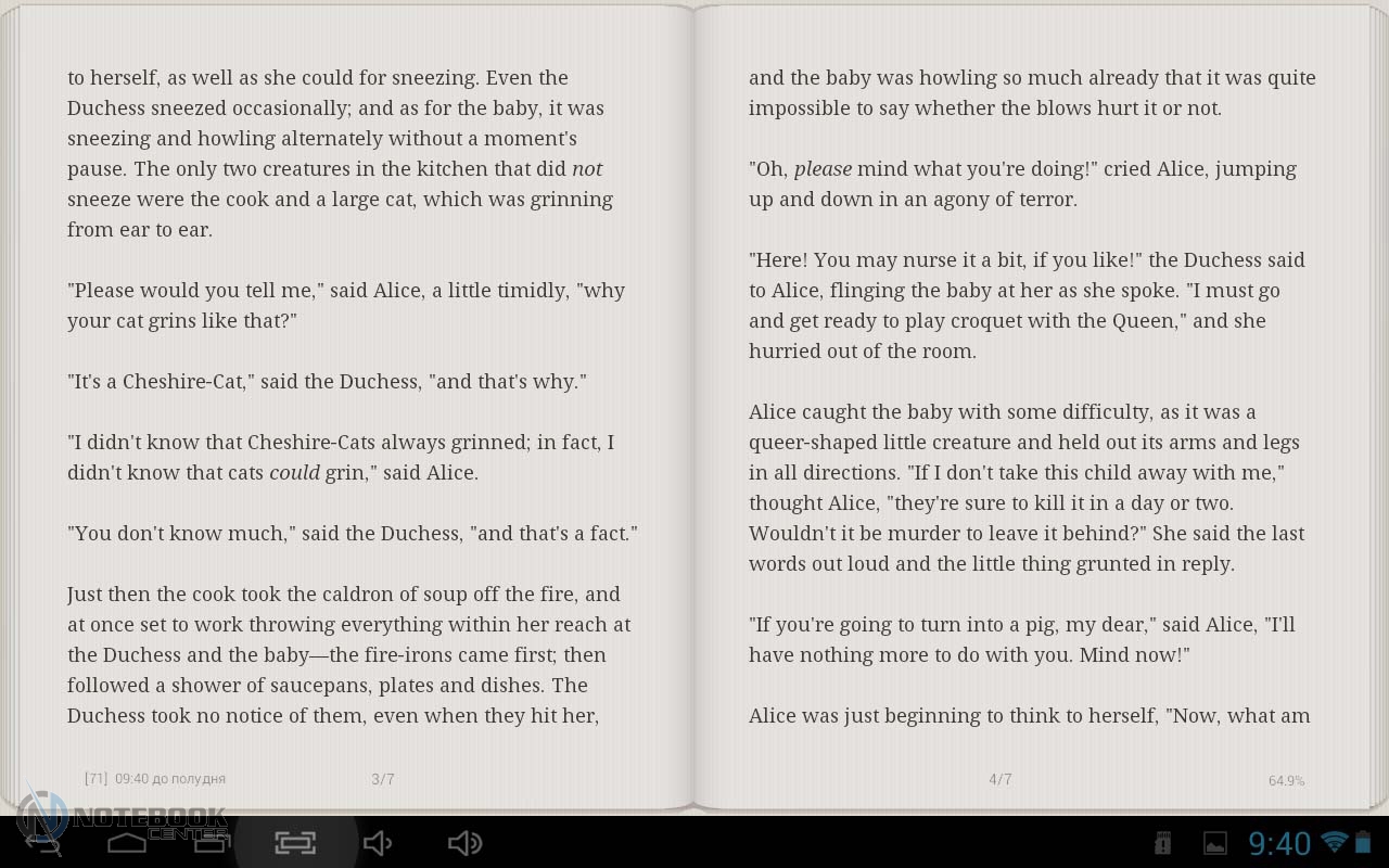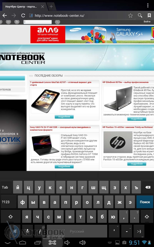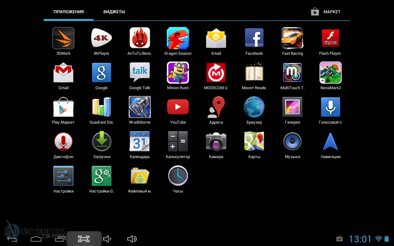 Комплект поставкиВ достаточно объемную коробку, кроме самого планшета, положили книжечки с инструкцией по эксплуатации на нескольких языках, провод OTG, блок зарядного устройства и кабель USB. ![]() ДизайнКорпус MODECOM FreeTAB 1004 IPS X4 выполнен из высококачественных материалов, которые достаточно устойчивы к повреждениям и царапинам. Так, дисплей и окружающая его рамка покрыты сплошным защитным стеклом, задняя панель – это комбинация пластика и алюминия, которые вследствие разного цветового оформления создают очень современный образ. В целом, несмотря на то, что форм-фактор устройства не самый компактный (диагональ дисплея составляет 10.1 дюймов), он не выглядит громоздким или массивным. Наоборот, такой планшет очень приятно держать в руках, и это ощущение возникает не только с позиции сбалансированности габаритов, но и с эстетической точки зрения – ведь здорово являться счастливым обладателем чего-то по-настоящему стоящего. ![]() В данном планшете от MODECOM в оформлении используются два цвета: серебристый и белый. На фронтальной стороне планшета физических и сенсорных кнопок нет, единственным дополнительным элементом здесь является глазок лицевой веб-камеры, расположенный на рамке дисплея. Задняя панель гаджета представляет собой алюминиевое покрытие с узкой пластиковой вставкой справа, где разместилась маркировка разъемов и кнопок. На практике крышка оказалась несколько скользковатой. Также сзади расположена основная веб-камера, а немного левее от нее две прорези, за которыми скрывается динамик. ![]() Что касается вопроса габаритов планшета, то здесь ситуация такова: вес устройства составляет 688 грамм, длина, ширина и толщина – 257x176x10.3 мм соответственно. Все в пределах разумного для такого форм-фактора. ![]() Дисплей, звук, веб-камераЕмкостный дисплей планшета FreeTAB 1004 IPS X4 имеет размеры 10.1 дюймов. Для защиты от повреждений и мелких царапин он покрыт прочным стеклом. Разрешение, которое предлагает данное устройство, весьма посредственное – 1280x800 пикселей, однако в качестве компенсации здесь представлена технология IPS, которая обеспечивает увеличенные углы обзора, более яркие и насыщенные цвета. Действительно, при изменении углов наклона планшета изображение на дисплее не искажается, демонстрируя хорошую цветопередачу. ![]() Уровень максимальной яркости экрана достаточно высокий, единственное, что несколько огорчает – отсутствие датчика освещения, который самостоятельно регулировал бы яркость экрана в зависимости от условий окружающей среды, так что яркость подсветки придется выставлять пользователю. ![]() Данный гаджет также отличается отзывчивостью в работе и оптимальными размерами иконок и шрифта при веб-серфинге и чтении книг. Это характерно как для альбомной, так и для книжной ориентации. ![]() ![]() Поддержка мультитач-жестов обеспечивает более результативное и комфортное управление устройством. В случае с FreeTAB 1004 IPS X4, им можно управлять сразу пятью пальцами, что является несомненным плюсом, так что масштабирование или прокручивание изображения будет осуществляться легко и без задержек. ![]() Несмотря на то, что решеток, расположенных в верхней части задней панели, две, акустическая система планшета представлена лишь одним динамиком. В целом же качество акустики отличное, звук чистый, сбалансированный по высоким и низким частотам,