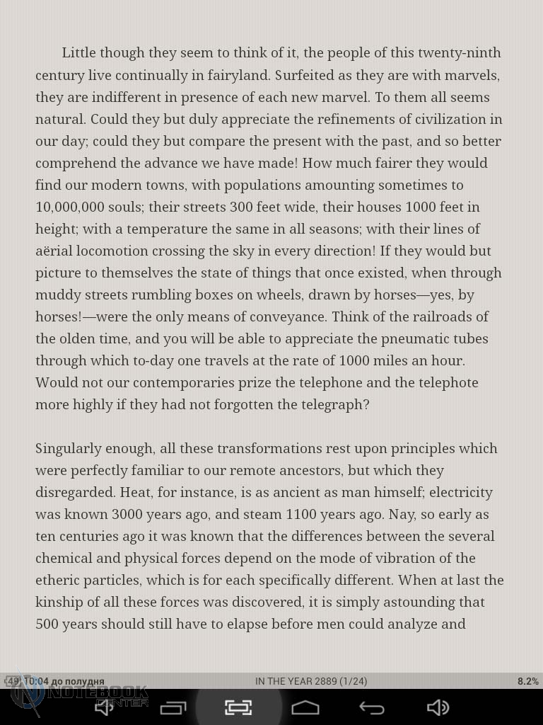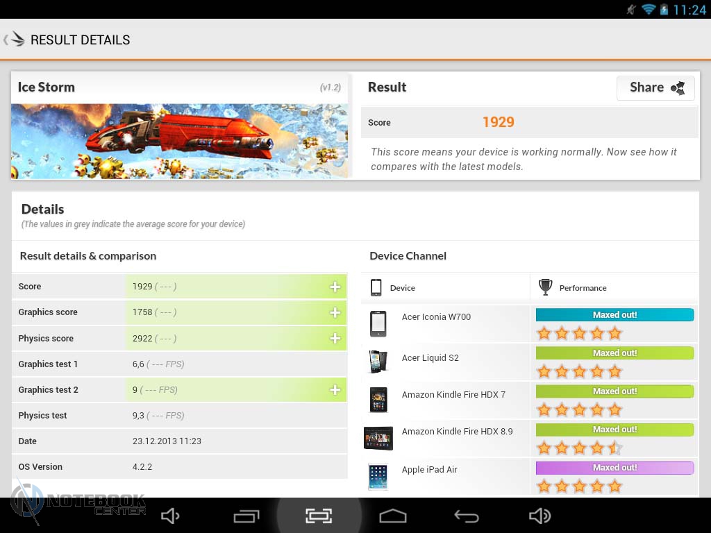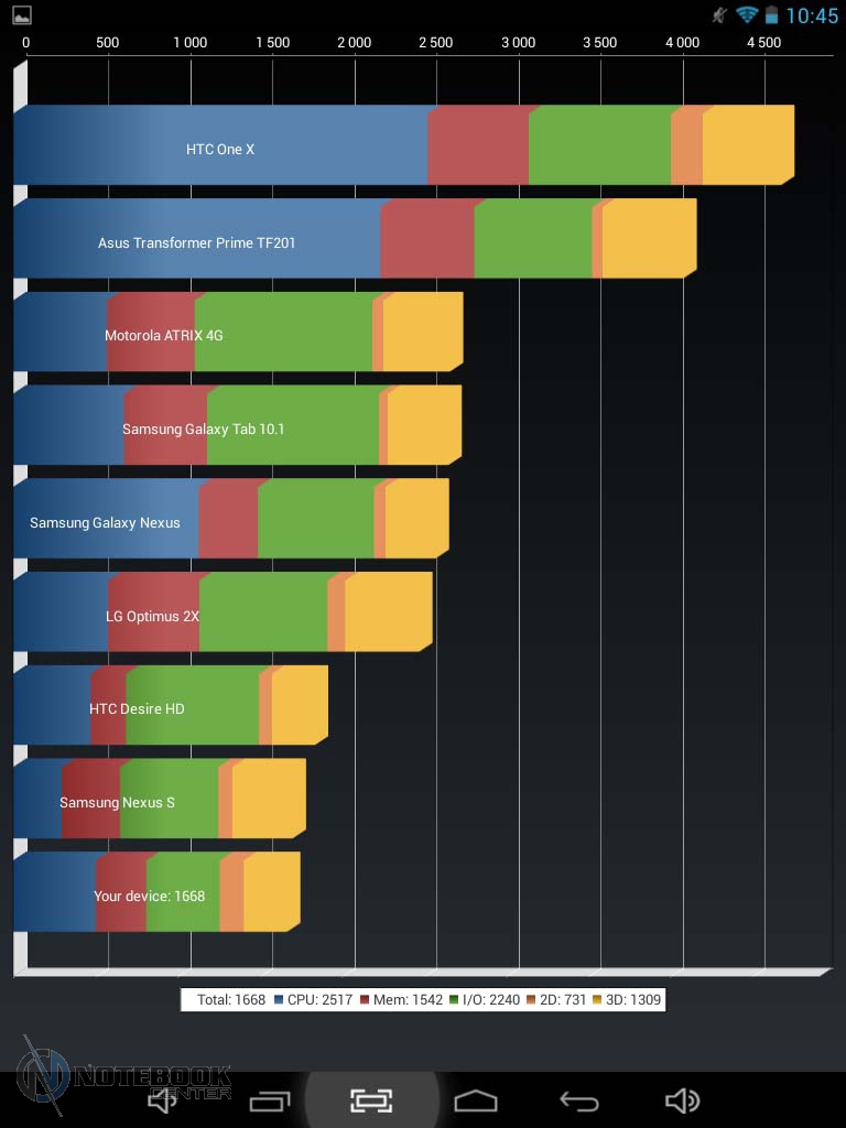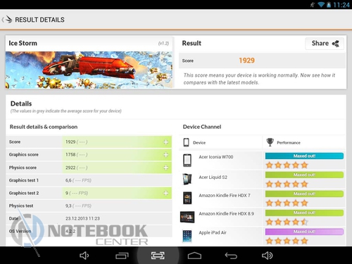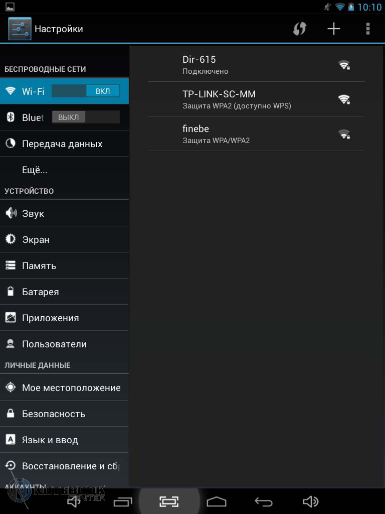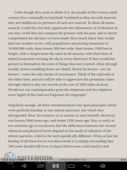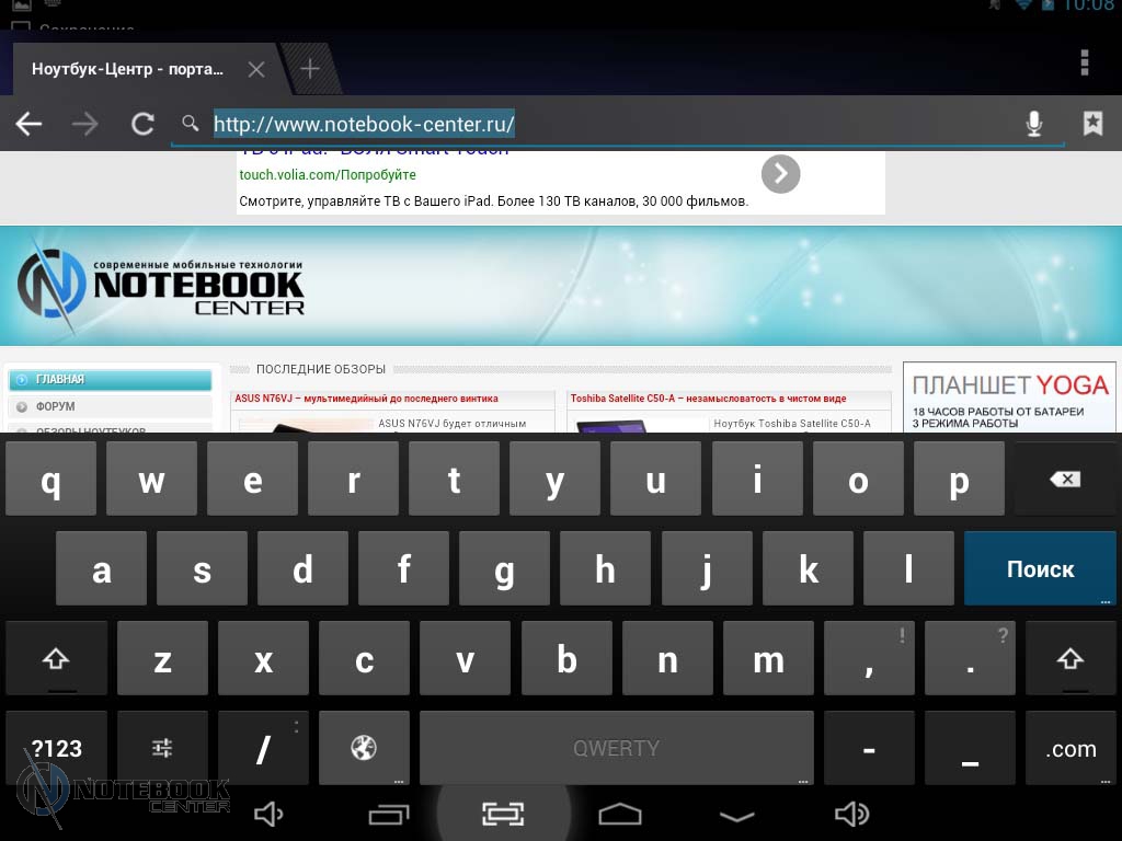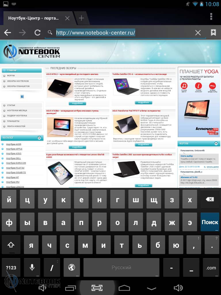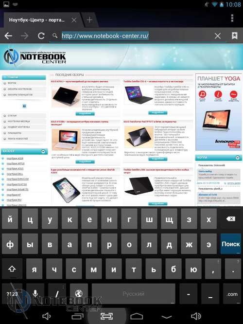 Комплект поставкиВ комплект поставки входит весь необходимый набор периферии – зарядное устройство, два кабеля Micro-USB/USB-OTG и USB/Micro-USB, а также два руководства для пользователя. Сам планшет упакован в одноразовый мягкий чехол и помещен в специальную подставку внутри коробки. ![]() ![]() ДизайнВнешний вид планшета внушает уважение. Имея на вооружении 8-дюймовый дисплей, он имеет форму корпуса, близко приближенную к квадратной, и, как показала практика, это очень удобно. Экран покрыт прочным стеклом, надежно защищающим матрицу от возможных повреждений, и ограничен неширокой рамкой черного цвета. В правом верхнем углу можно обнаружить глазок передней веб-камеры с разрешением 1.3 Мп. ![]() Задняя панель устройства темно-серого цвета, выполнена из алюминия. Она цельная, без каких-либо отсеков или заглушек. Поверхность немного шершавая, однако это не мешает ей быть достаточно скользкой. В верхней части слева расположилась веб-камера, справа решетка динамика, в нижней – краткая информация о девайсе. Так как все разъемы планшета смещены правую грань, их маркировка нанесена на задней крыше возле правой стороны. ![]() Габариты устройства составляют 200х155х10 миллиметров, вес 430 грамм. Но, благодаря своей форме, устройство отлично ложится в руку и весьма удобное в управлении. ![]() Дисплей, звук и веб-камераMODECOM FreeTAB 8001 HD X2 оснащен 8-дюймовым HD-дисплеем с разрешением 1024x768 пикселей и соотношением сторон 4:3. Разрешающая способность экрана весьма посредственная, однако в качестве компенсации можно отметить неплохие углы обзора в рамках возможностей HD-матрицы. При сильных отклонениях дисплея цветопередача изображения немного искажается, но в целом, то, что предлагает нам FreeTAB 8001 HD X2, вполне приемлемо. Также порадовала контрастность – при просмотре видео картинка четкая и насыщенная, именно то, что надо для комфортного восприятия. Единственное, что хотелось бы, так это большей яркости. ![]() Кстати, датчика освещенности здесь нет, поэтому регулировать уровень яркости придется самостоятельно. ![]() Антирефлексное покрытие дисплея позволяет с увеличенным комфортом использовать гаджет вне помещения, так как оно уменьшает отражения. Планшет отзывчив, достаточно быстро реагирует на прикосновение, но бывали моменты в необходимости повторного нажатия. Можно использовать устройство в качестве читалки, с этим экран справляется отлично. ![]() Также как и серфить в интернете. В отдельных случаях придется подстроить размер шрифта или картинок под свои требования, но в целом все отлично. ![]() Управлять таблеткой можно пятью пальцами, что мы определили посредством специальной программой MultiTouch Tester. Это удобно и обеспечивает большую функциональность. ![]() В процессе эксплуатации мы выяснили, что когда активен дисплей сенсорные кнопки скрываются, и на их месте остаются только схематические точки. Поэтому знать порядок расположения клавиш, например, «Назад», «Рабочий стол» и пр. нужно на память, поскольку можно не раз ошибиться, нажав не то, что хотелось бы. Уровнем звучания планшет не впечатлил, громкость невысокая, диапазон частот смещен в сторону высоких. Один динамик не может обеспечить пользователя качественным звуком, и плюс ко всему, он расположен на задней поверхности корпуса. ![]() Планшет FreeTAB 8001 HD X2 располагает двумя веб-камерами – передней и задней. Фронтальная имеет м
