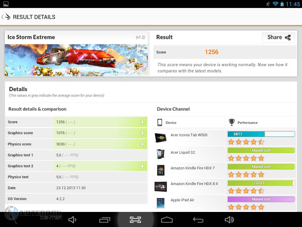 Под нагрузкой температурные показатели немного выросли, однако все осталось в пределах тактильного комфорта. Самым холодным оказался левый нижний угол (31.7 °С), а самым горячим – верхний правый в районе передней веб-камеры (38.8 °С). Вывод – пользоваться планшетом очень комфортно, корпус теплый, особенно с правой стороны, но неудобств это не доставляет.