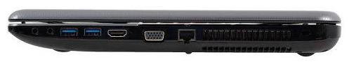 Комплект поставкиНаряду с ноутбуком Toshiba Satellite L70-A предусмотрена аккумуляторная батарея, зарядное устройство, а также необходимая документация. Видно, что есть все самое необходимое. ДизайнСеребристо-серая расцветка корпуса смотрится симпатично и стильно, но оригинальной ее назвать нельзя. Такой цвет можно увидеть во всем корпусе за исключением зоны клавиатуры, являющейся черной. Основная часть поверхностей – это маркий глянец, поэтому вам придется часто пользоваться тряпочкой, чтобы внешний вид ноутбука оставался привлекательным. Что касается днища, то оно сделано из матового пластика. На нижней панели предусмотрен отсек, под которым находятся модули памяти, два ползунка для освобождения аккумуляторной батареи, а также вентиляционные отверстия. ![]() К сожалению, в корпусе не используется металл, производители ограничились лишь пластиком. Качество сборки от этого не пострадало, но вот некоторых моментов избежать не удалось. Например, при надавливании немного прогибается клавиатура и тачпад, кроме этого, скручивается крышка ноутбука. Кстати, на шарнирах дисплей удерживается не туго, а время от времени раскачивается. ![]() Габариты данного ноутбука 413x268x31.3-33.7 мм и вес 2.7 кг нельзя назвать слишком большими, особенно если учесть, что он 17-дюймовый. Так, что если вам предстоит поездка, в которой без Toshiba Satellite L70-A не обойтись, можно смело брать его с собой и он не станет слишком тяжелой ношей. Дисплей, звук, веб-камераНоутбук оснащается глянцевым 17.3-дюймовым дисплеем с разрешением 1600х900 пикселей и соотношением сторон 16:9. Такой экран подойдет для просмотра видео, показа презентаций, а также для других ежедневных задач. Уровень яркости данного дисплея довольно высокий, поэтому при использовании ноутбука на улице или в помещении проблем быть не должно. Контрастности также достаточно, а вот цветопередача могла быть и лучше, это особенно заметно, когда преобладают холодные тона. ![]() Что касается обзорности дисплея, то ее можно считать неплохой. TN-матрица, конечно, несравнима с IPS, тем не менее, работать одному человеку, сидящему перед дисплеем, будет удобно. Акустика данного ноутбука представлена двумя стереодинамиками и поддержкой технологии DTS Sound. Звучание четкое, громкое, но низких частот вы практически не услышите. В сравнении со многими другими ноутбуками, аудиосистему в Toshiba Satellite L70 можно считать приличной, но с подключенными наушниками звук будет все равно лучше. ![]() На рамке дисплея предусмотрена веб-камера. Она имеет низкое разрешение 1 Мп. Фотографировать такой камерой не стоит, лучше ее использовать для видеозвонков в Skype. ![]() Клавиатура и тачпадКлавиатура ноутбука Toshiba Satellite L70-A углублена в рабочую площадку. Она островная, дополняется отдельным цифровым блоком. Все клавиши имеют шероховатую плоскую поверхность, на которой нанесены четко маркированные символы. Сами кнопки достаточно крупные, имеют средний ход и при нажатии работают с хорошей отдачей. Дополнительное удобство в работе обеспечивает двухрядный [Enter]. Подсветки клавиш нет, но даже без этого работать будет комфортно. ![]() Над клавиатурой имеется лишь одна кнопка, включающая ноутбук. Вся остальная зона занята длинной перфорированной решеткой, под которой спрятаны динамики. ![]() Что касается тачпада, то он имеет гладкую поверхность и немного скруглен сверху, что, впро